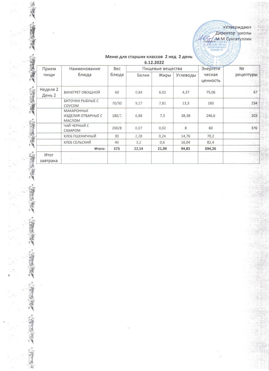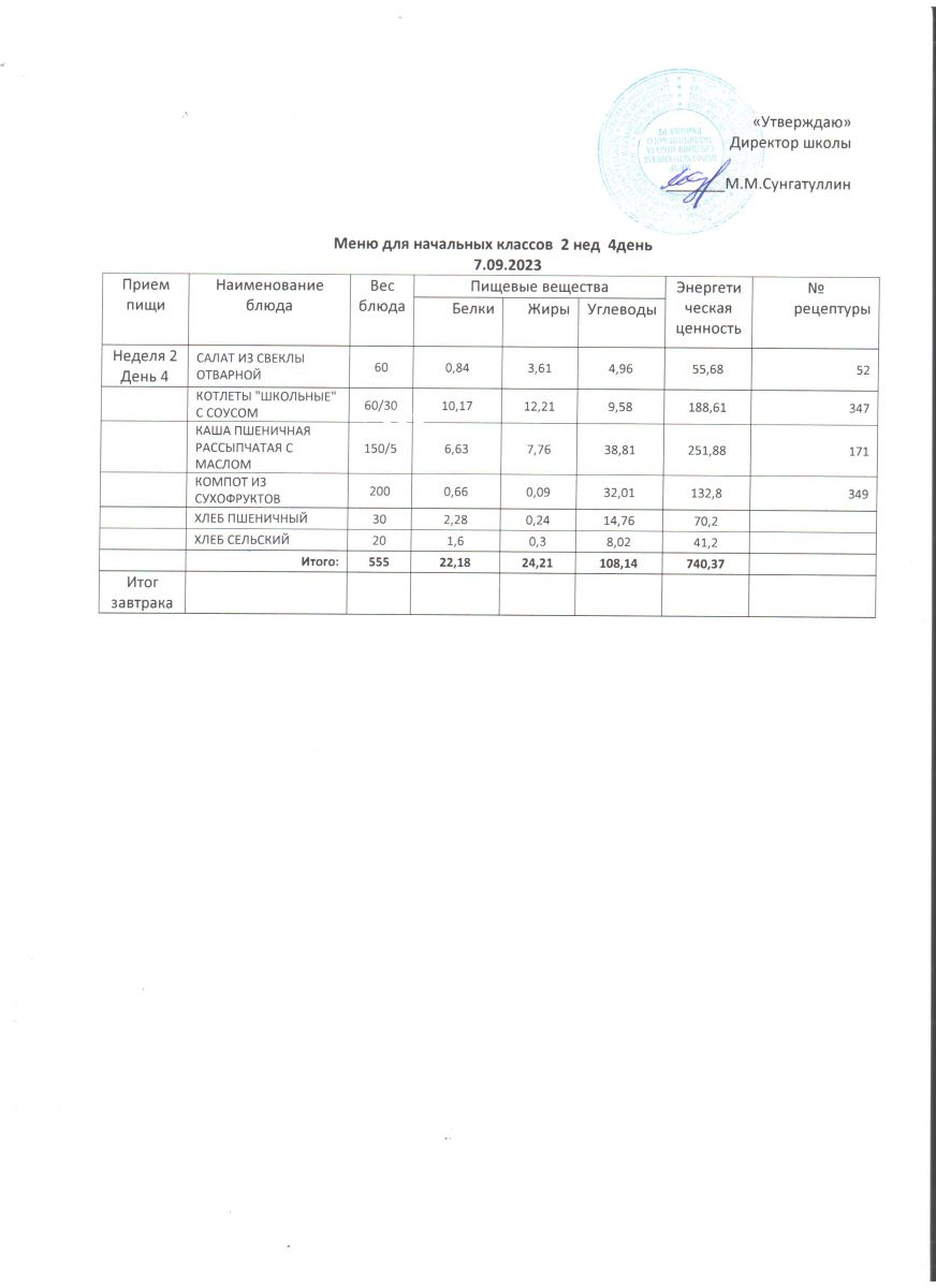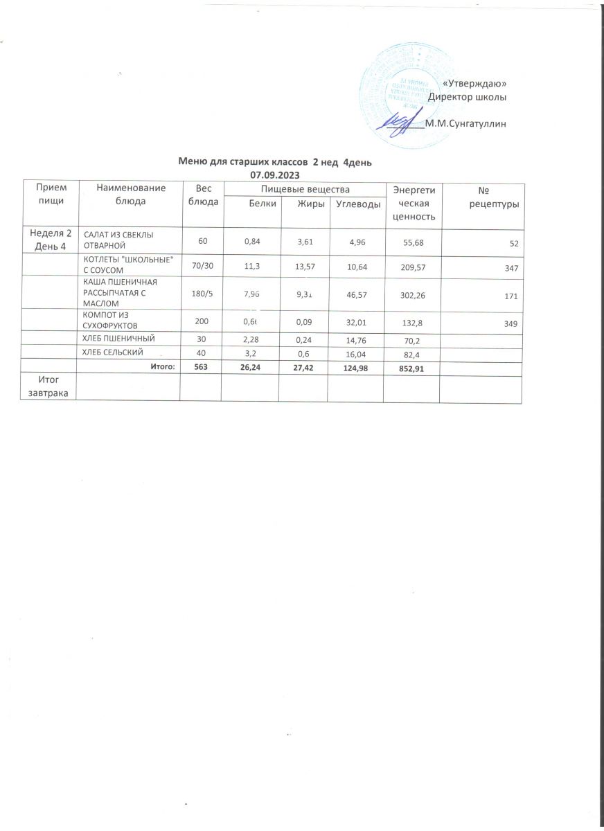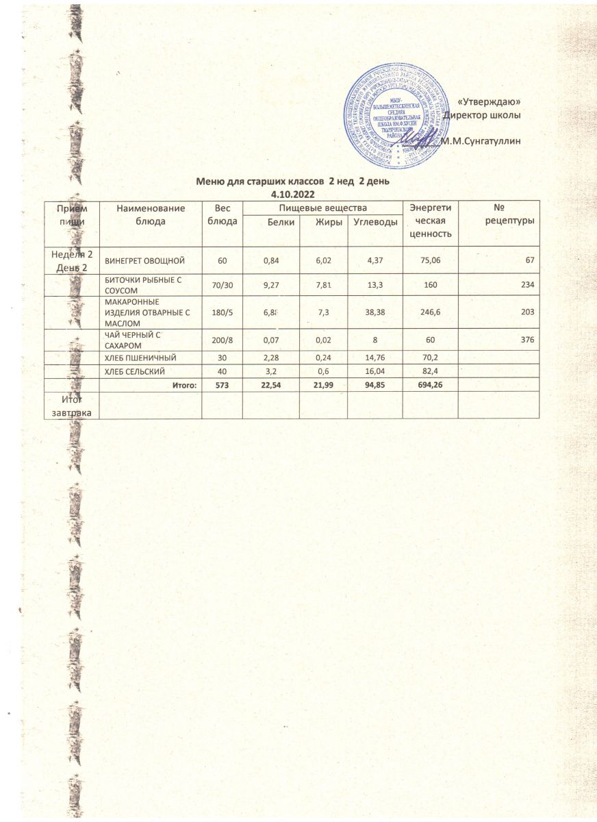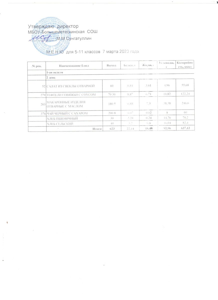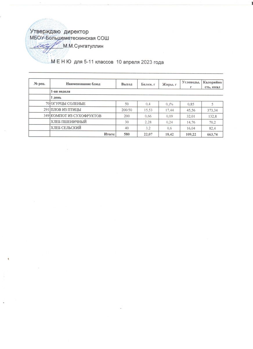 Меню для 5 - 11 классов на 07.04.2022 г.