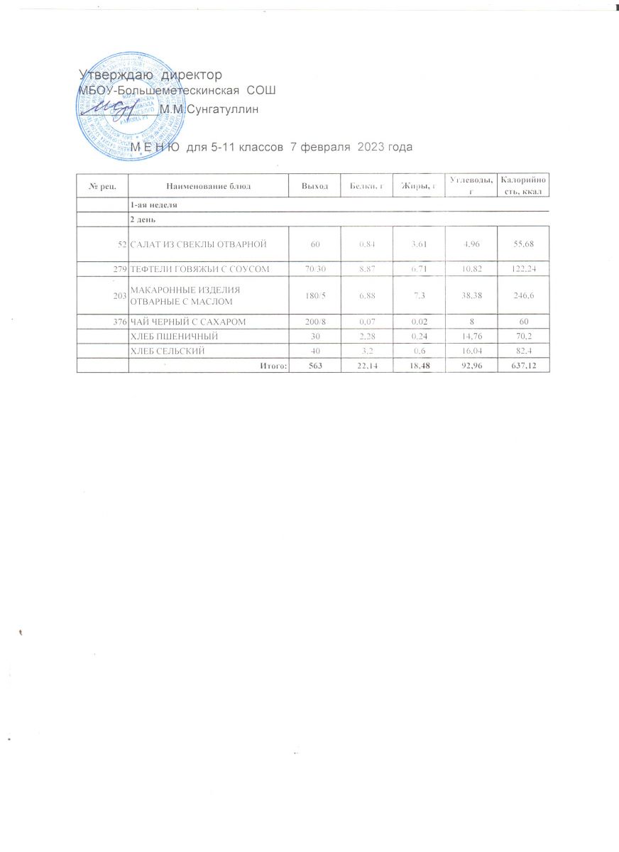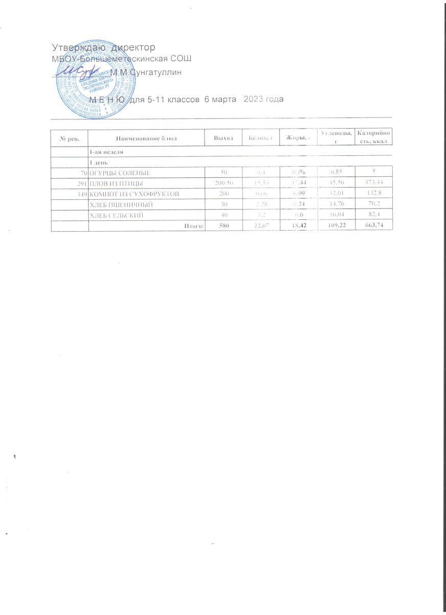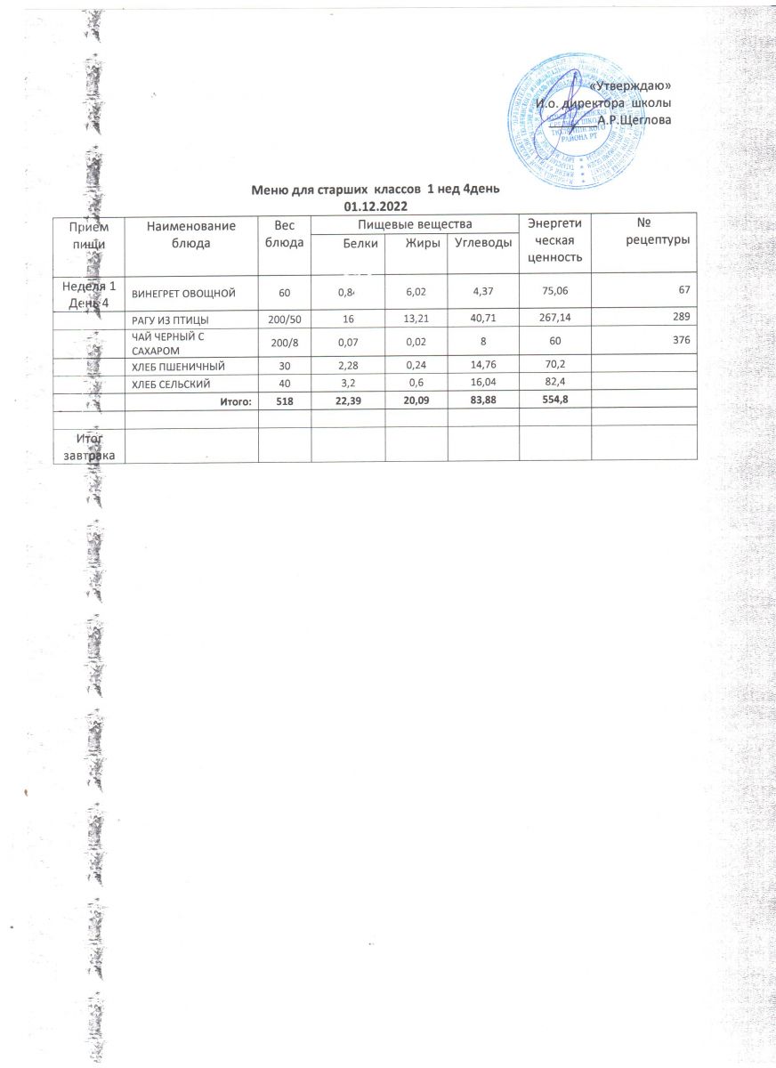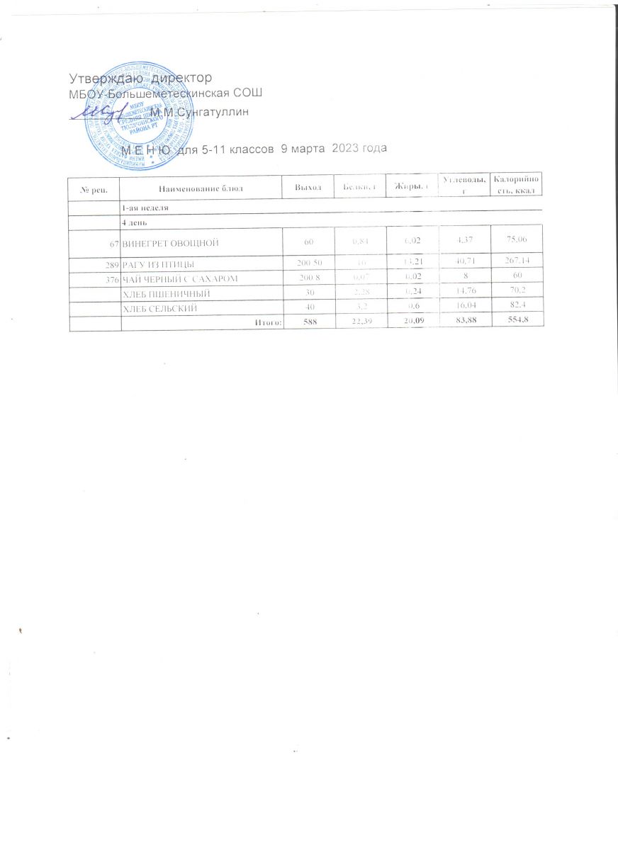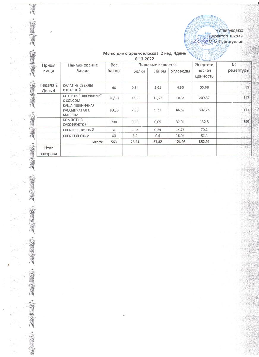 Меню для 5 - 11 классов на 07.04.2022 г.