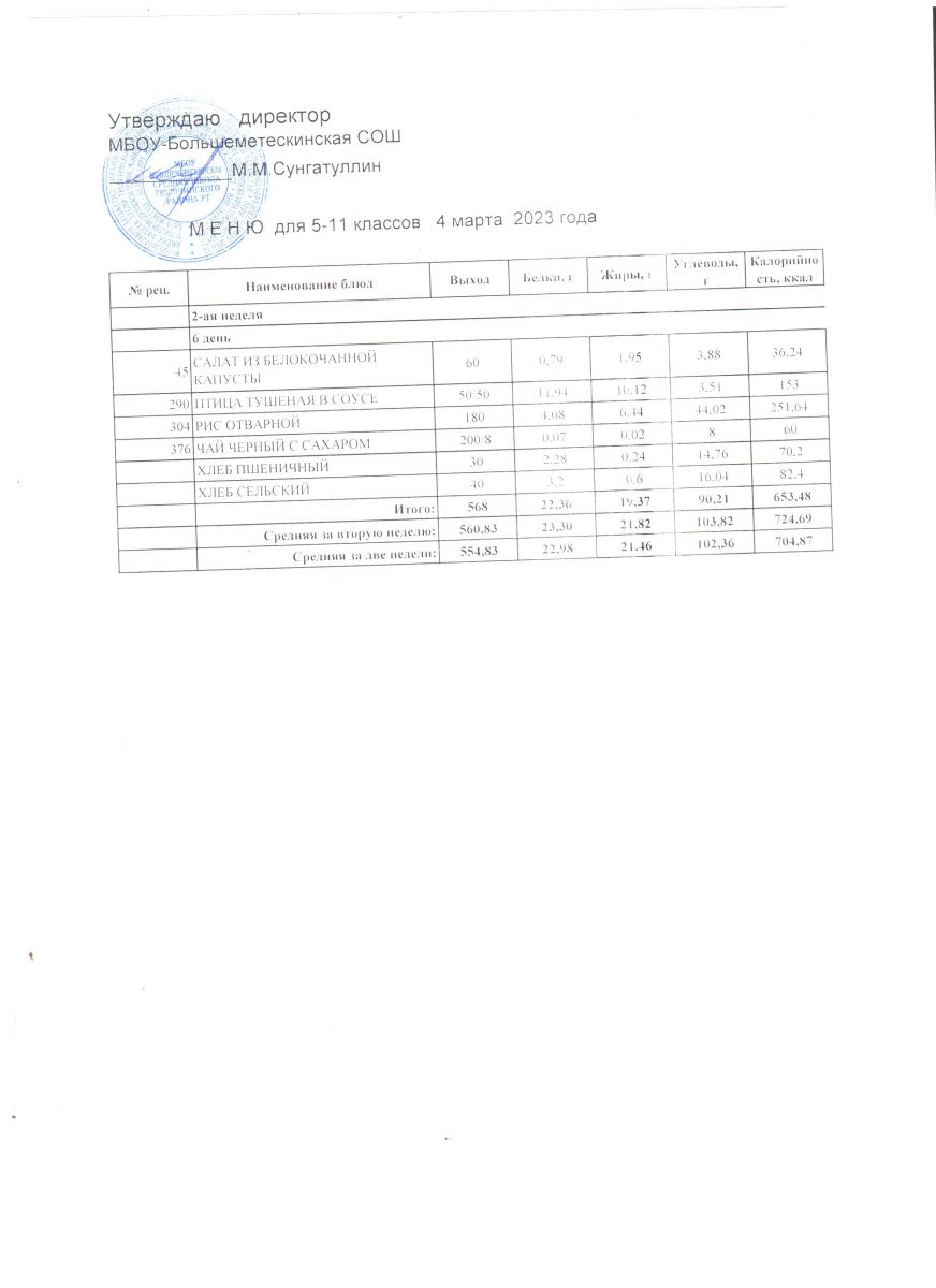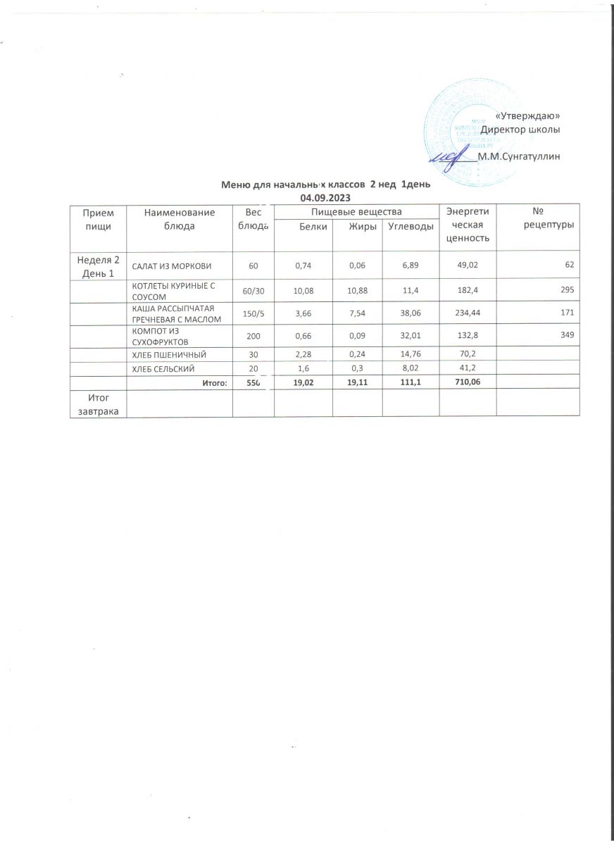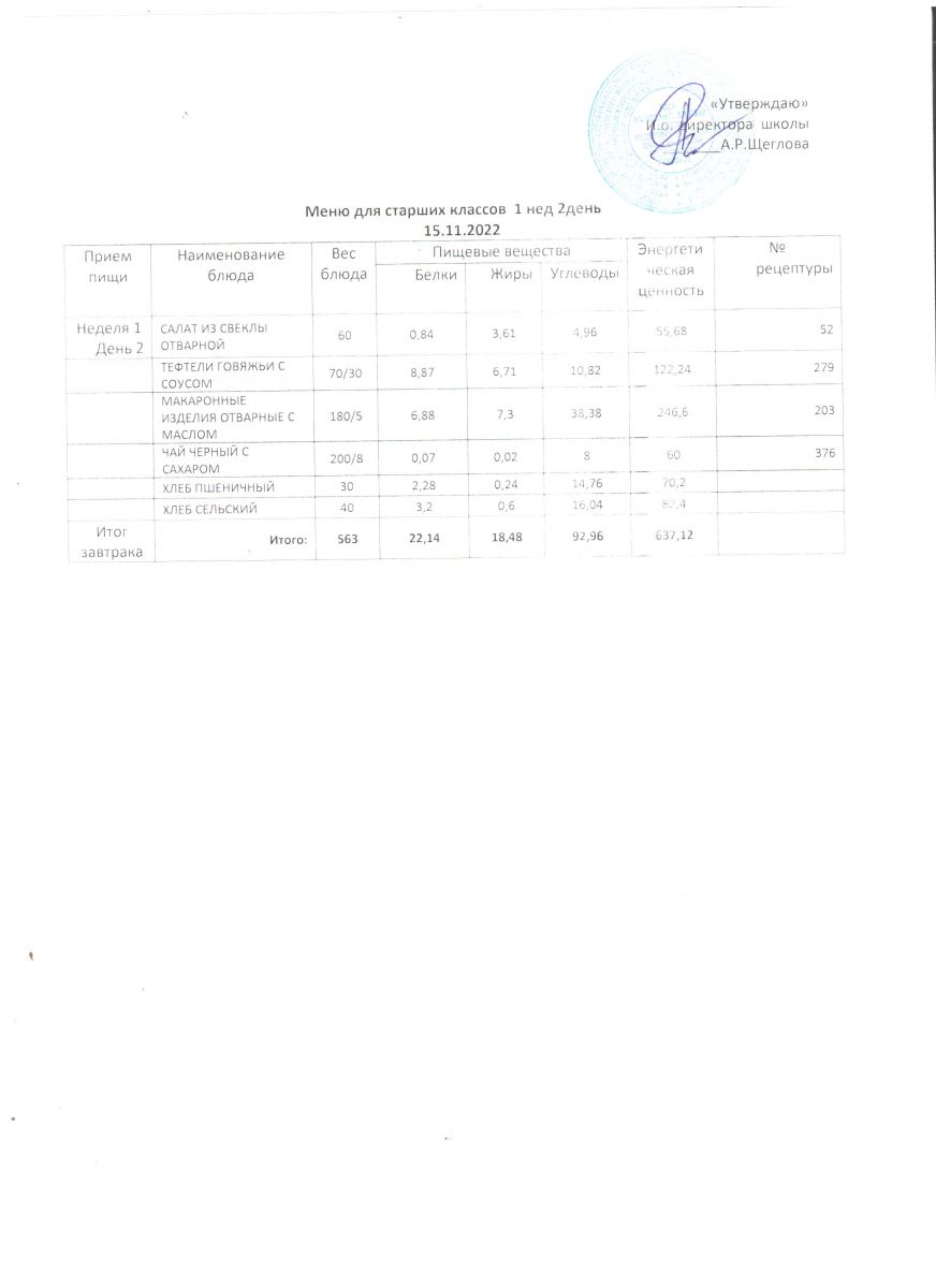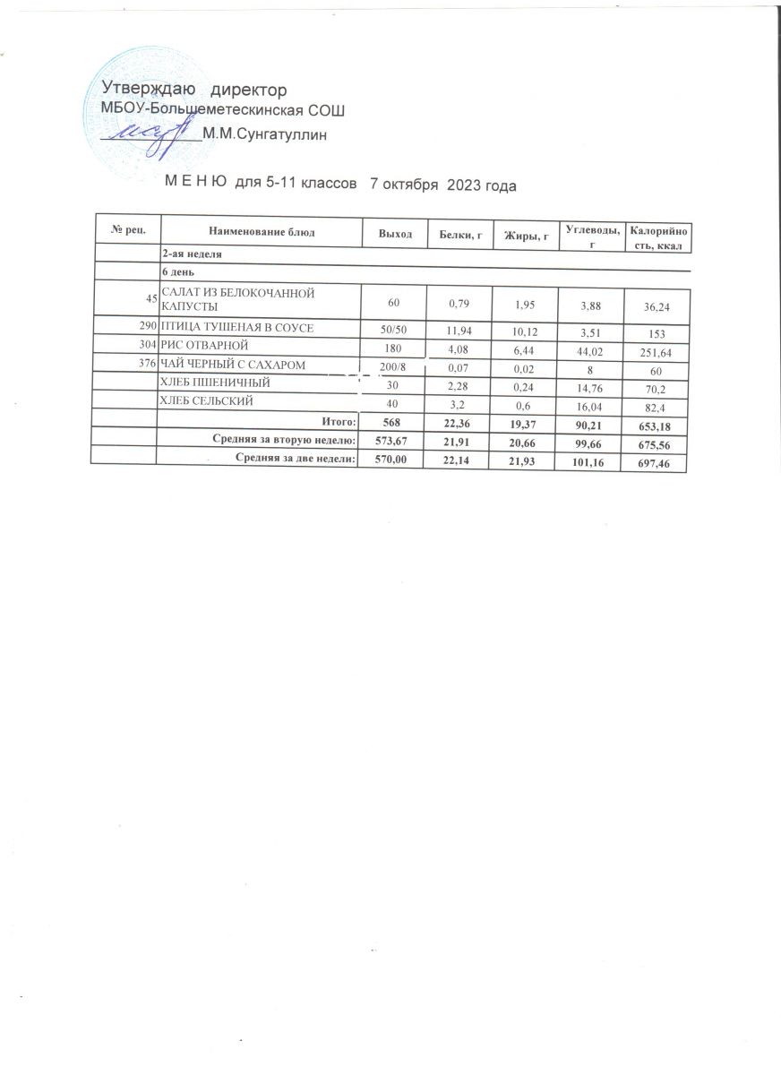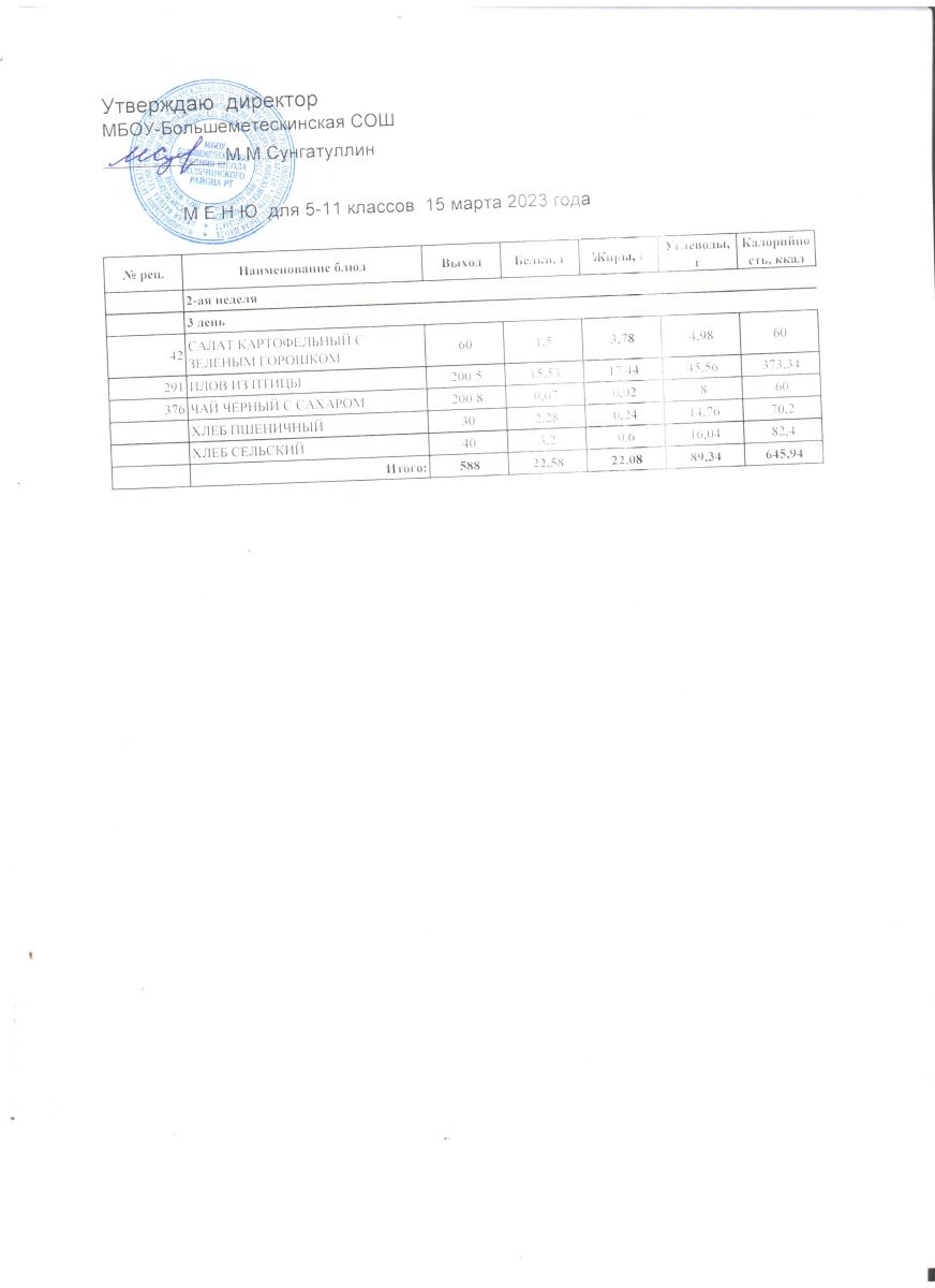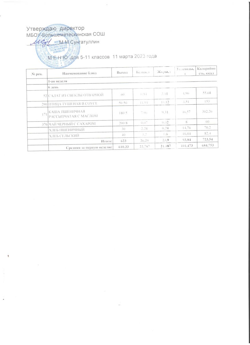 Меню для 5 - 11 классов на 07.04.2022 г.