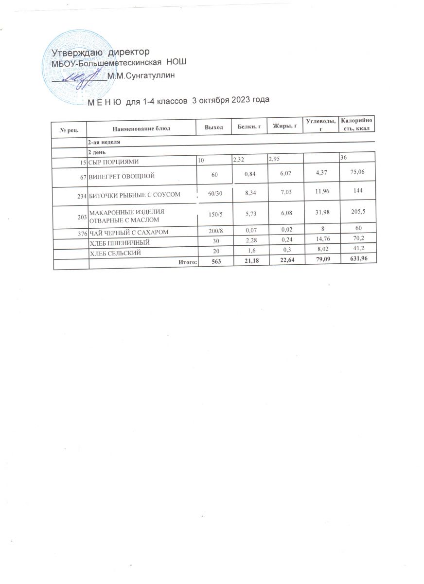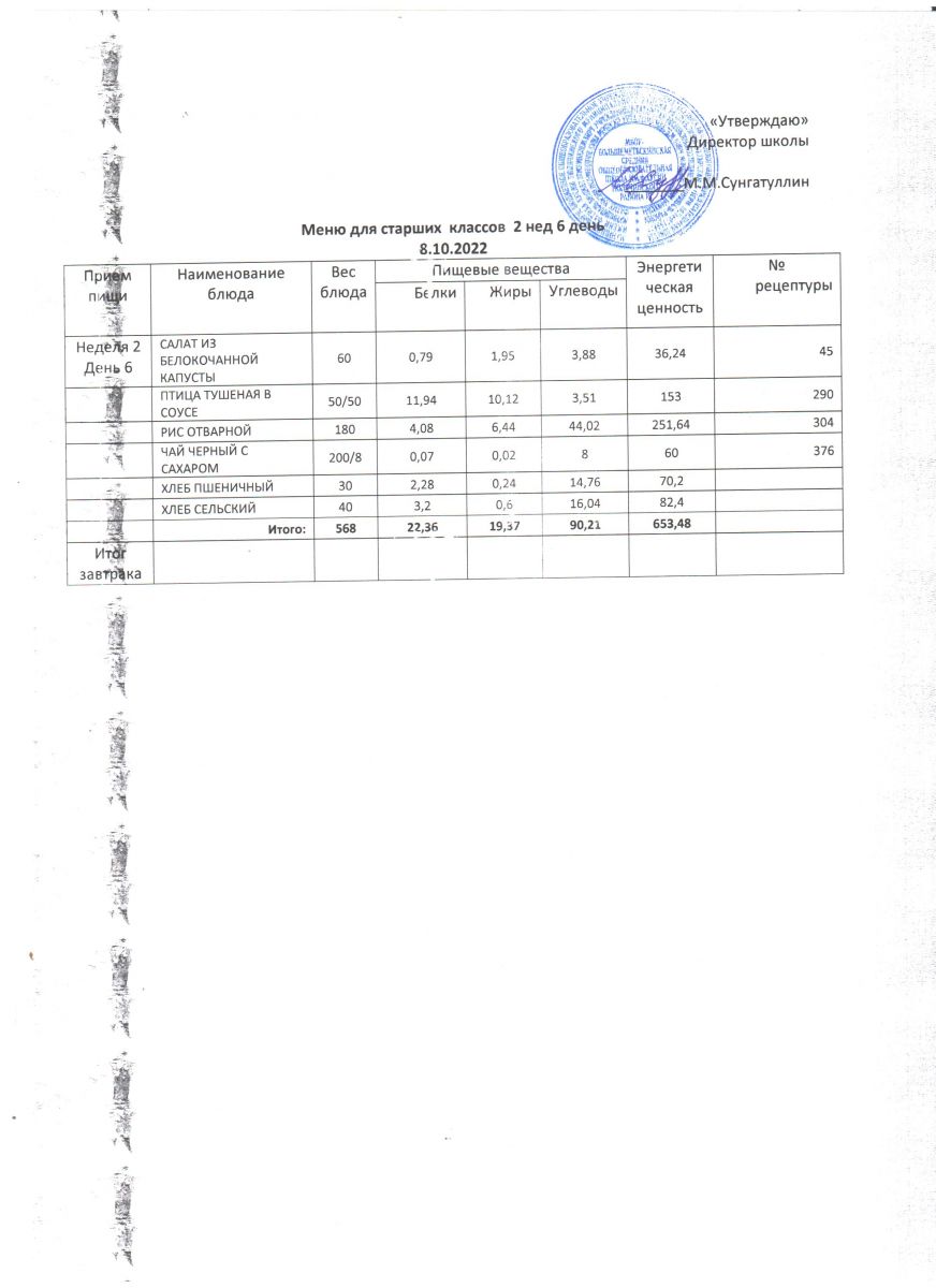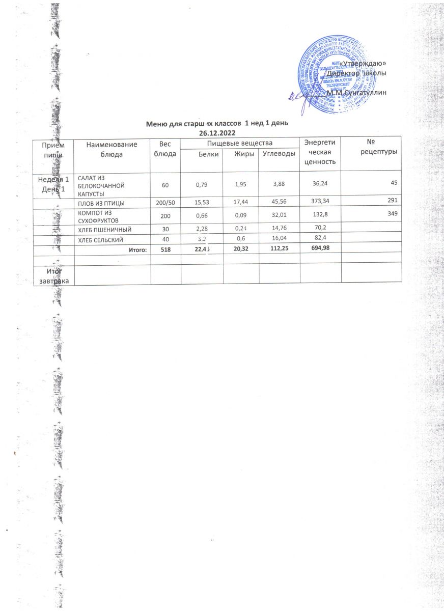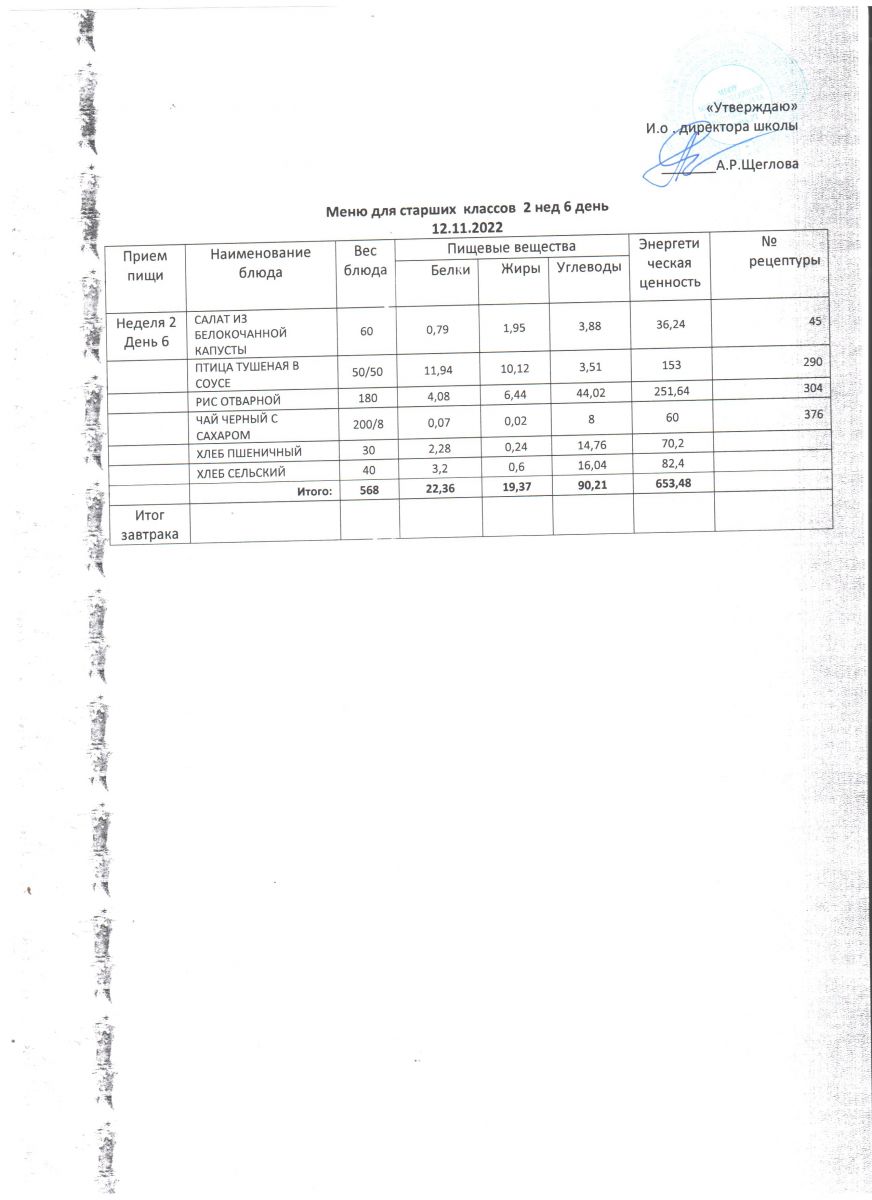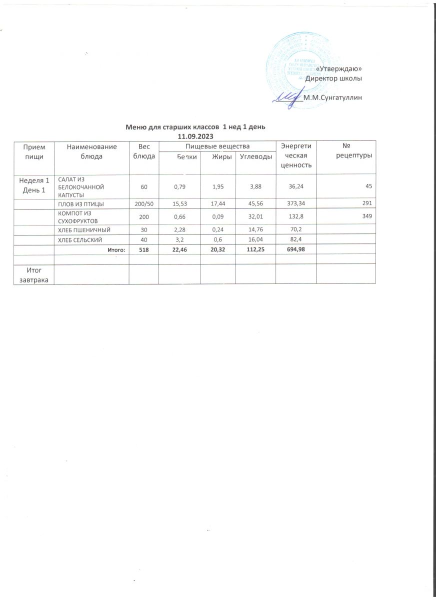 Меню для 5 - 11 классов на 07.04.2022 г.