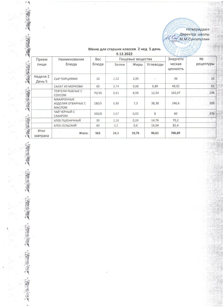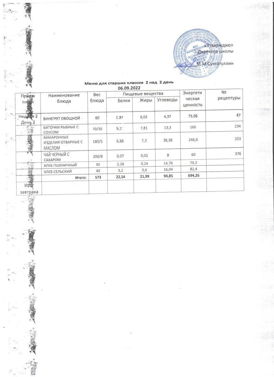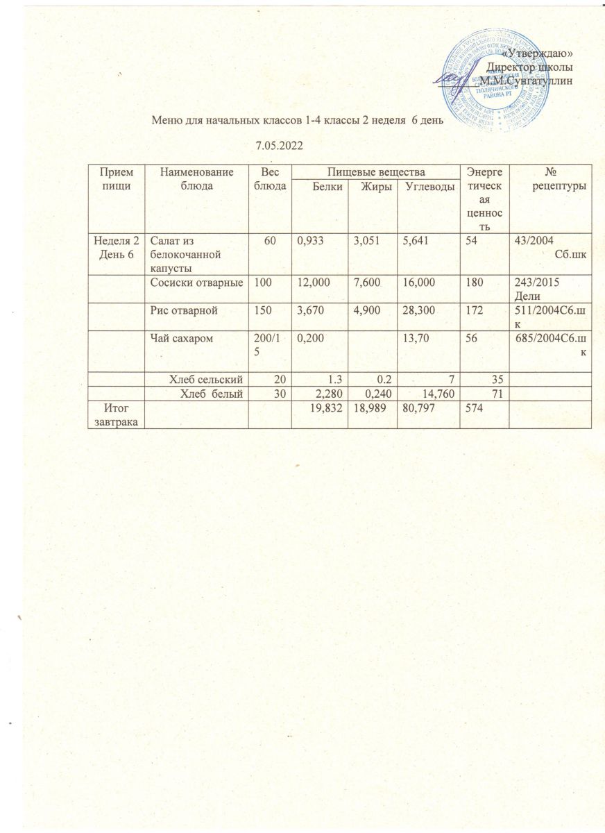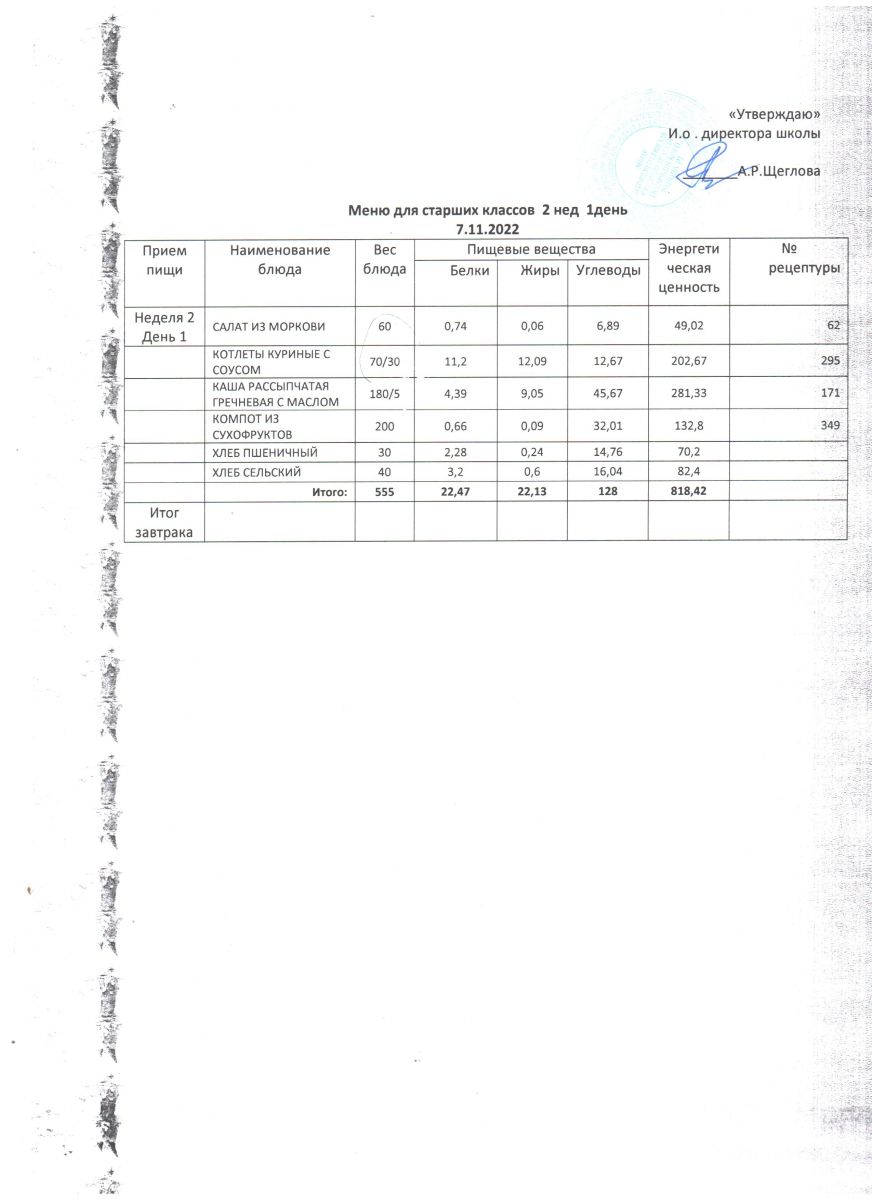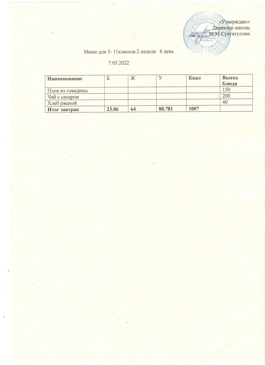 Меню для 5 - 11 классов на 07.05.2022 г.
