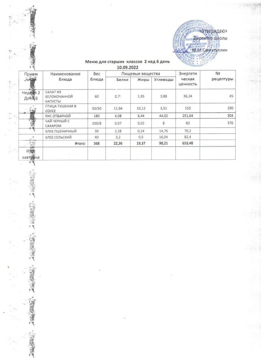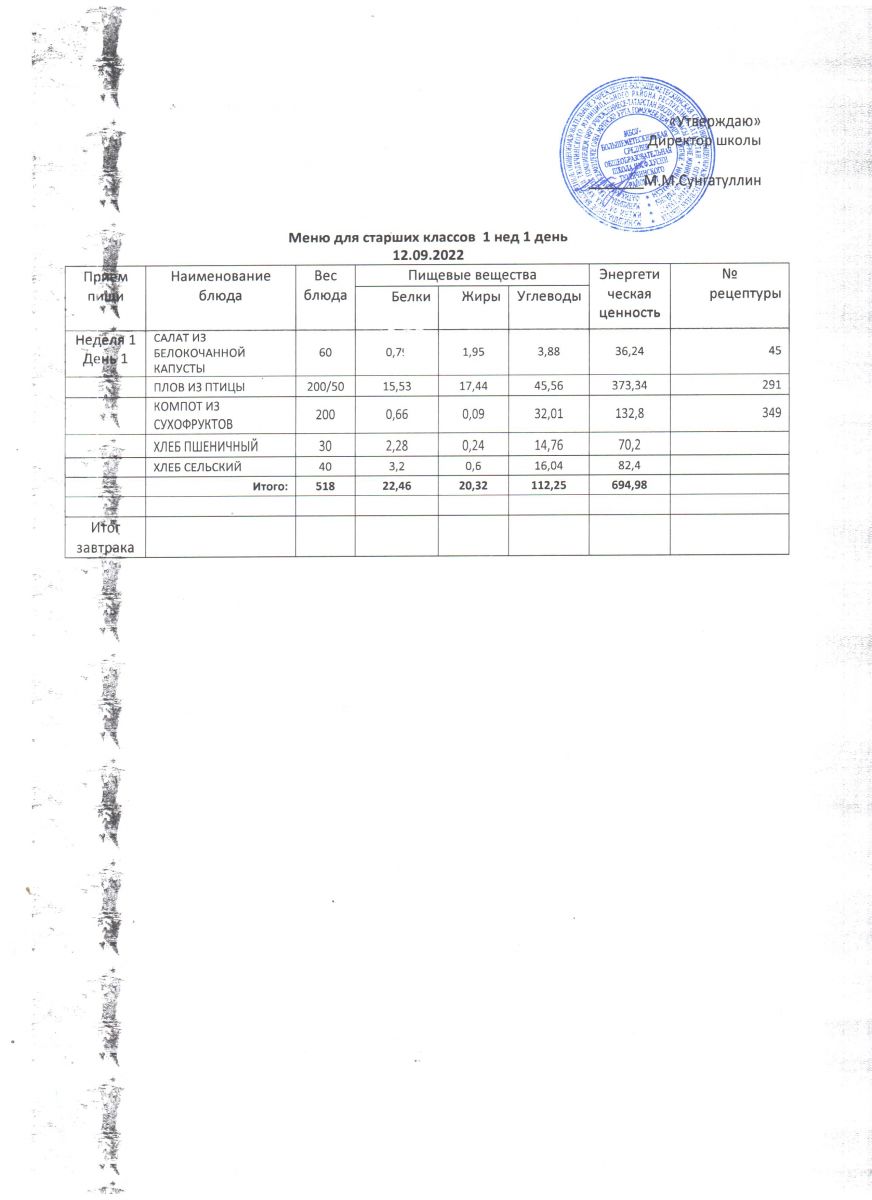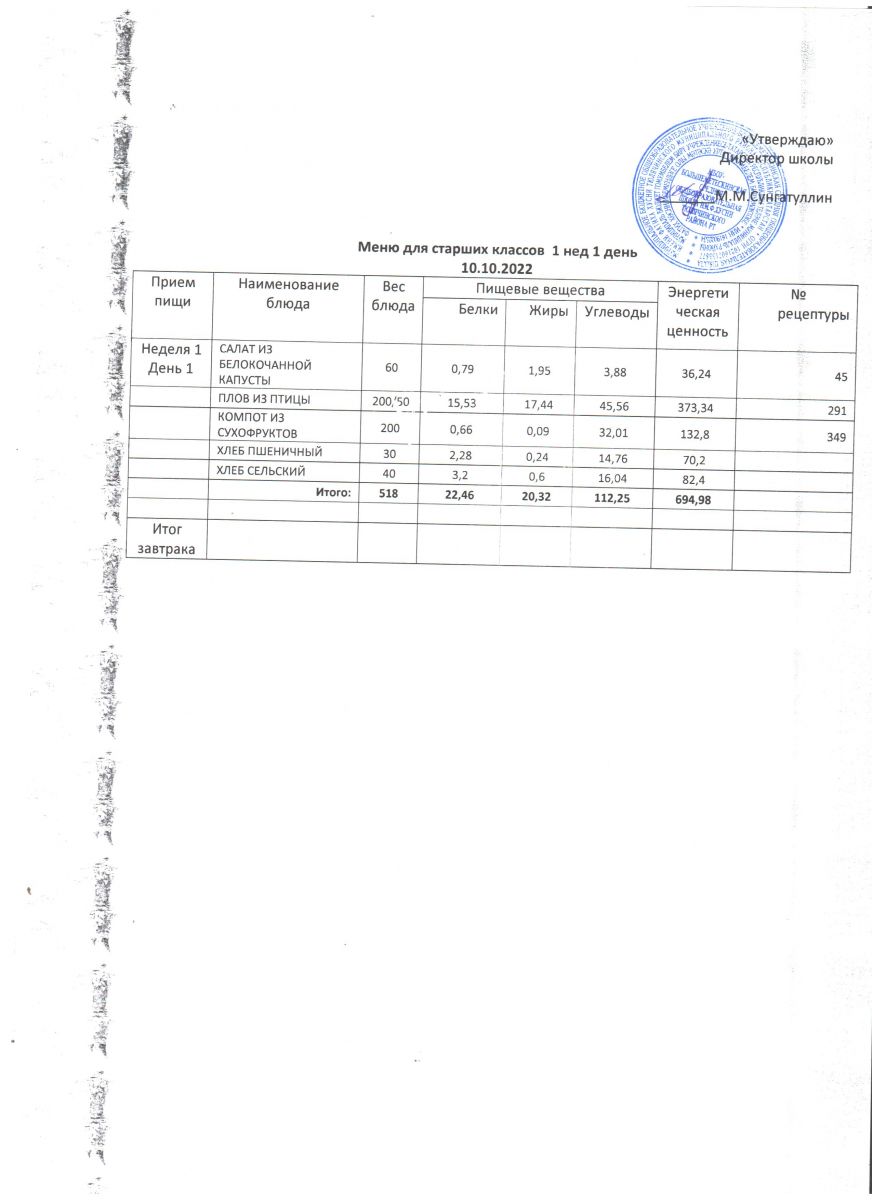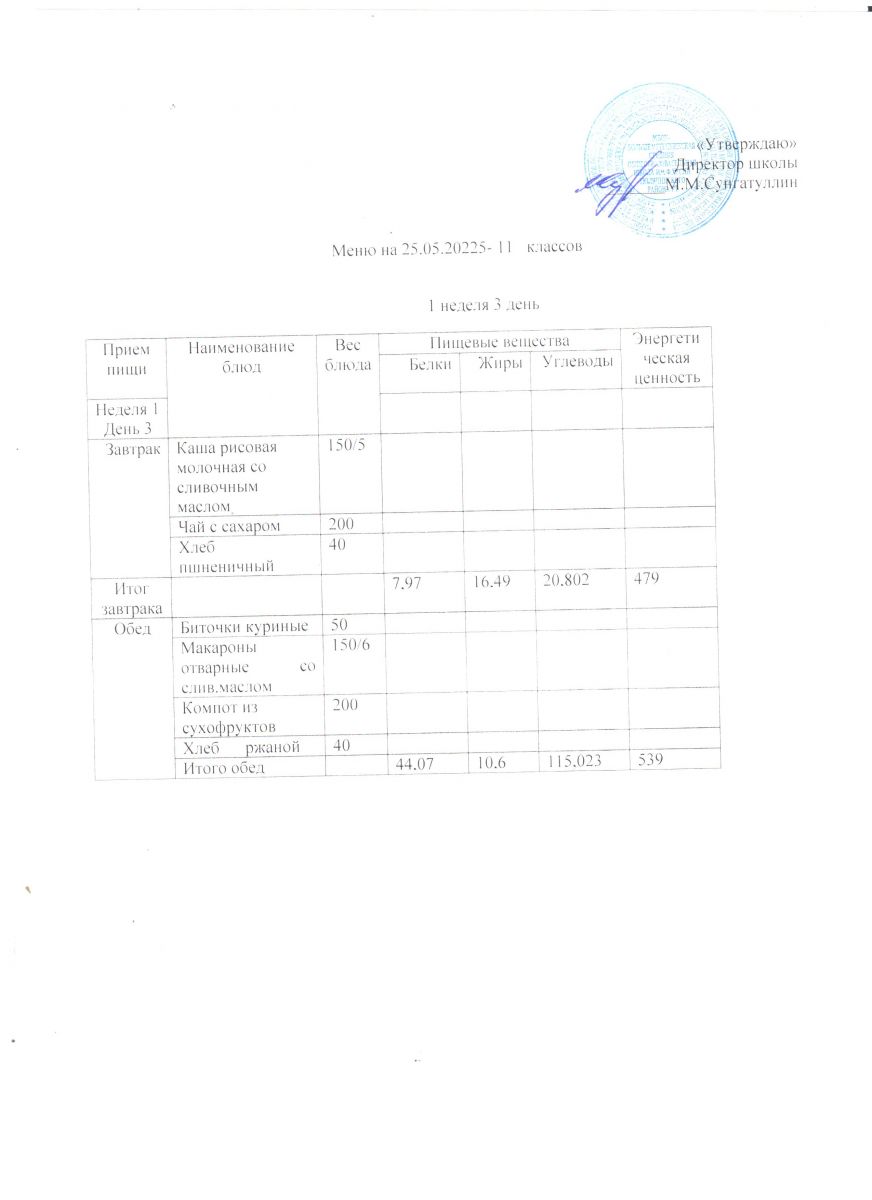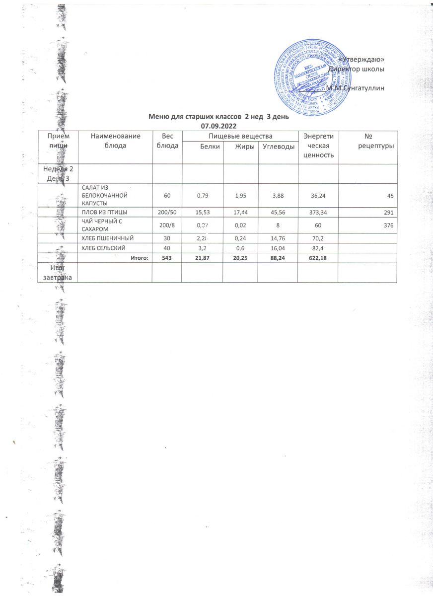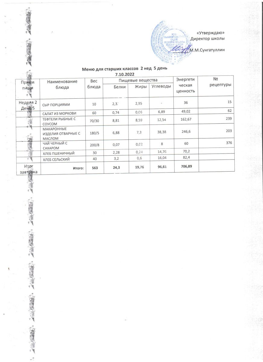 Меню для 5 - 11 классов на 07.05.2022 г.