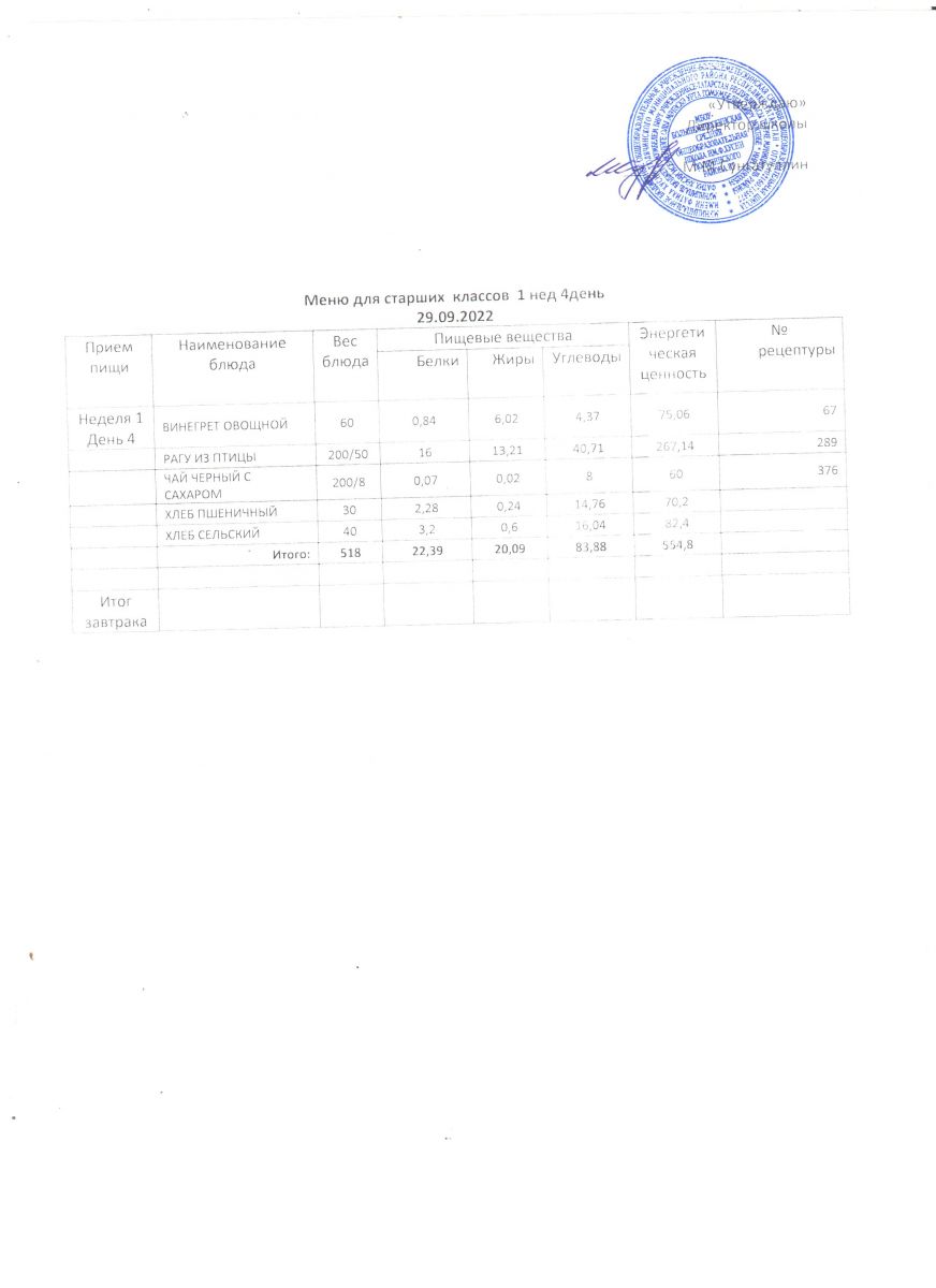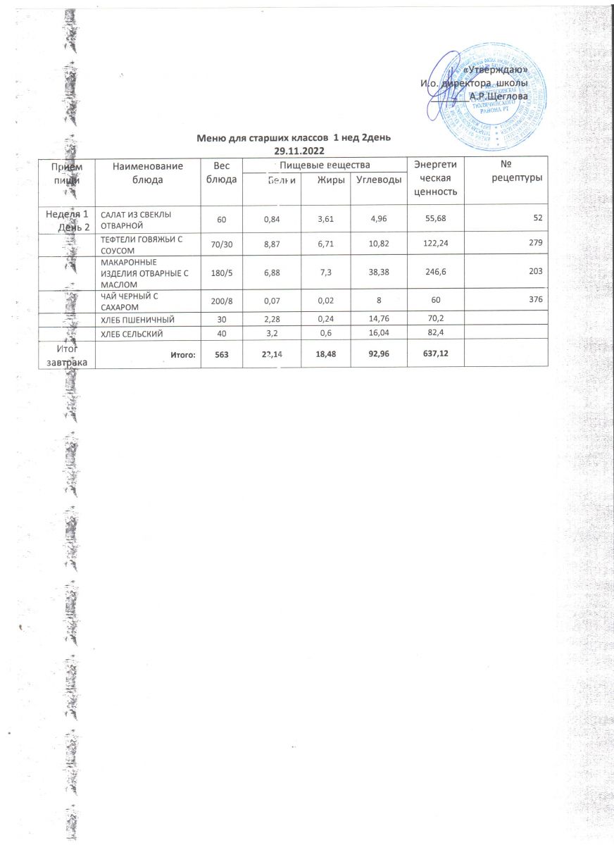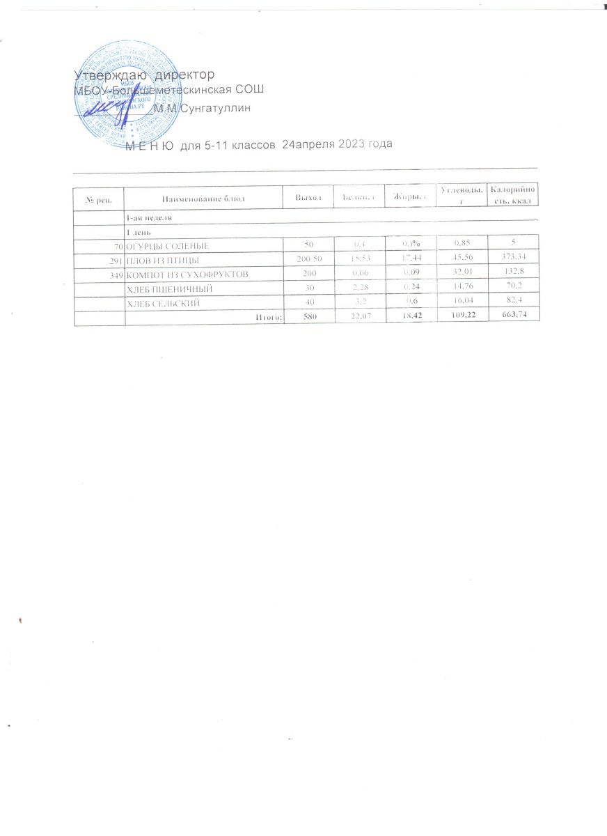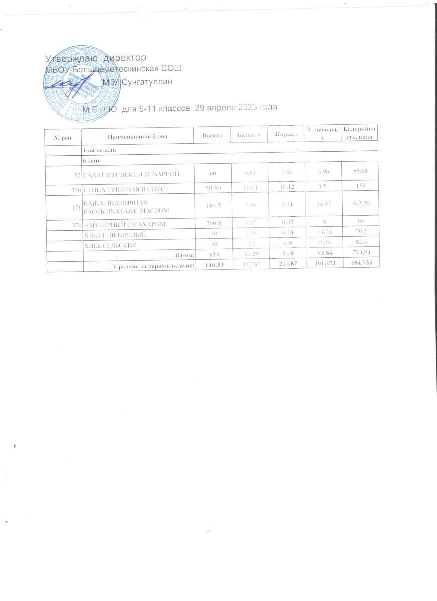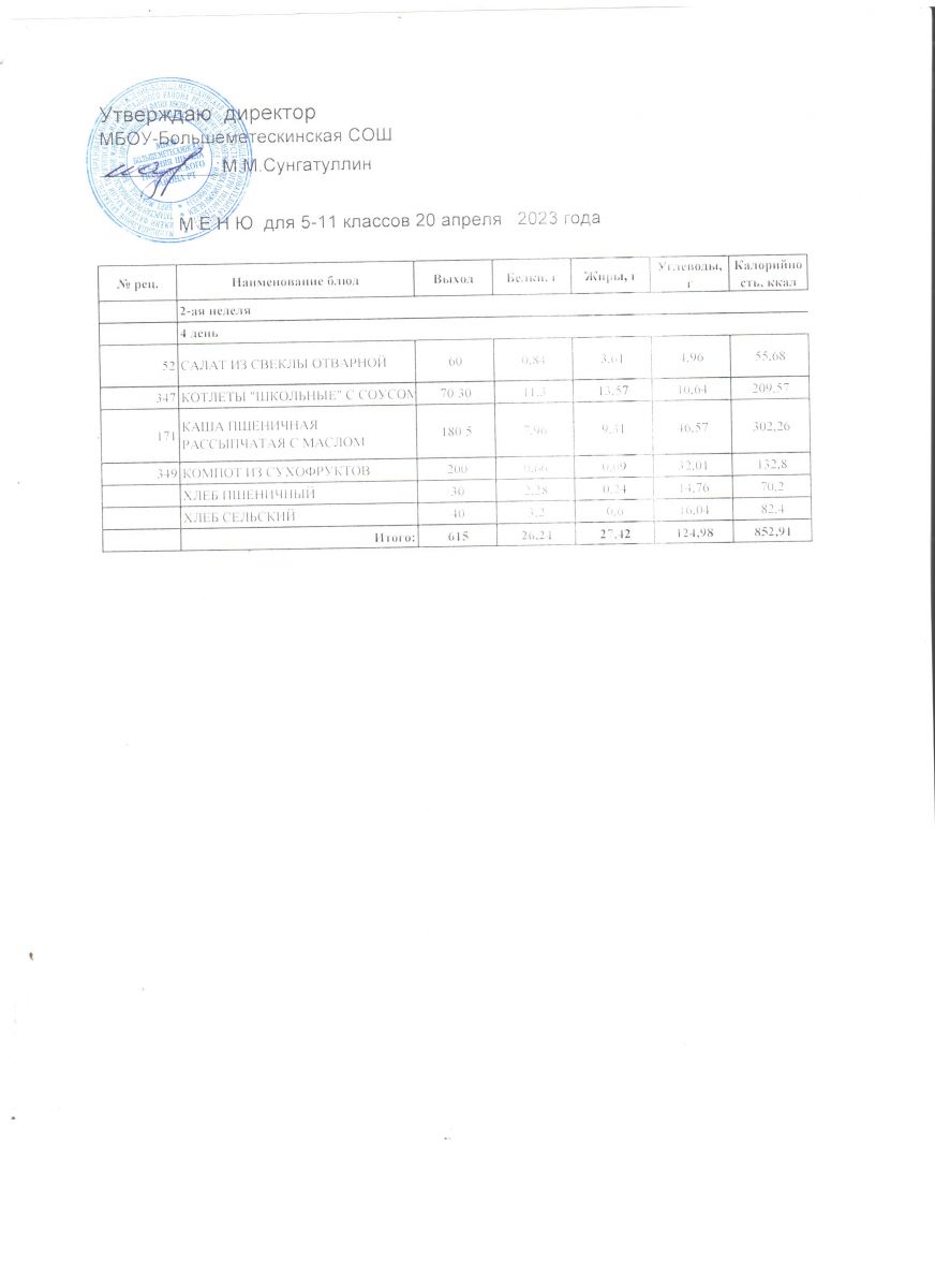 Меню для 5 - 11 классов на 29.04.2022 г.