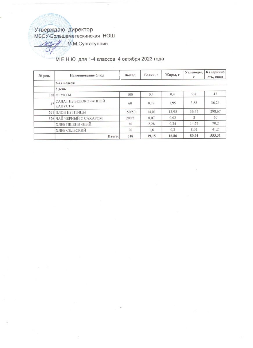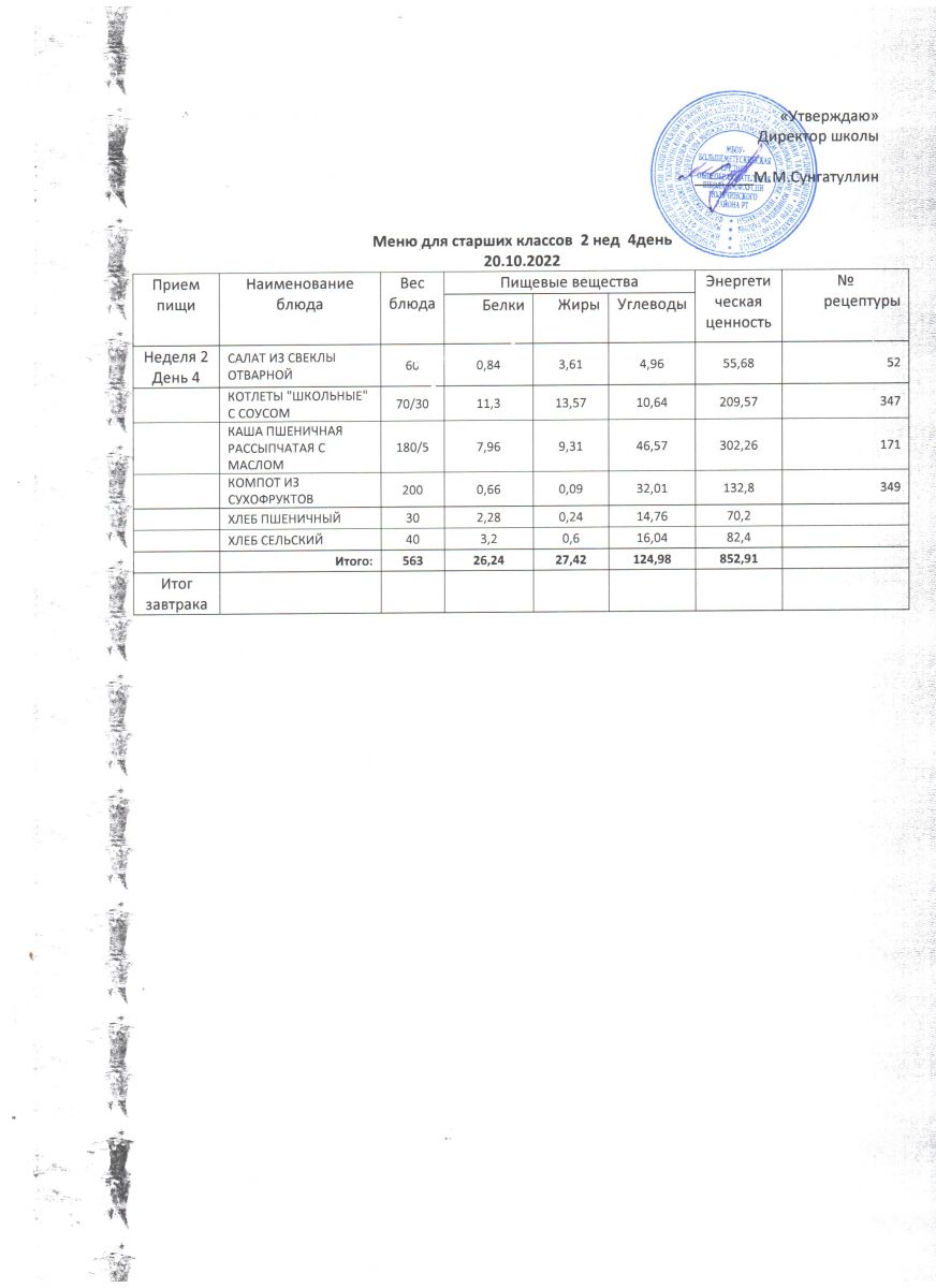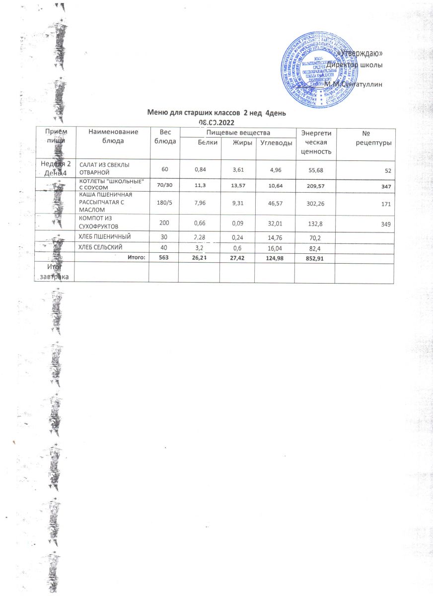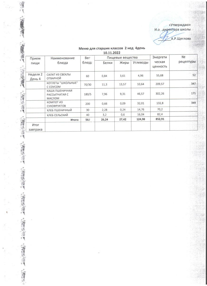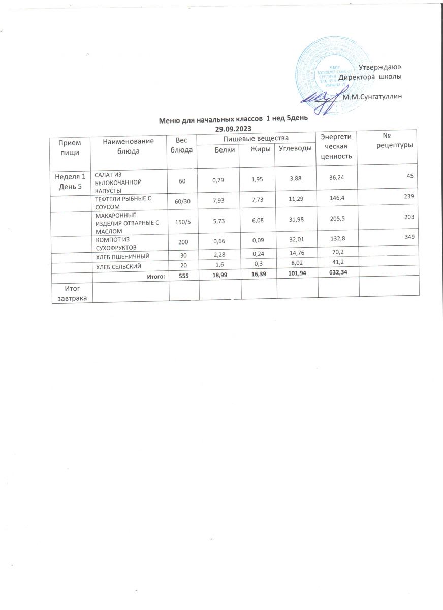 Меню для 5 - 11 классов на 29.04.2022 г.