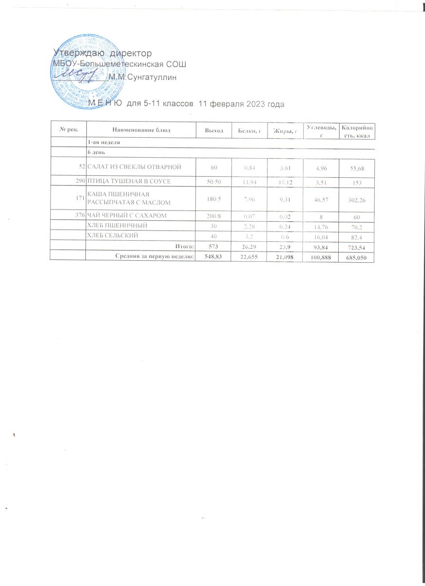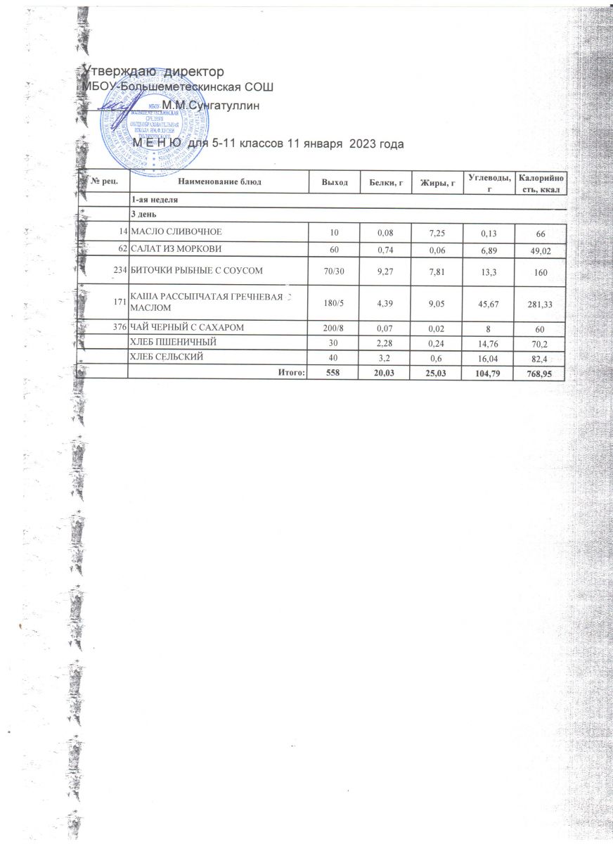 Меню для 5 - 11 классов на 11.04.2022 г.