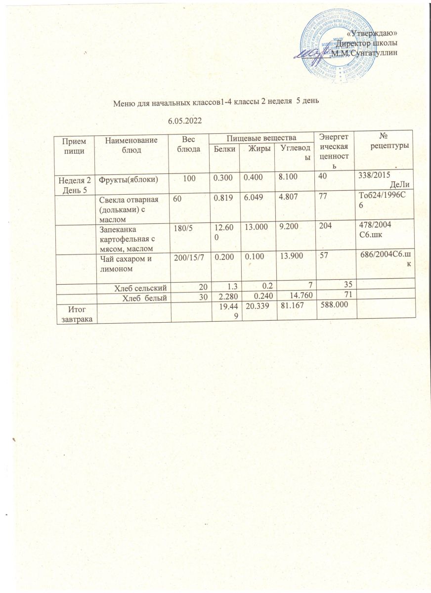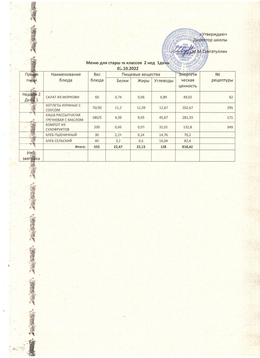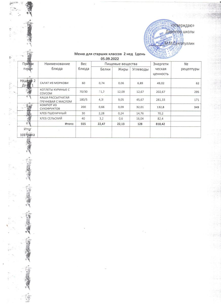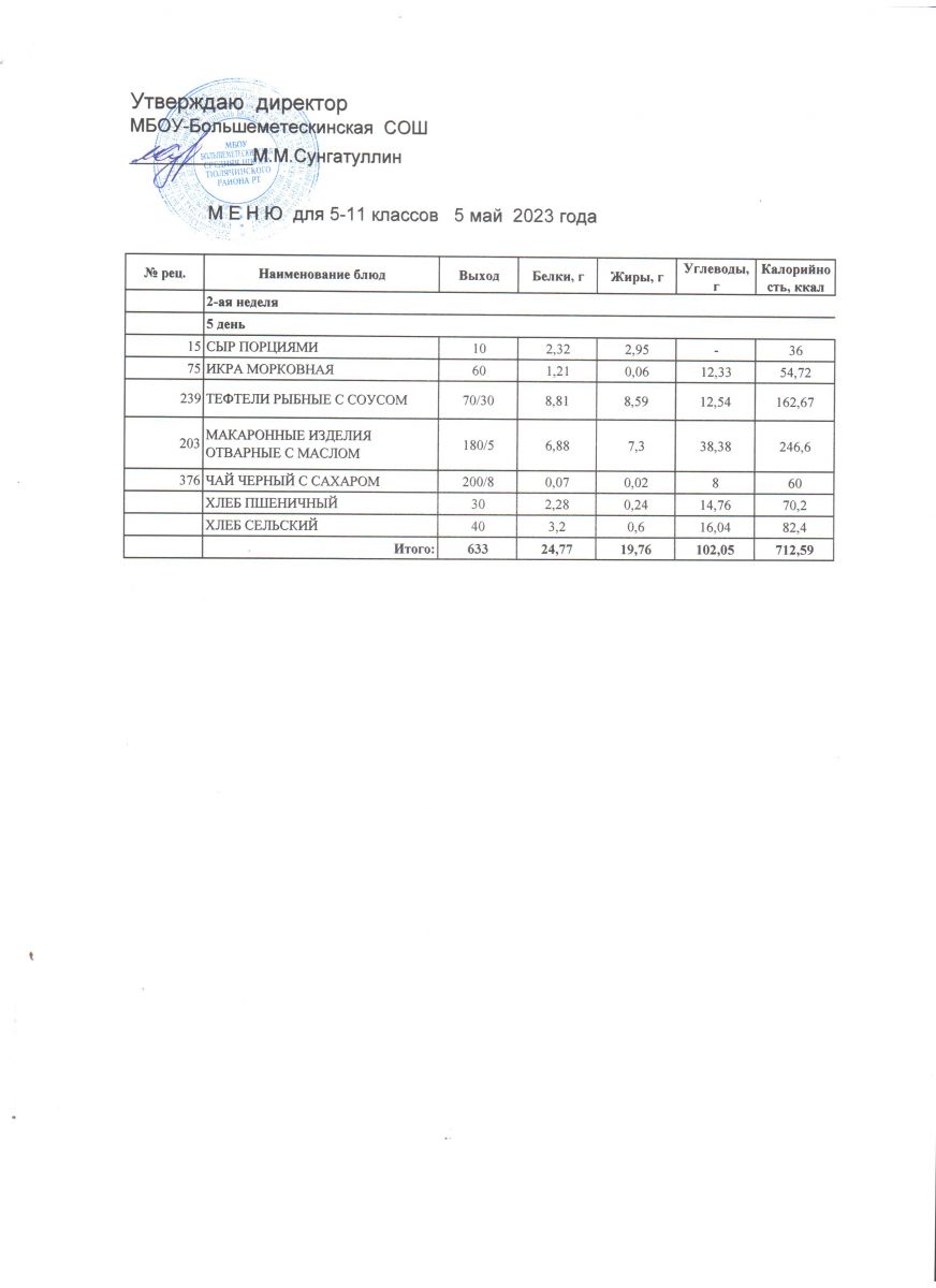 Меню для 5 - 11 классов на 05.05.2022 г.