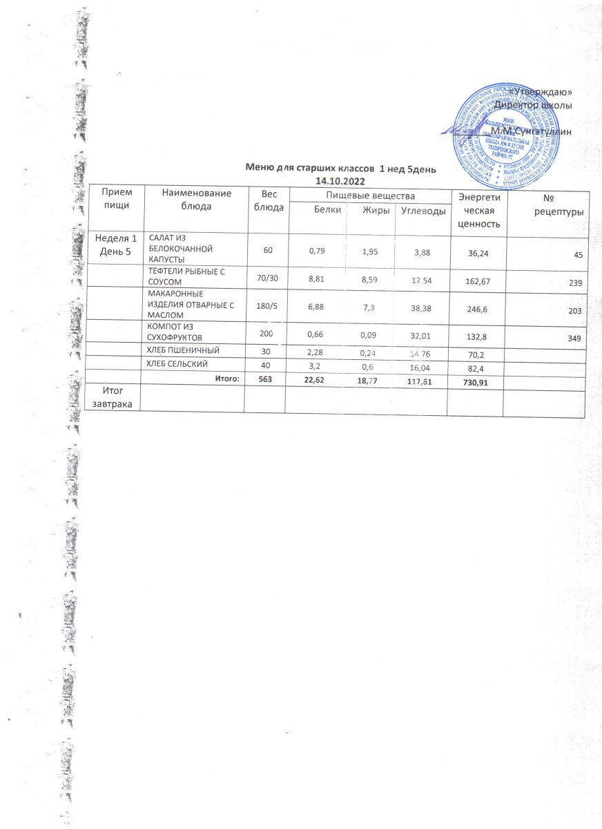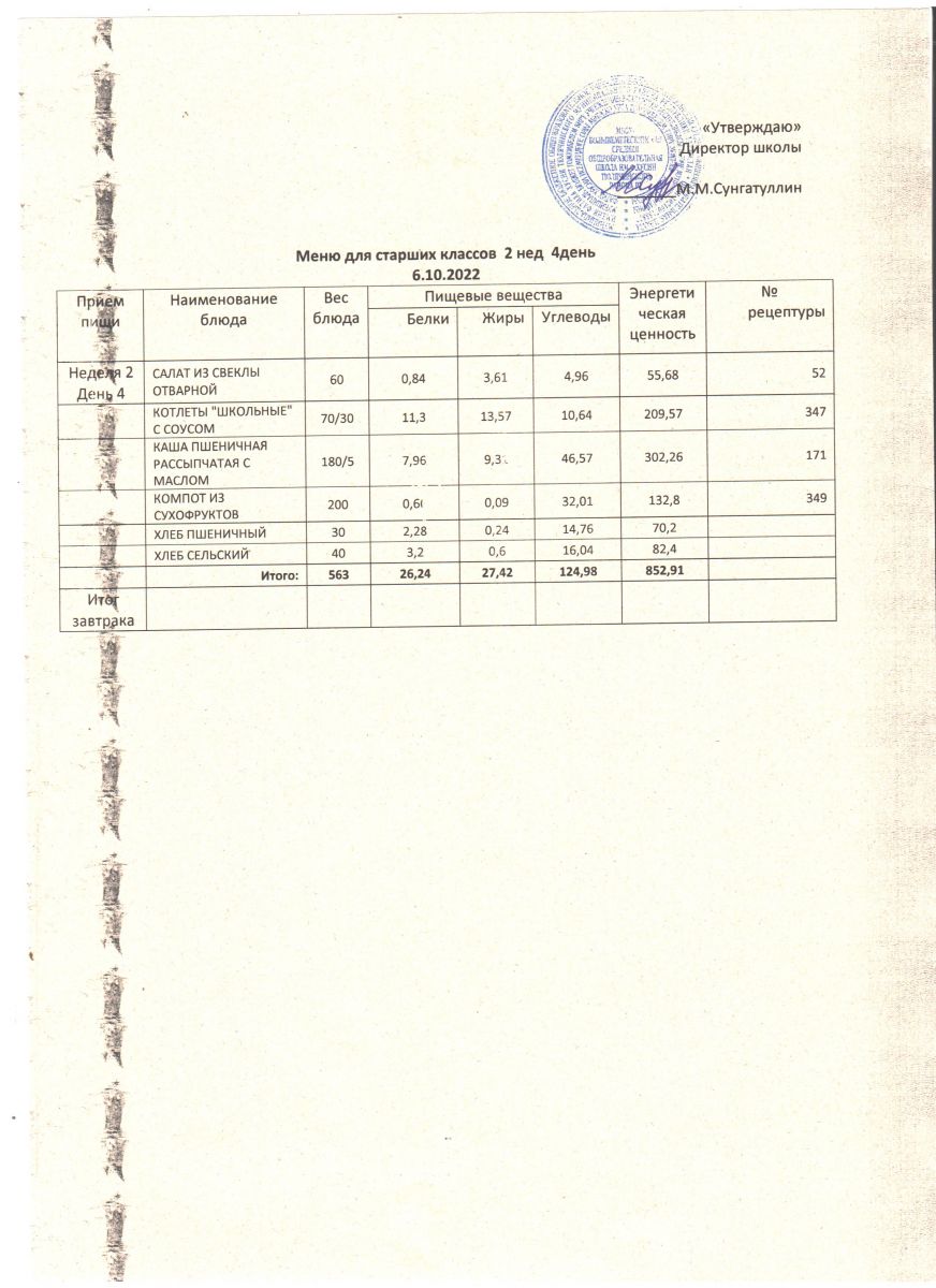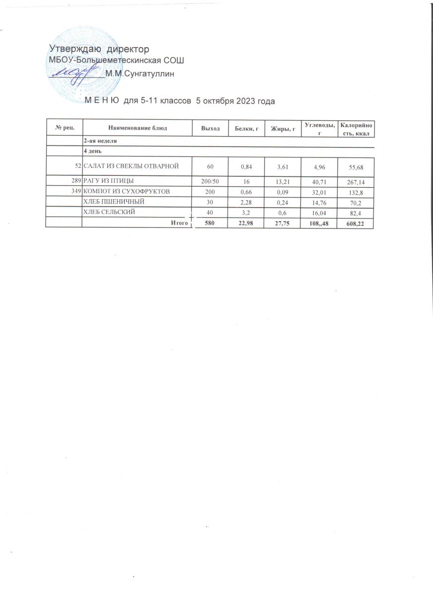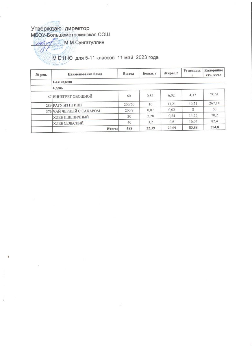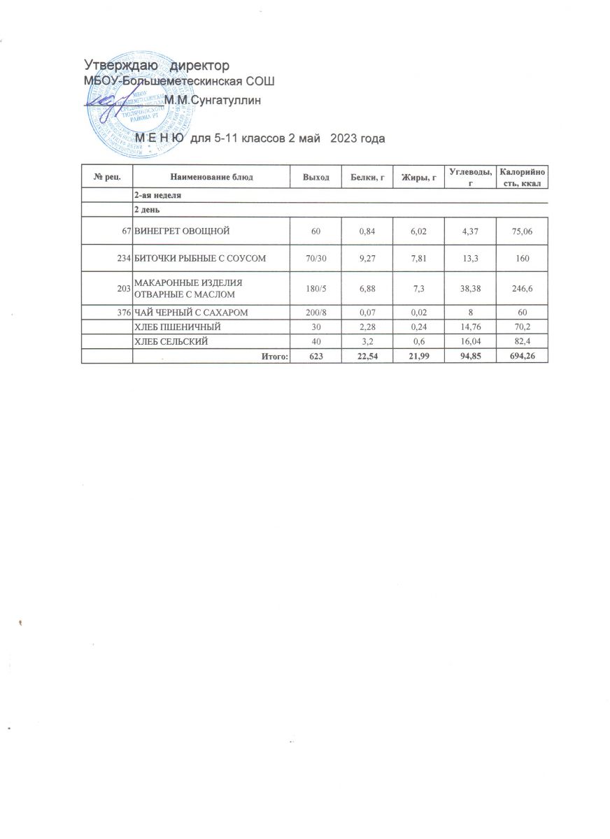 Меню для 5 - 11 классов на 05.05.2022 г.