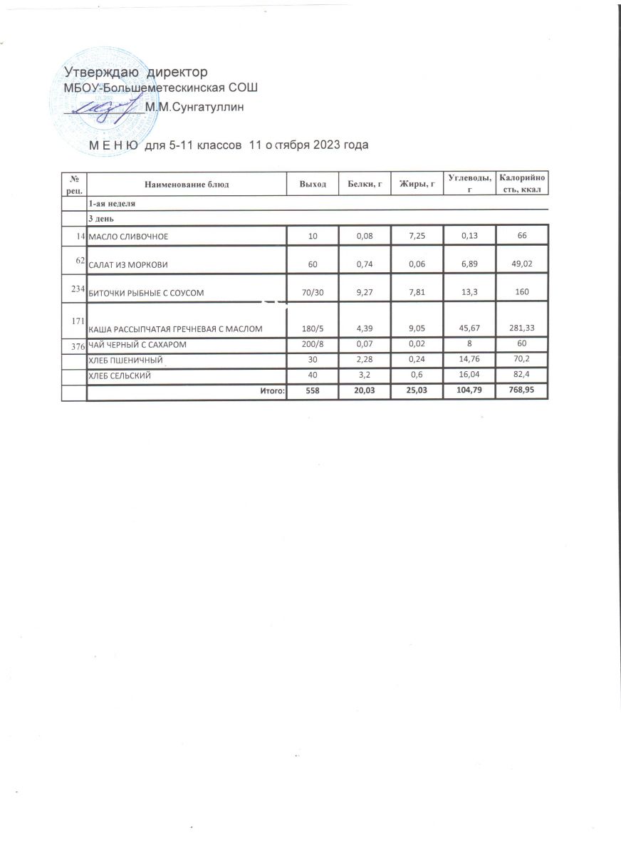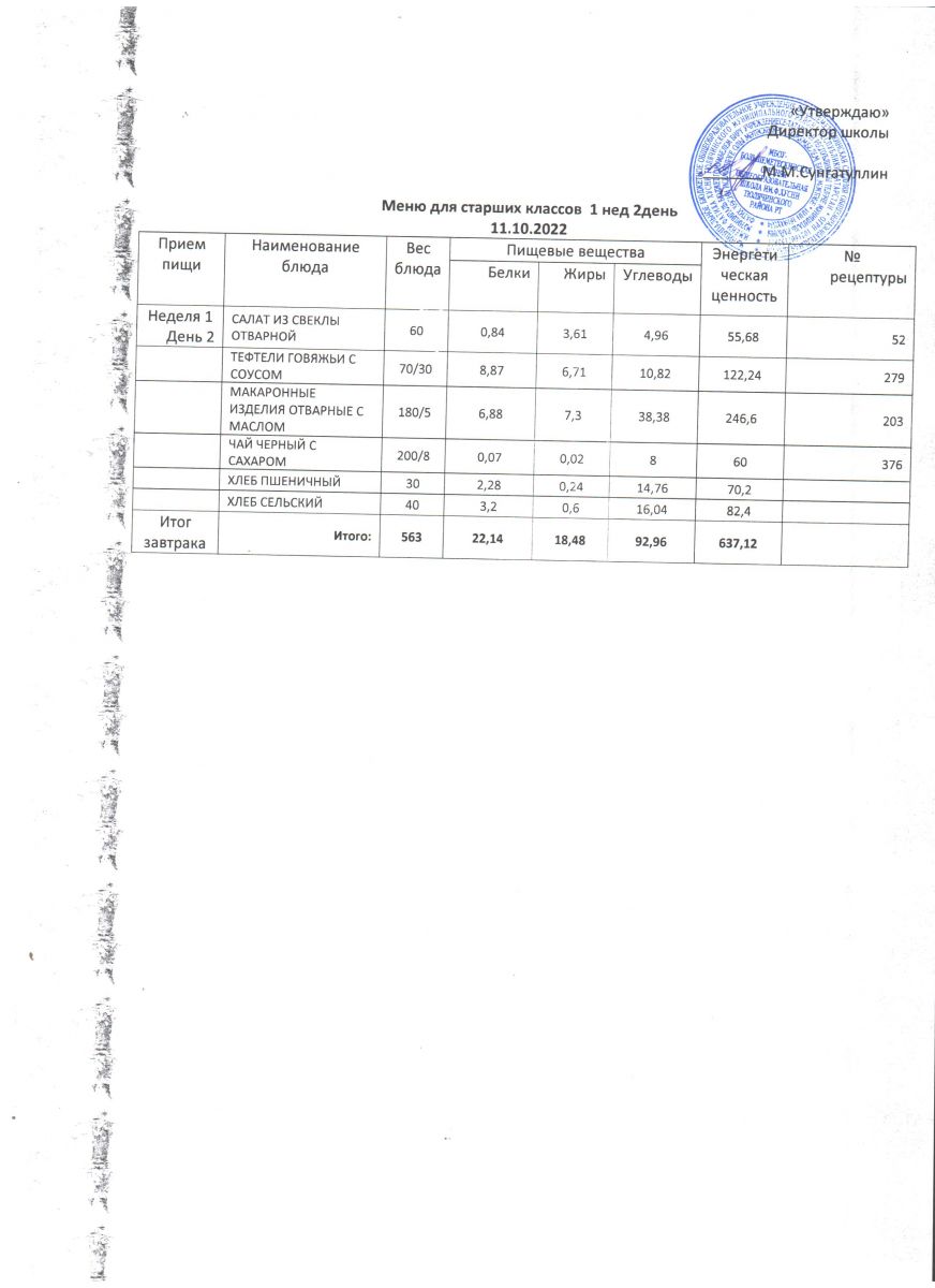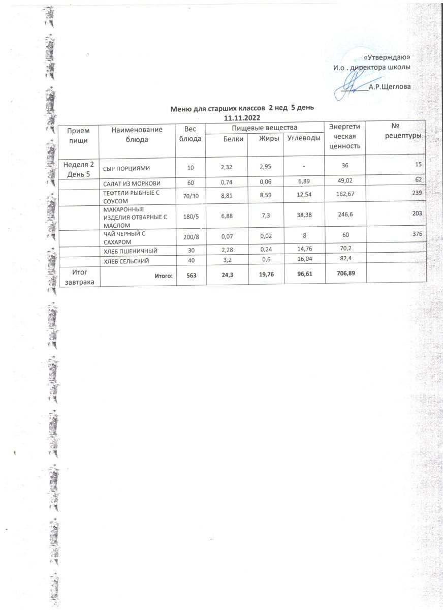 Меню для 5 - 11 классов на 11.05.2022 г.