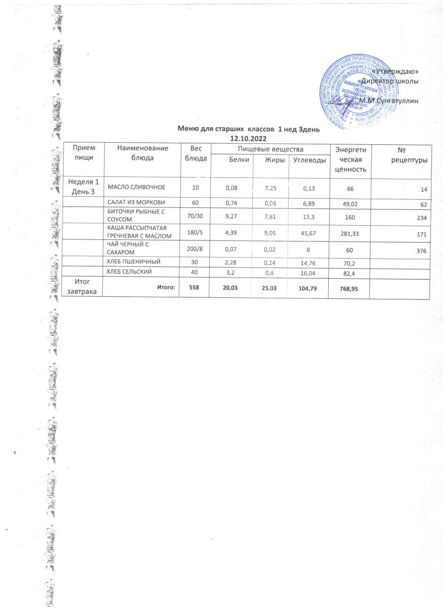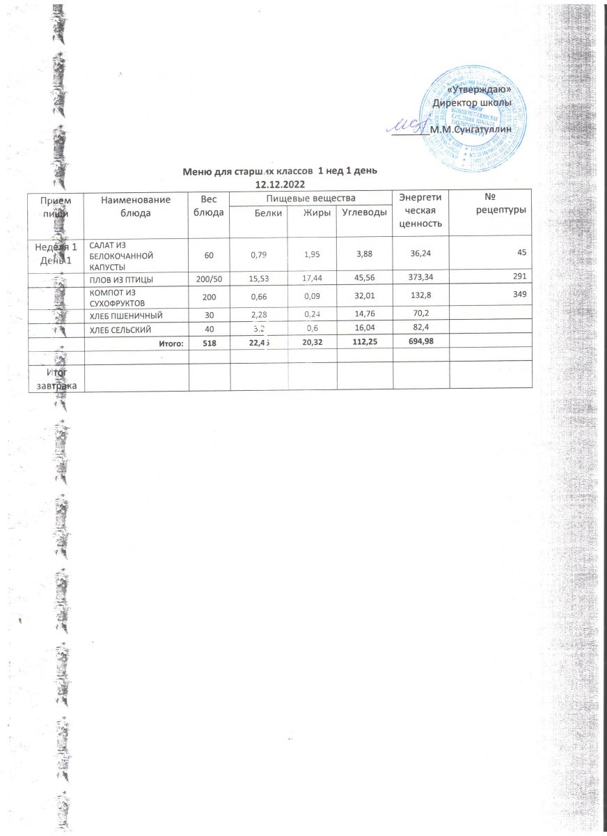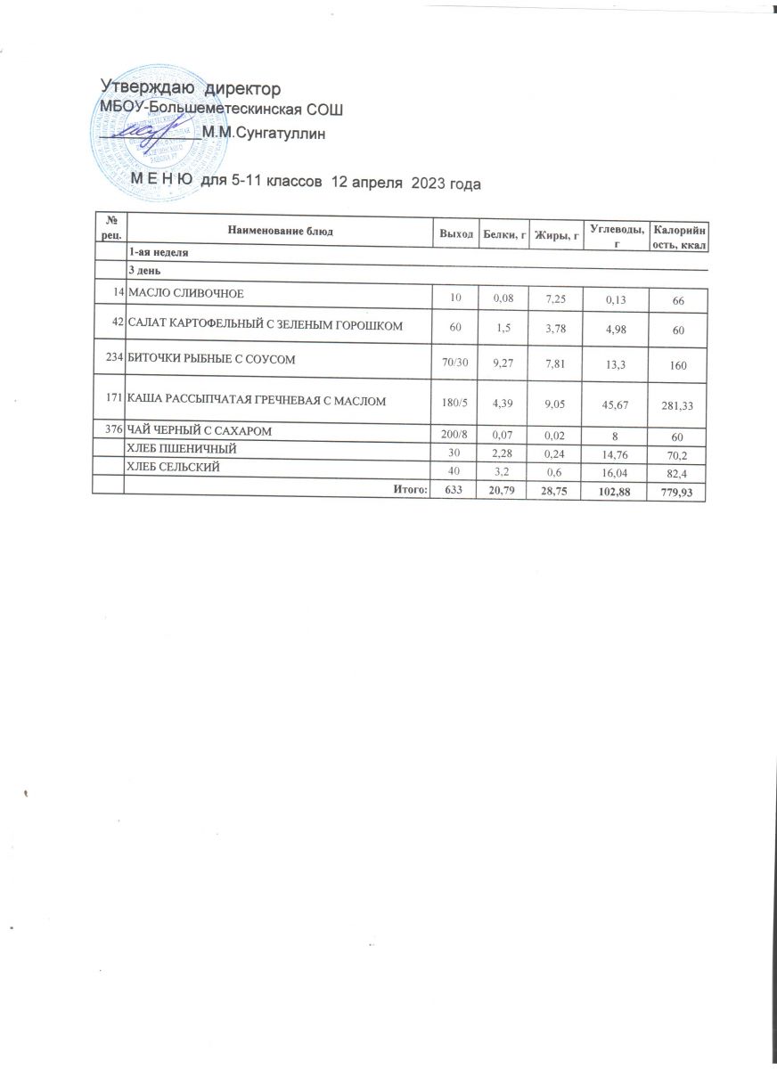 Меню для 5 - 11 классов на 12.04.2022 г.