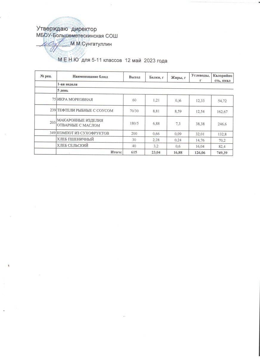 Меню для 5 - 11 классов на 12.05.2022 г.