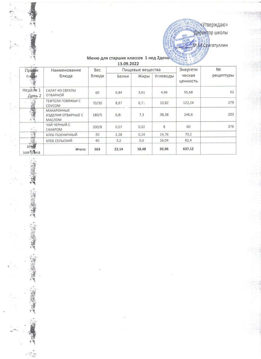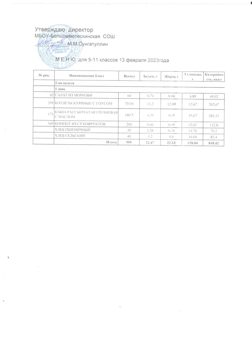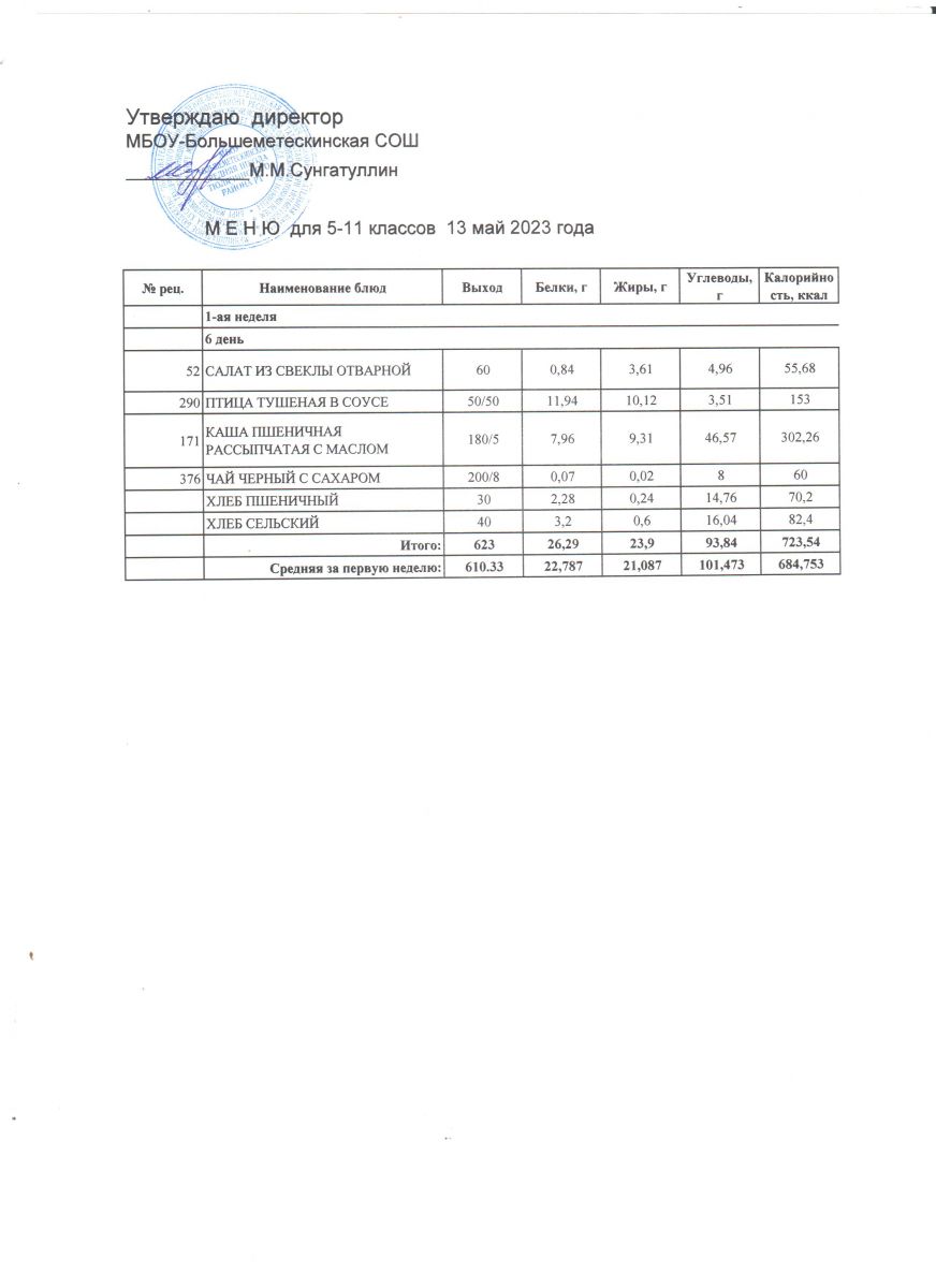 Меню для 5 - 11 классов на 13.05.2022 г.