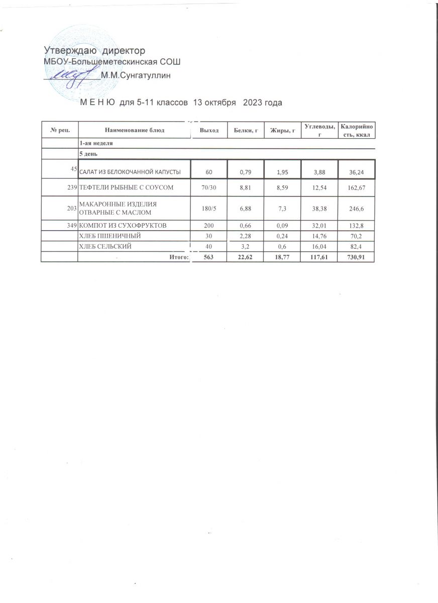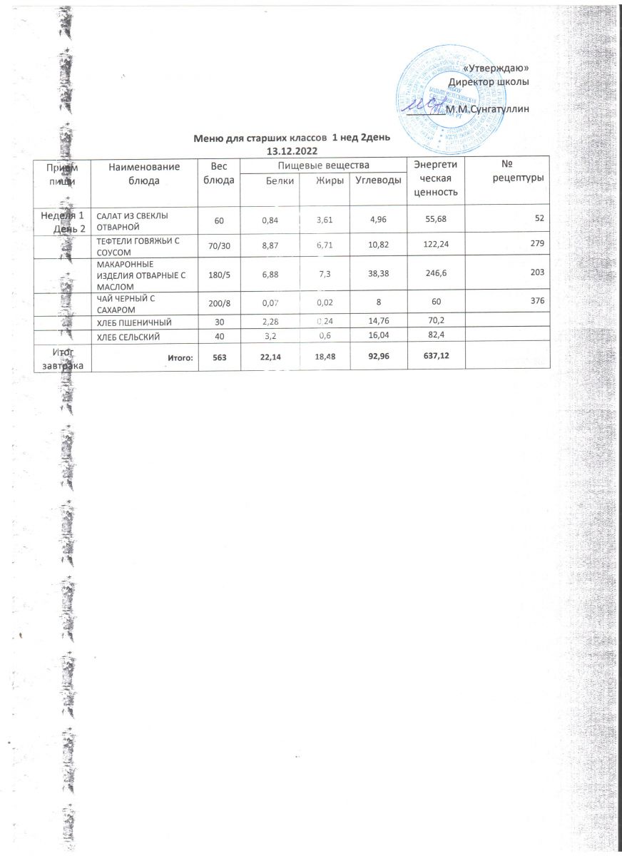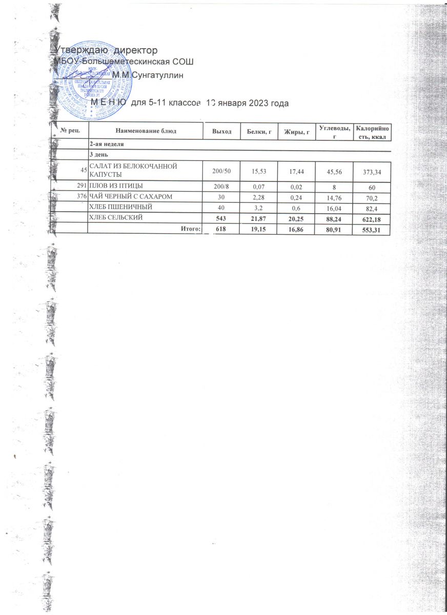 Меню для 5 - 11 классов на 13.05.2022 г.