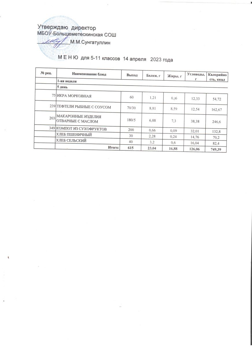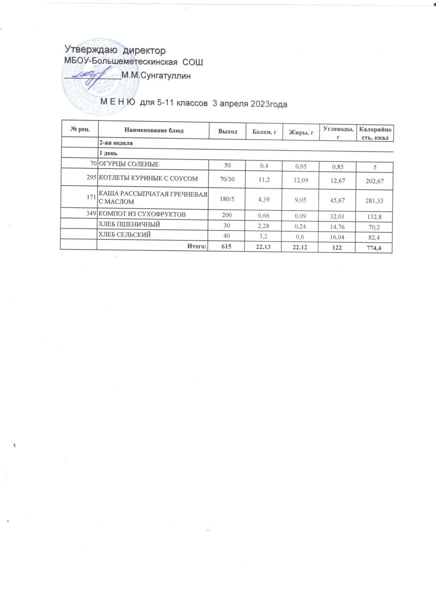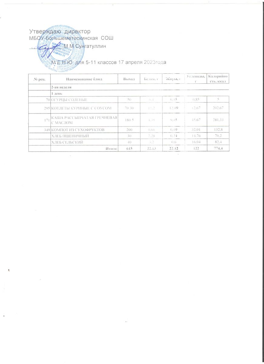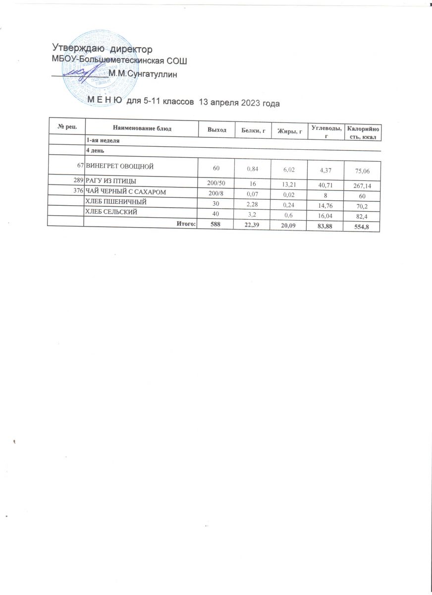 Меню для 5 - 11 классов на 13.04.2022 г.