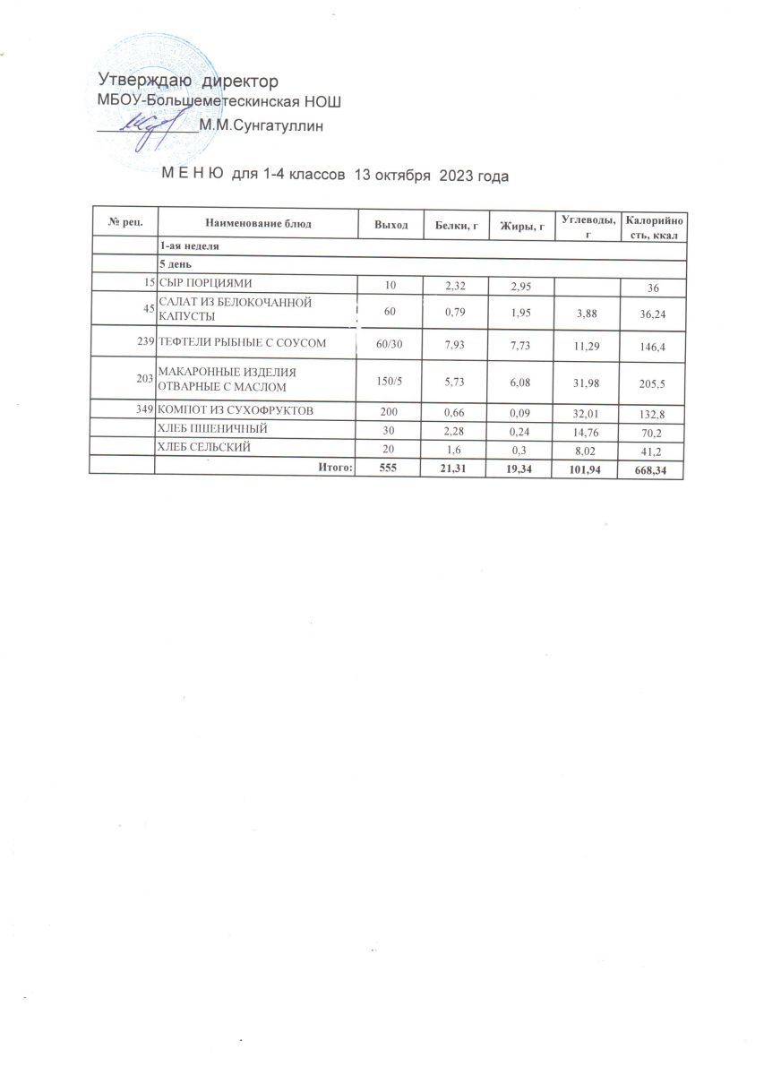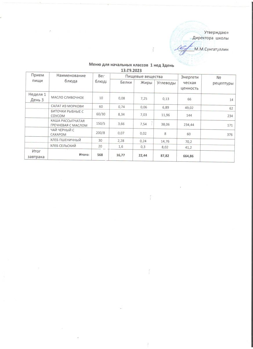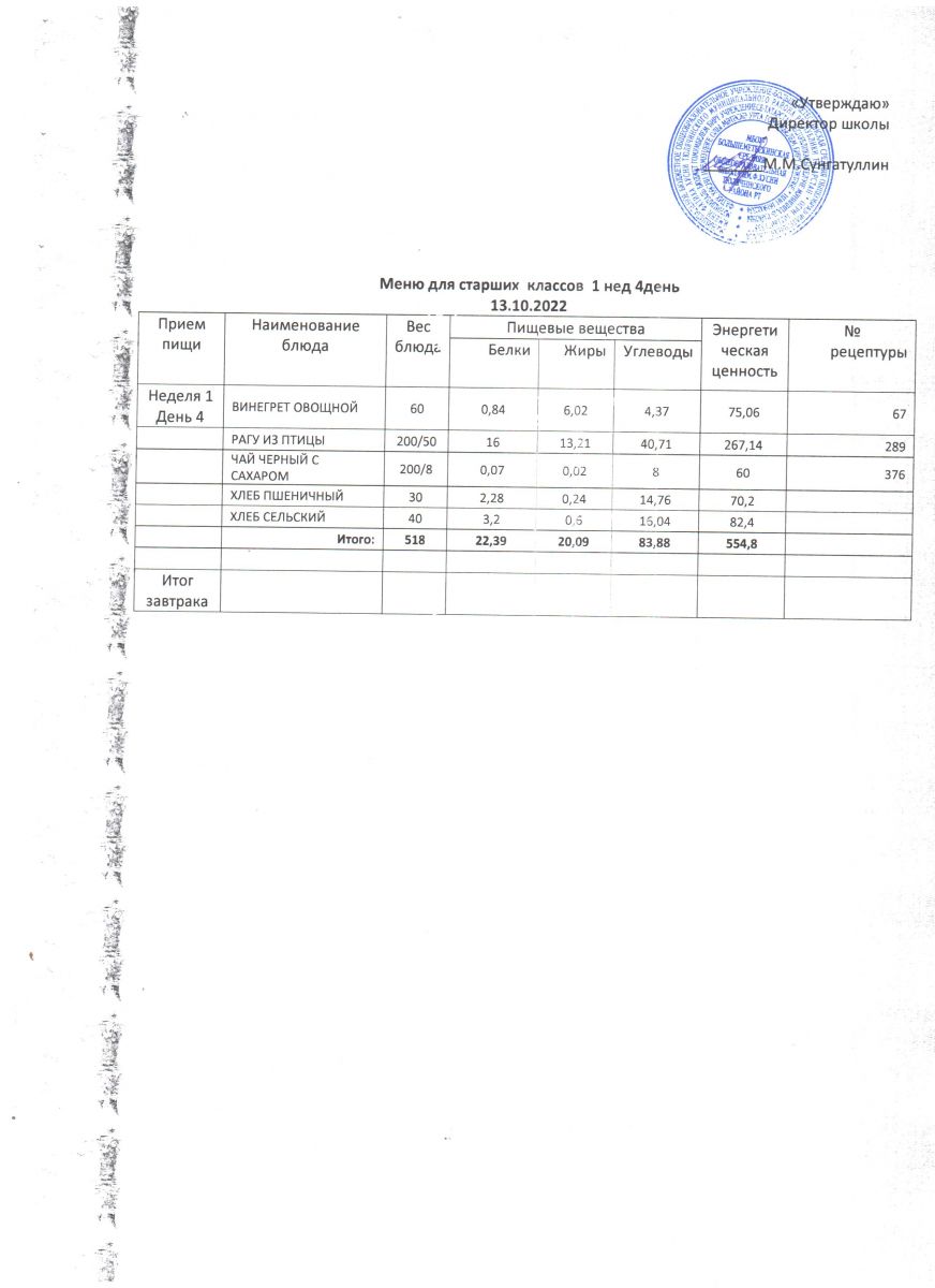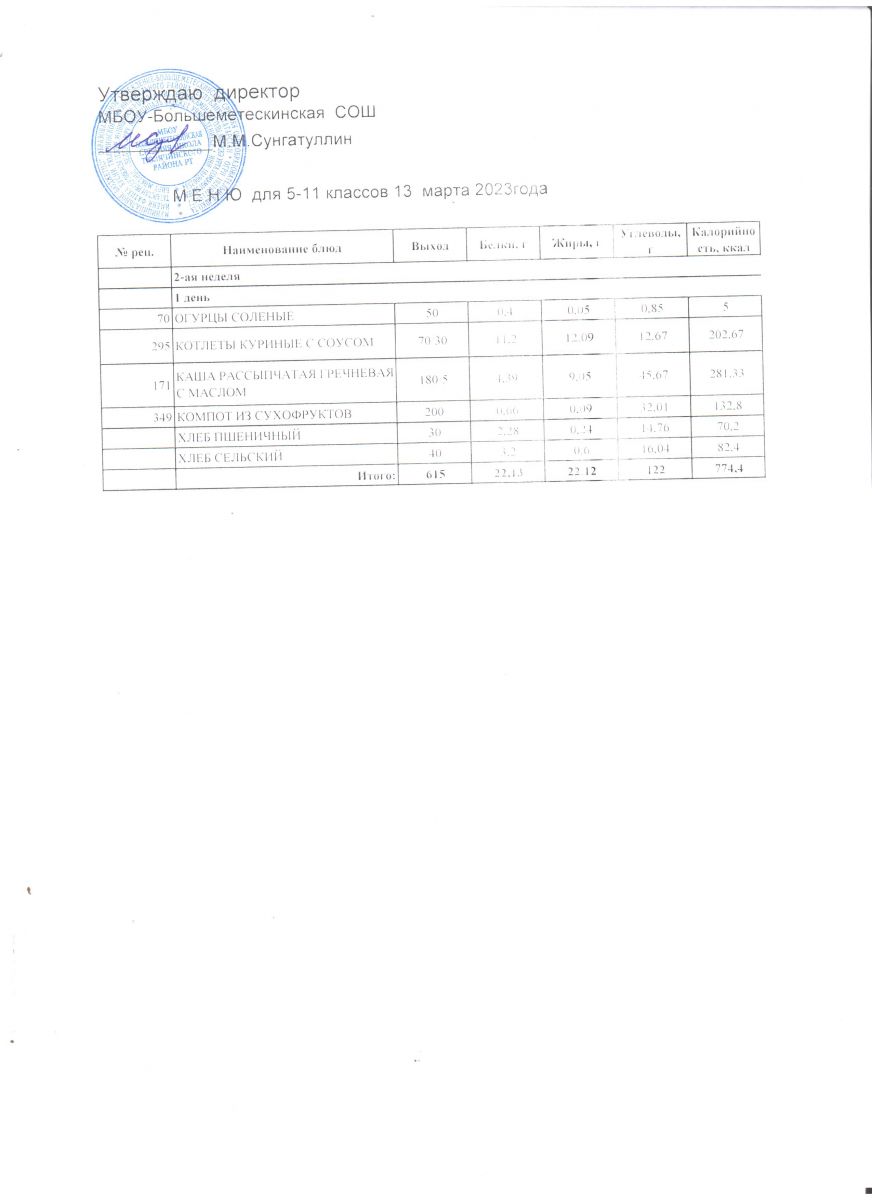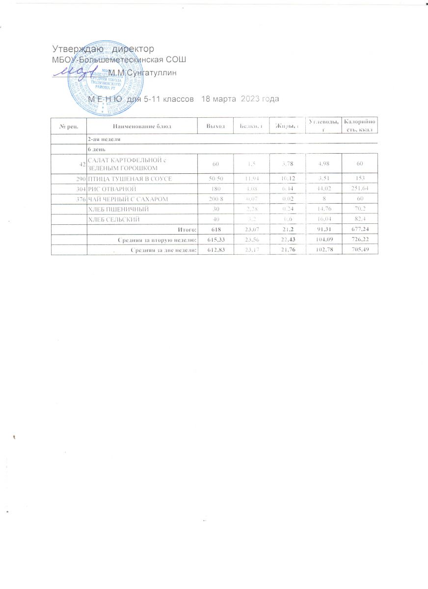 Меню для 5 - 11 классов на 13.04.2022 г.