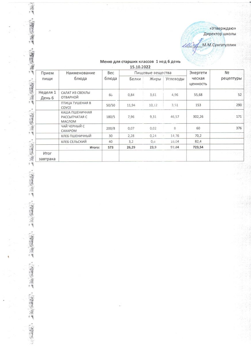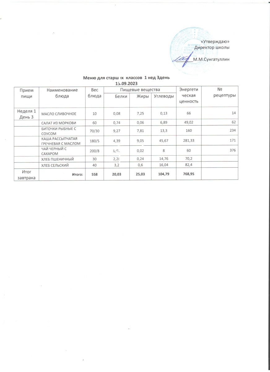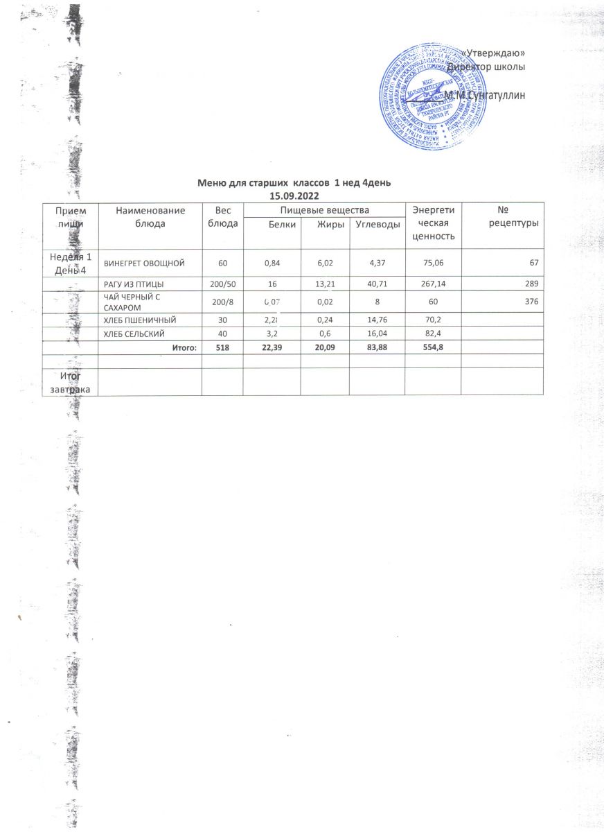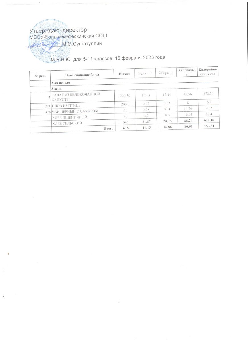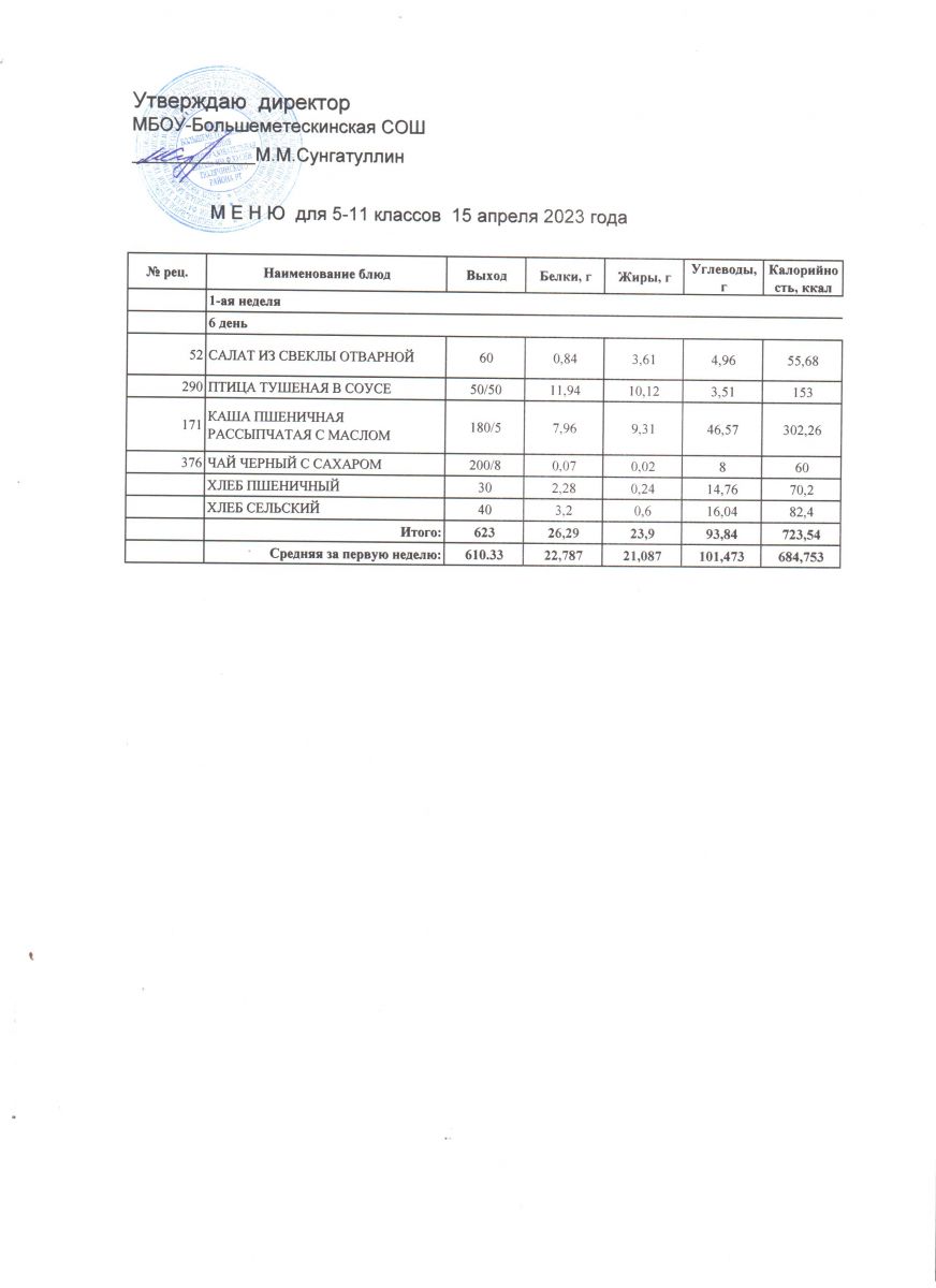 Меню для 5 - 11 классов на 15.04.2022 г.