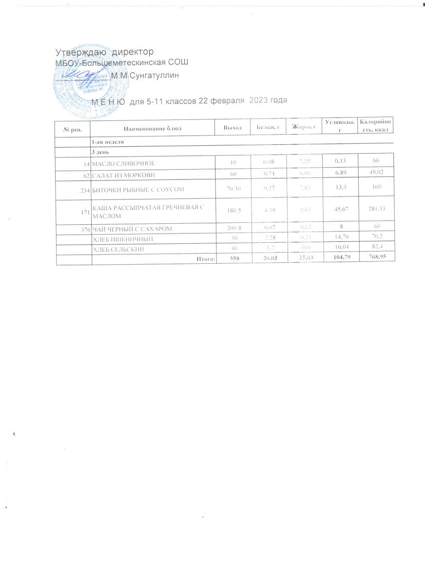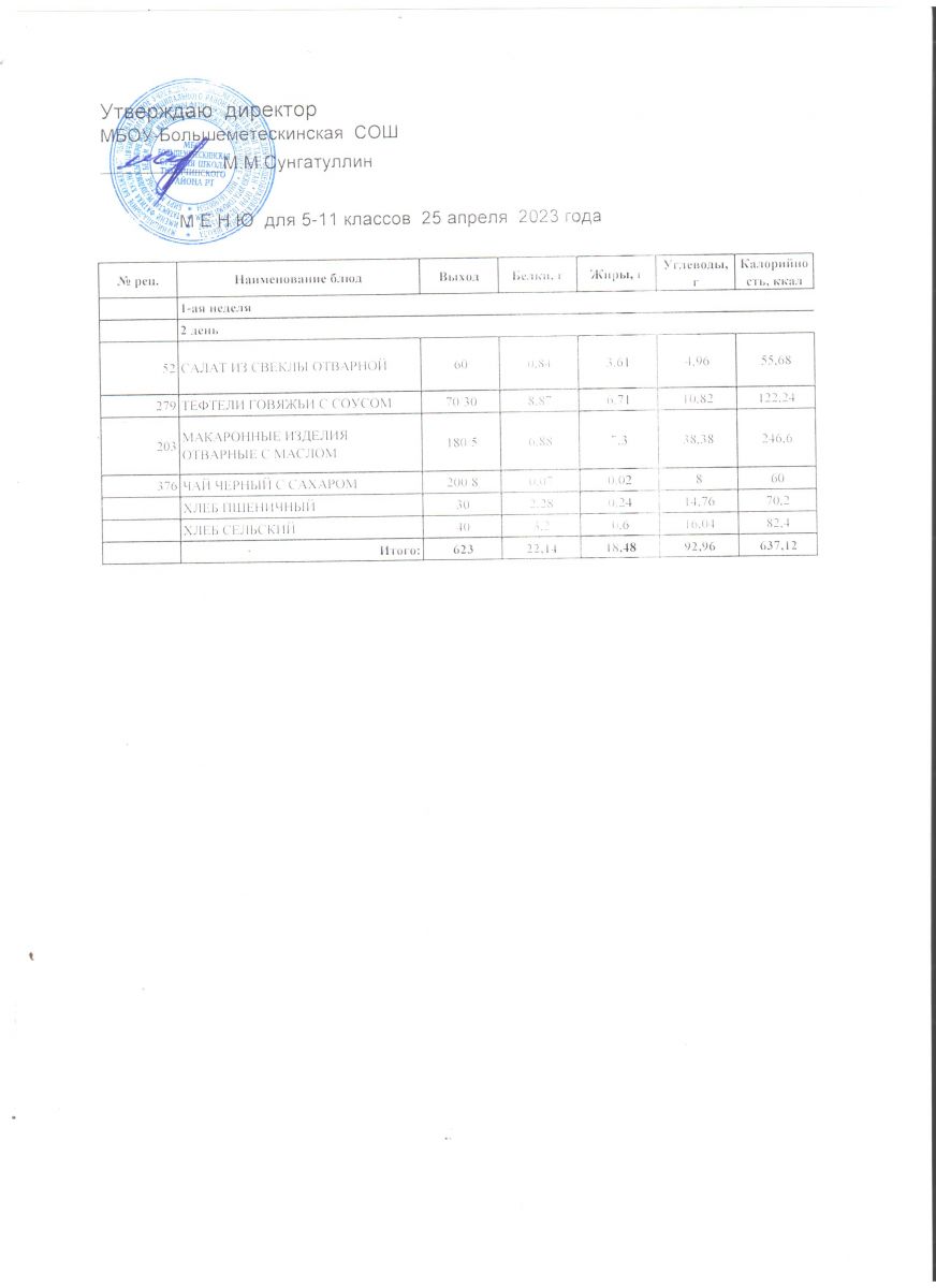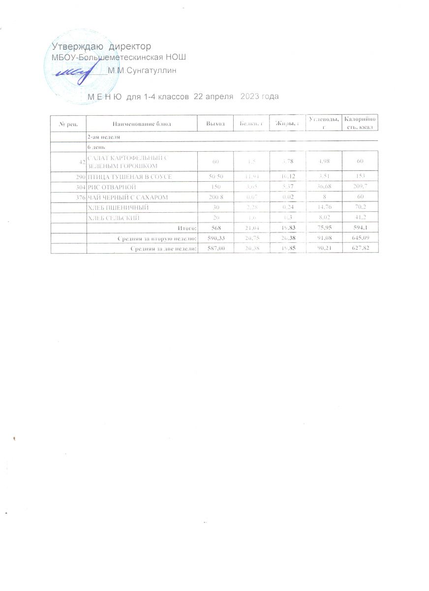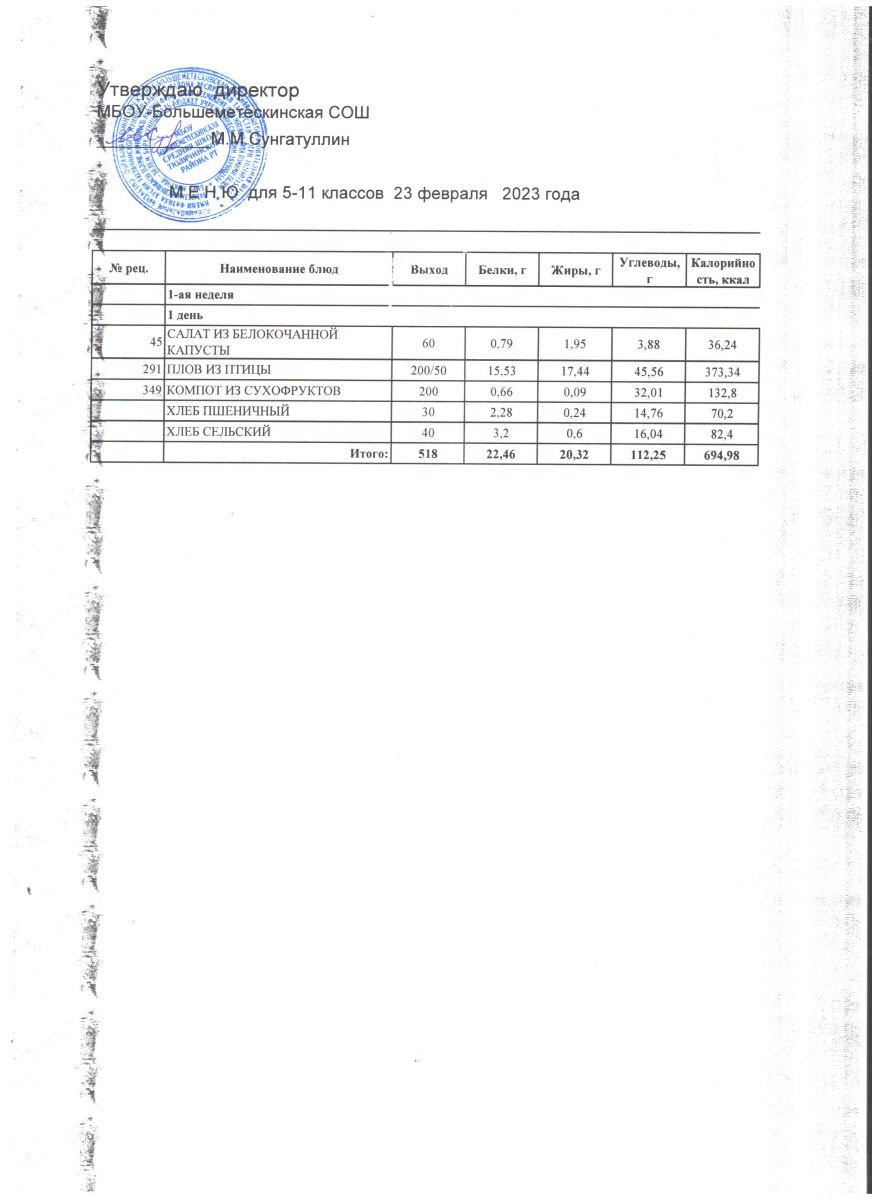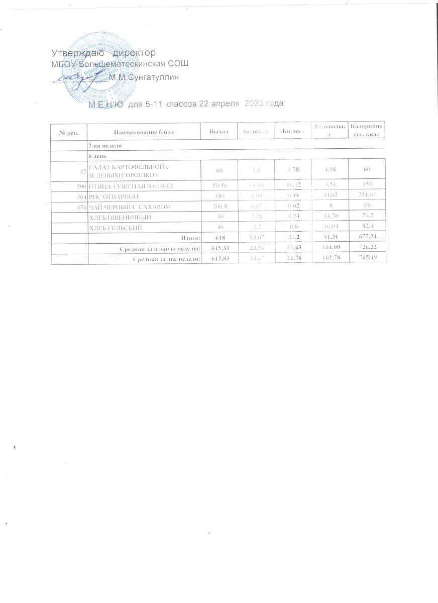 Меню для 5 - 11 классов на 23.04.2022 г.
