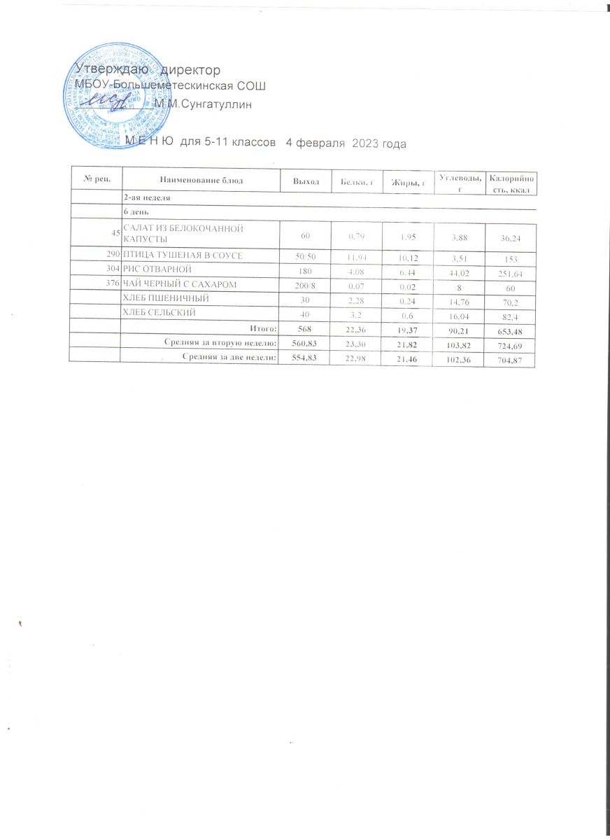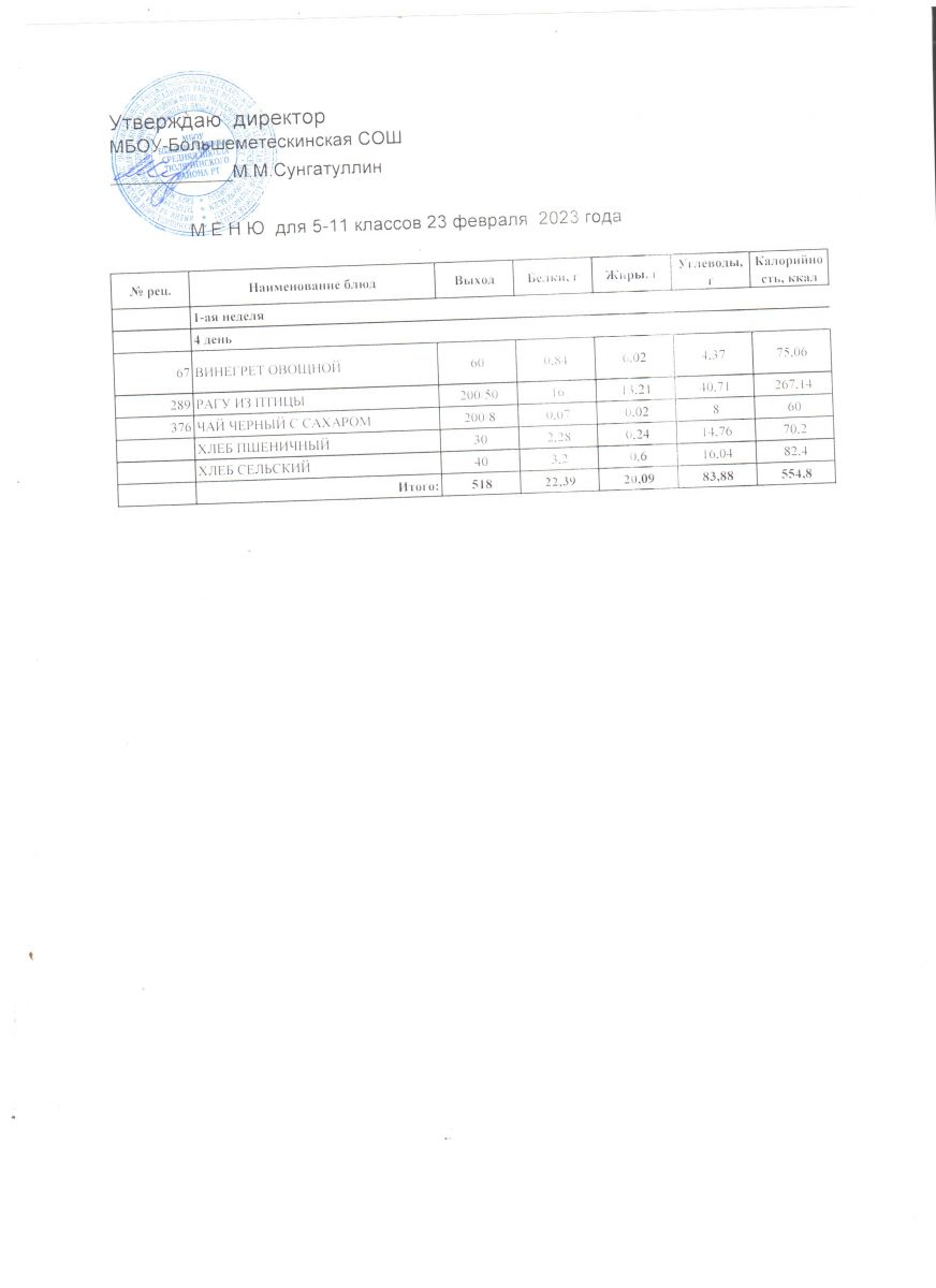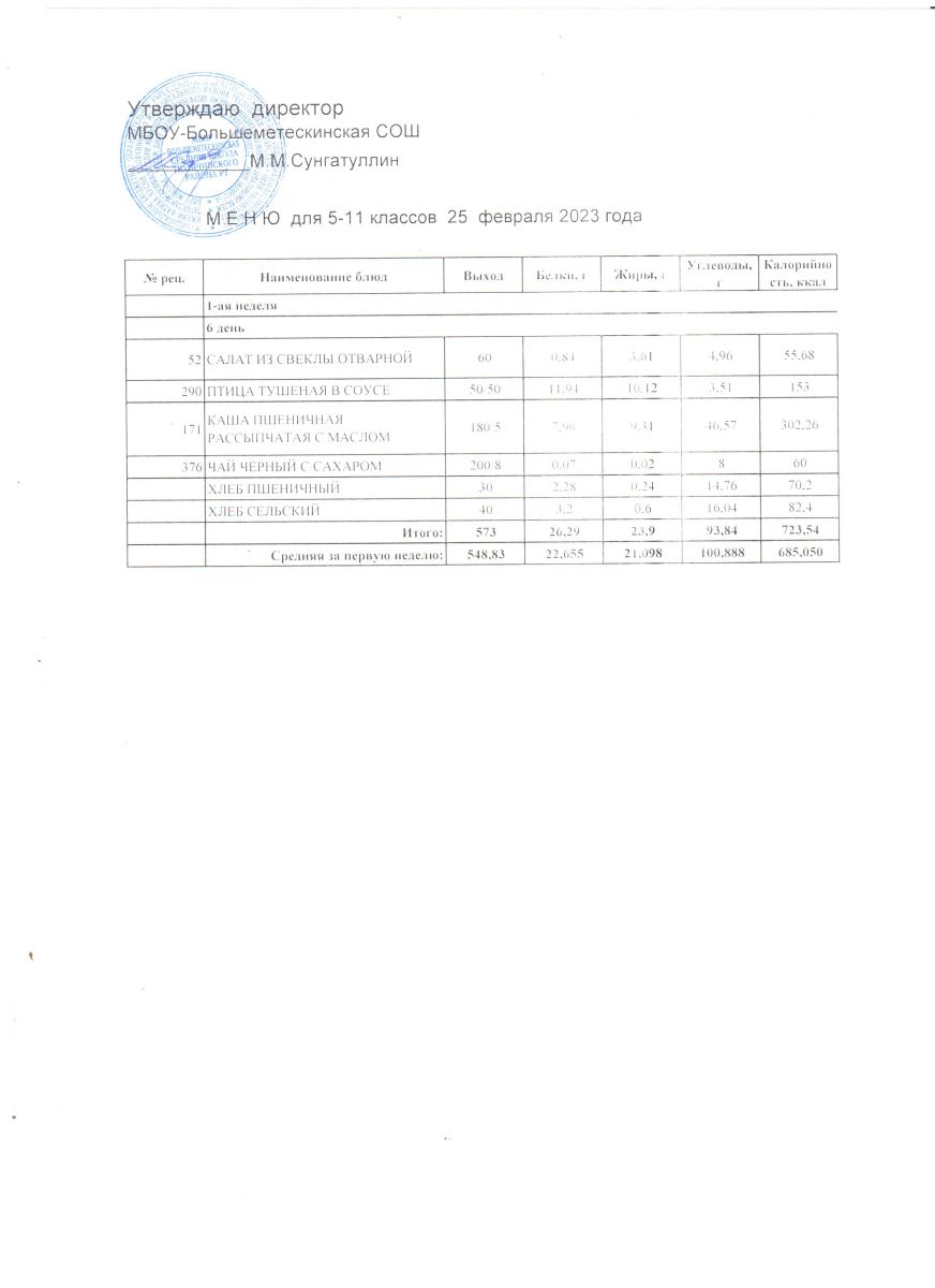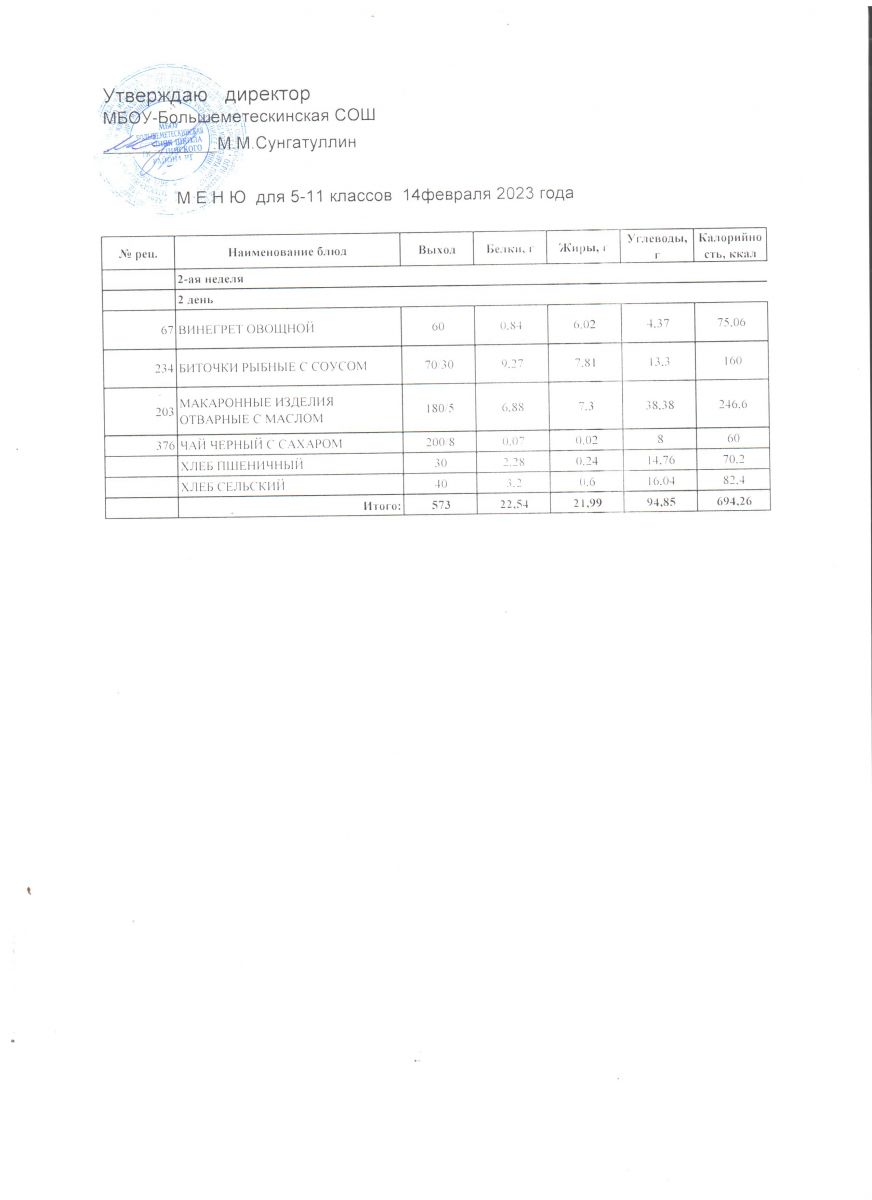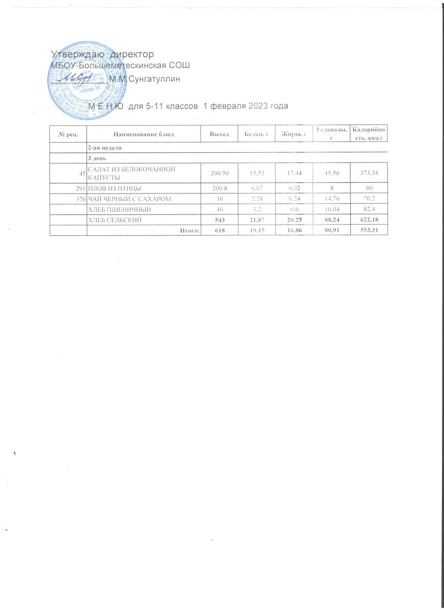 Меню для 5 - 11 классов на 23.04.2022 г.