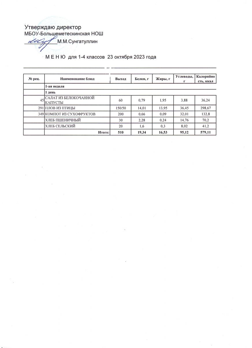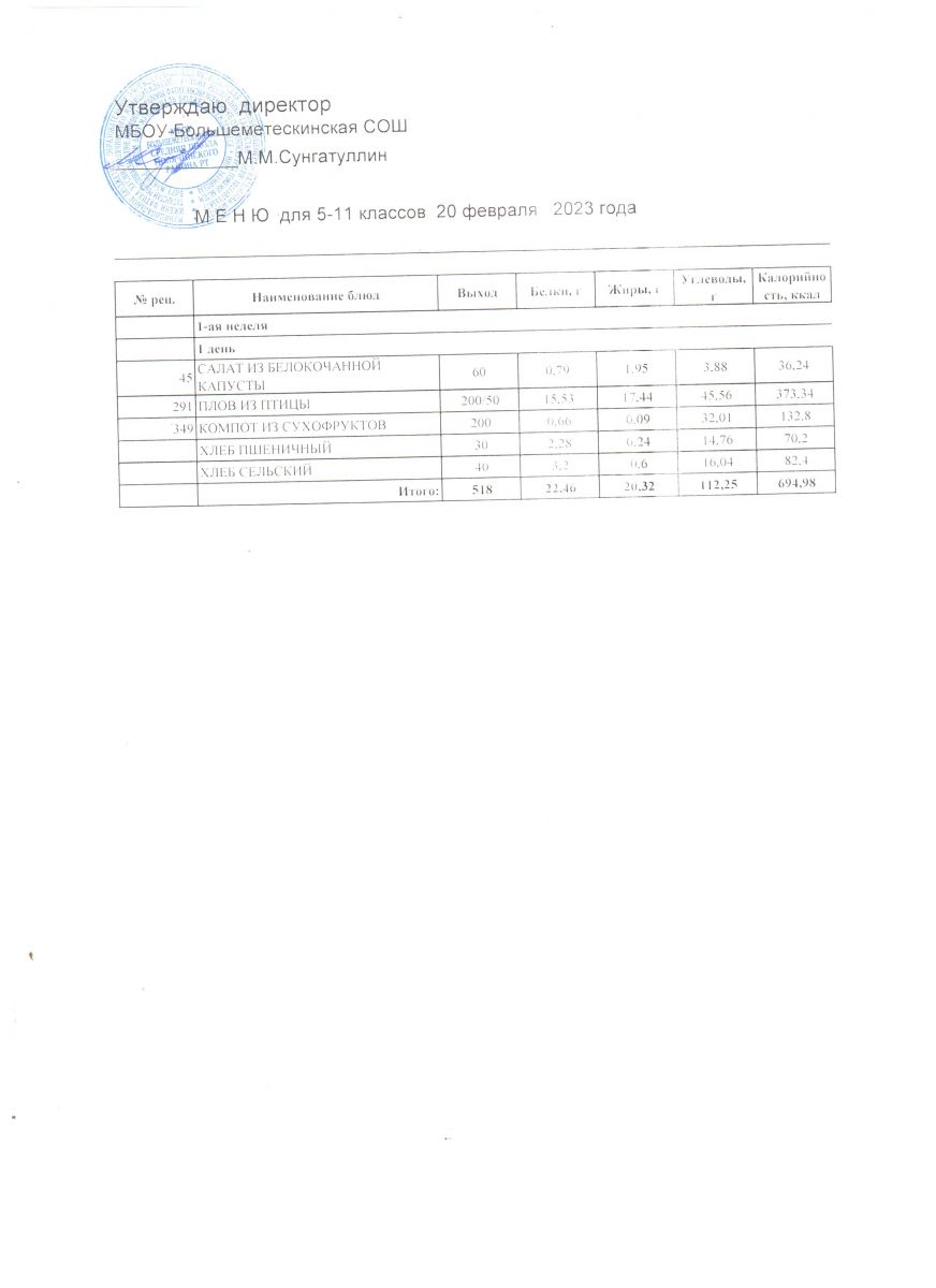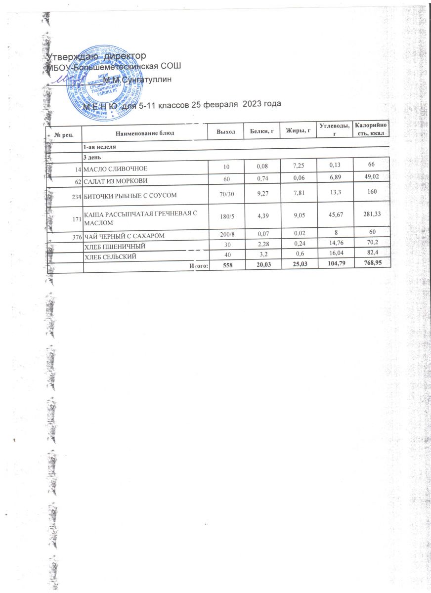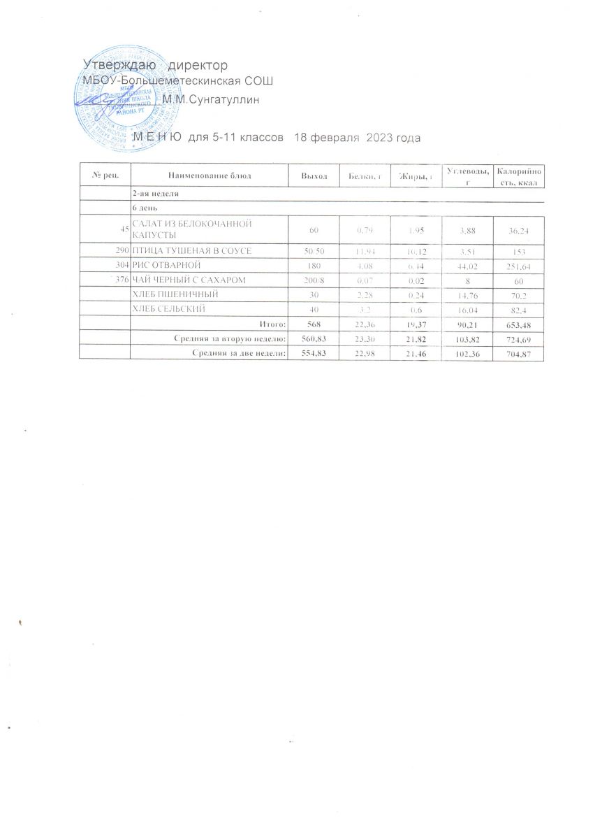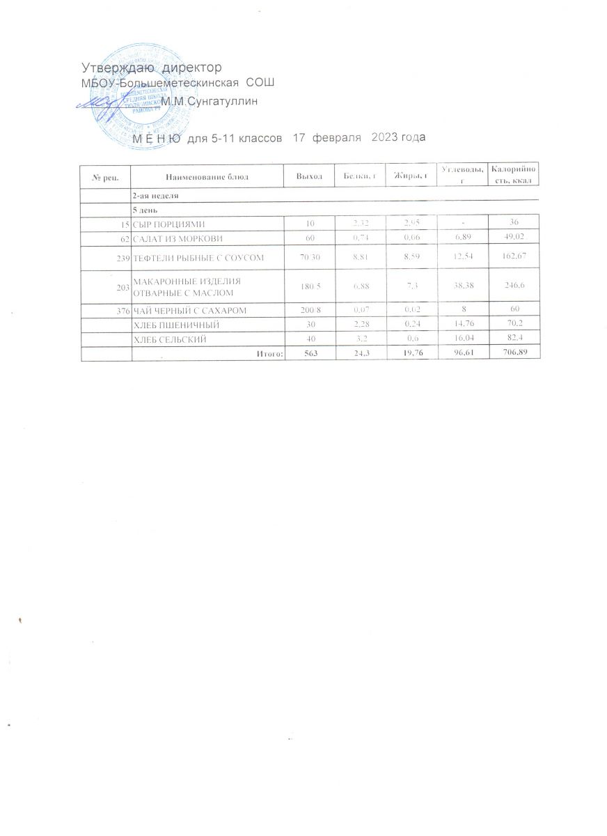 Меню для 5 - 11 классов на 23.04.2022 г.