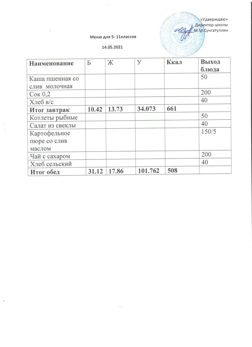 Меню для 5 - 11 классов на 14.05.2022 г.