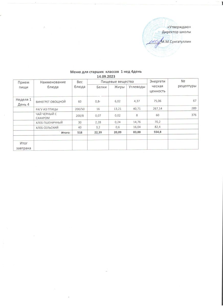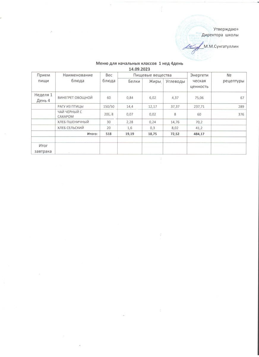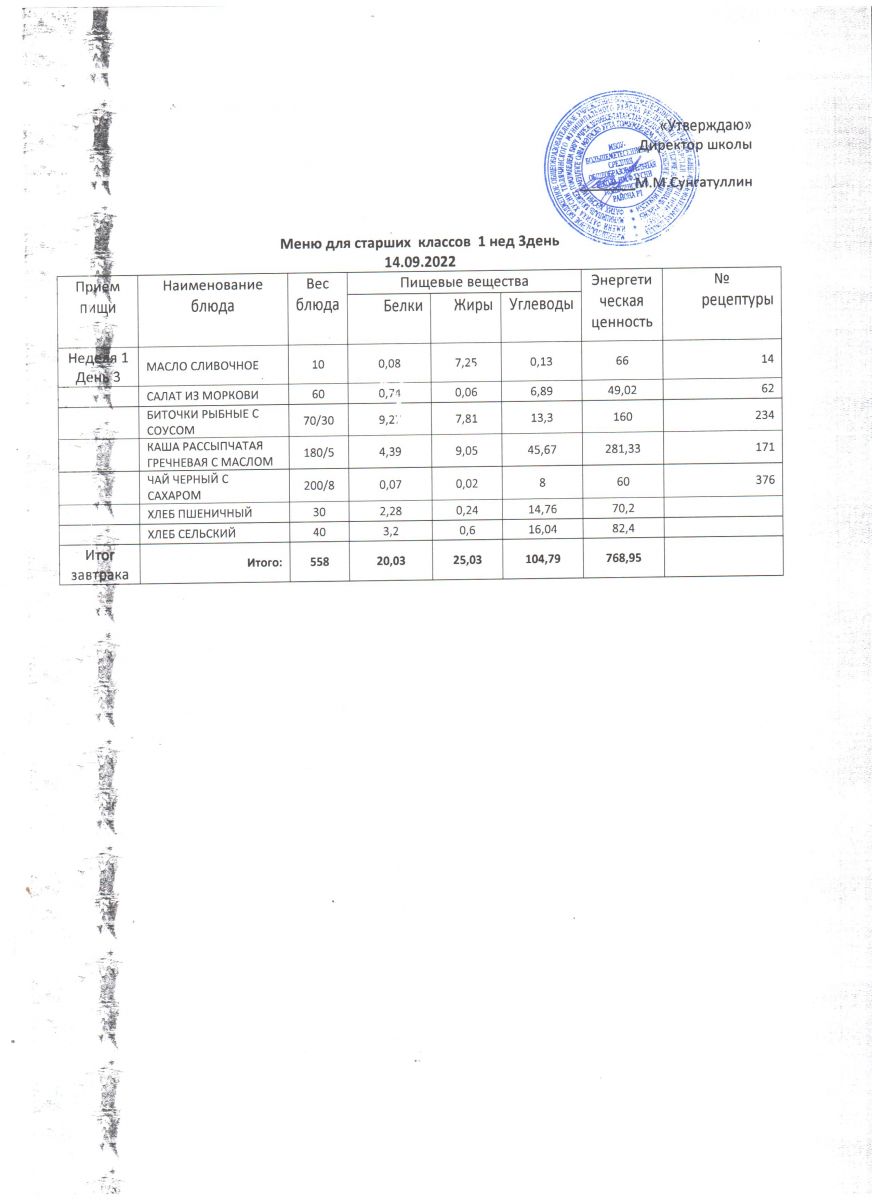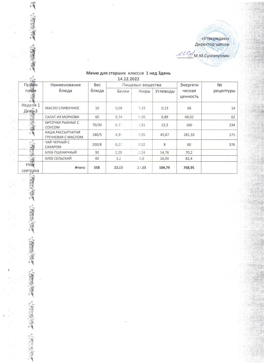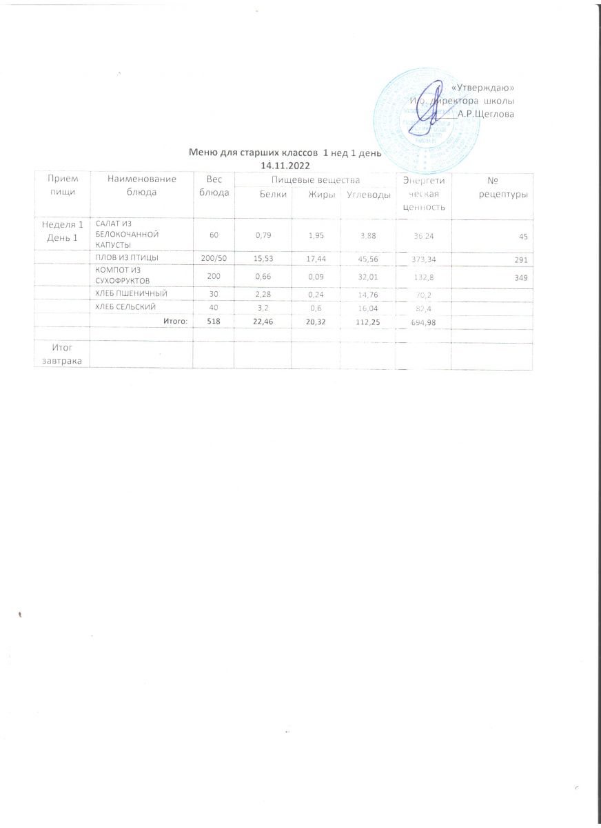 Меню для 5 - 11 классов на 14.04.2022 г.