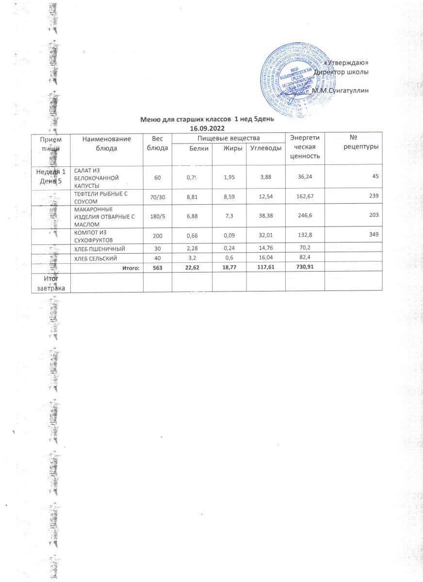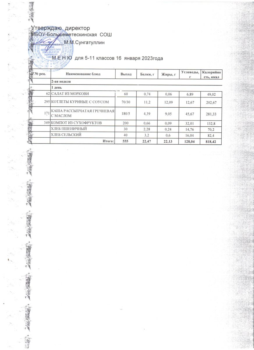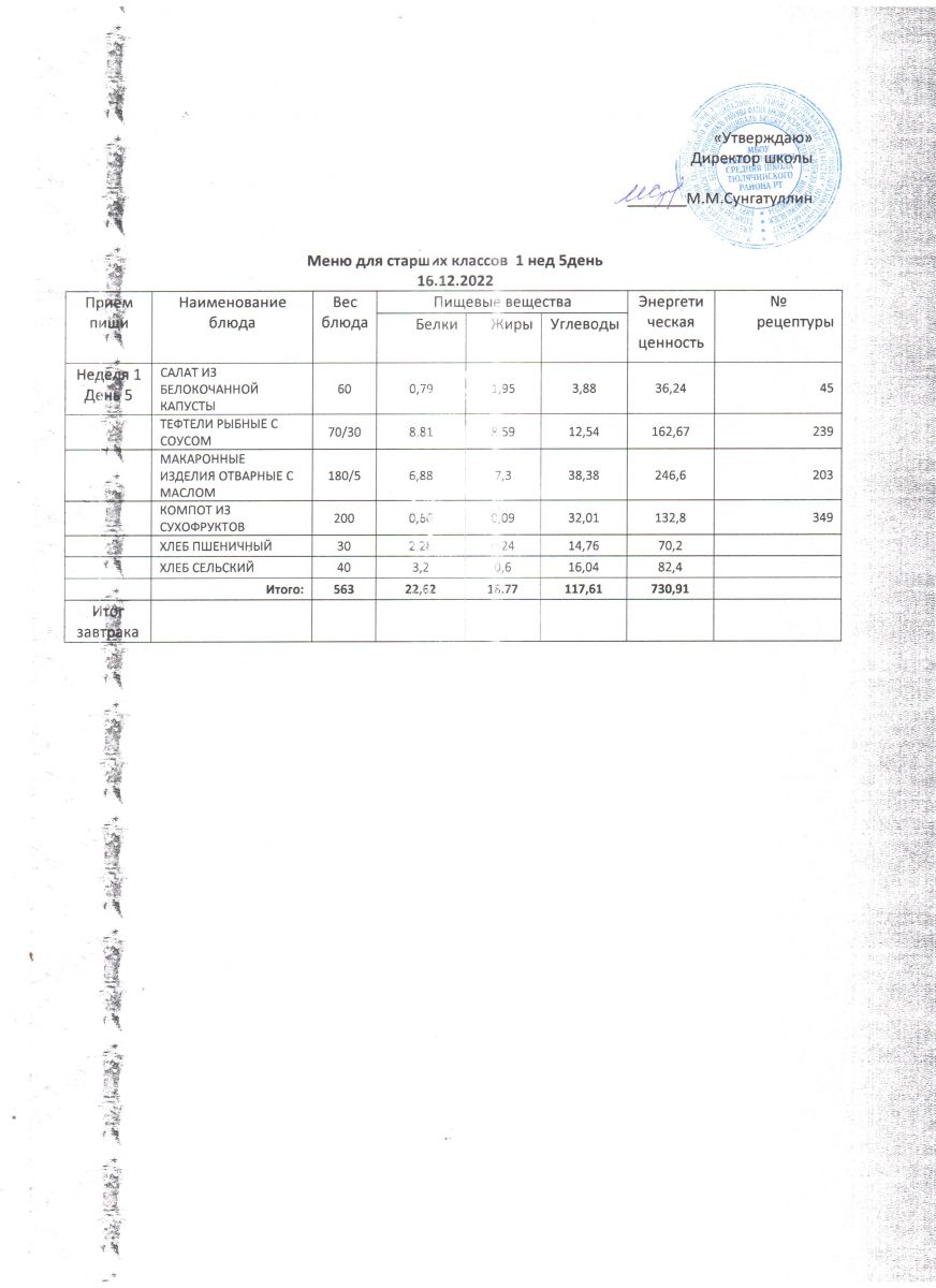 Меню для 5 - 11 классов на 16.05.2022 г.