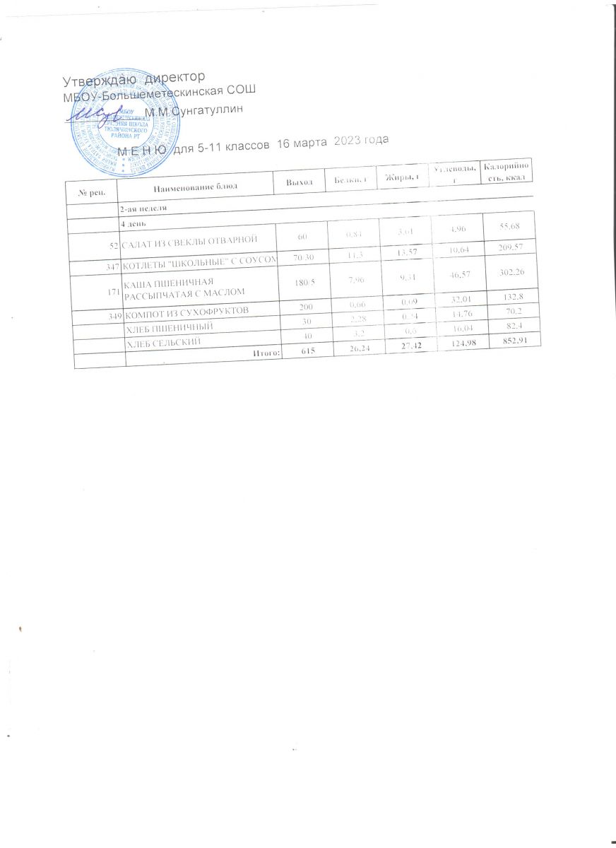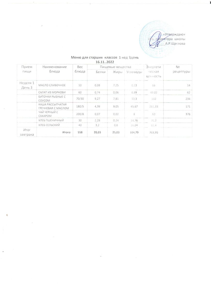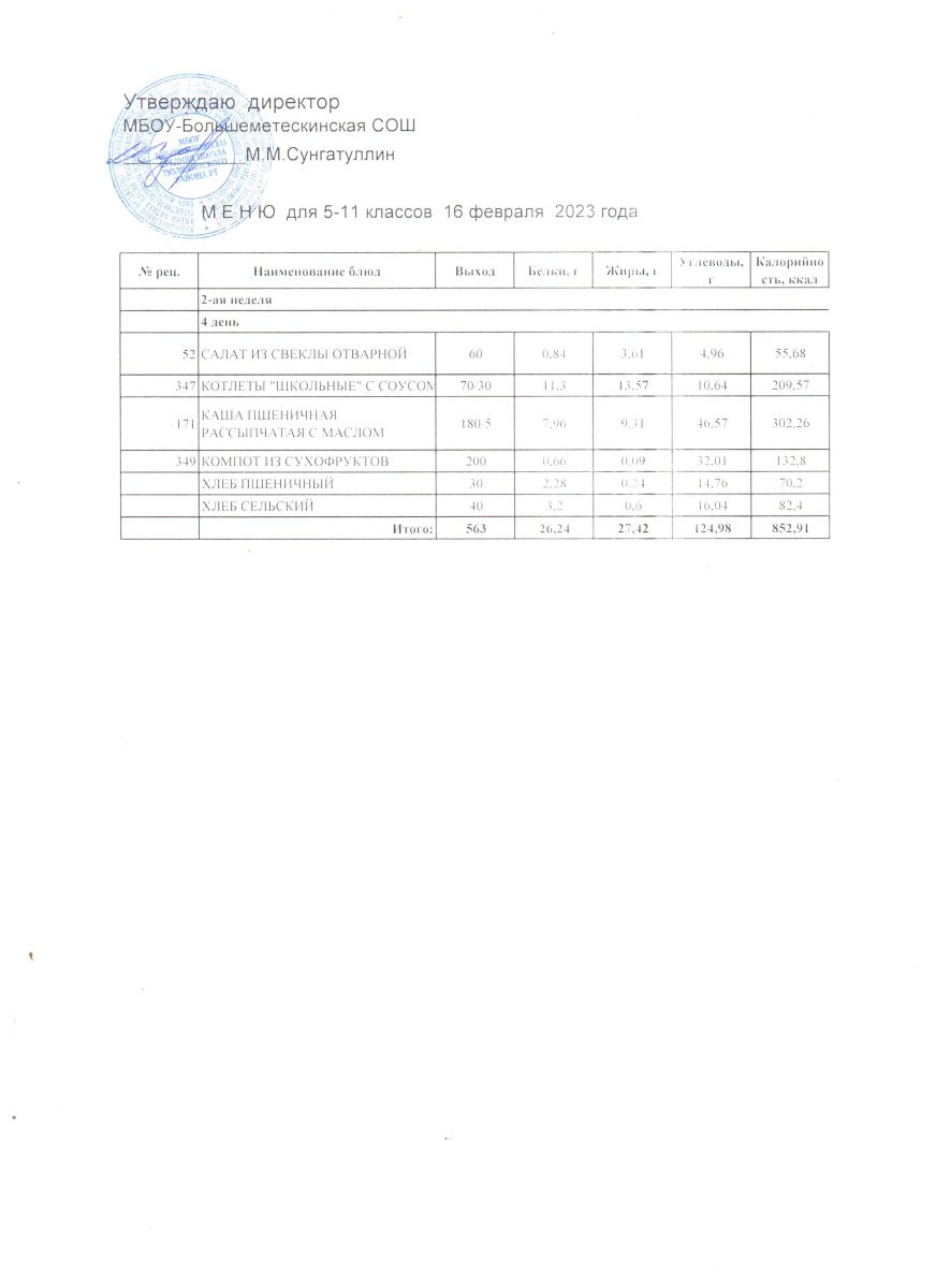 Меню для 5 - 11 классов на 16.05.2022 г.