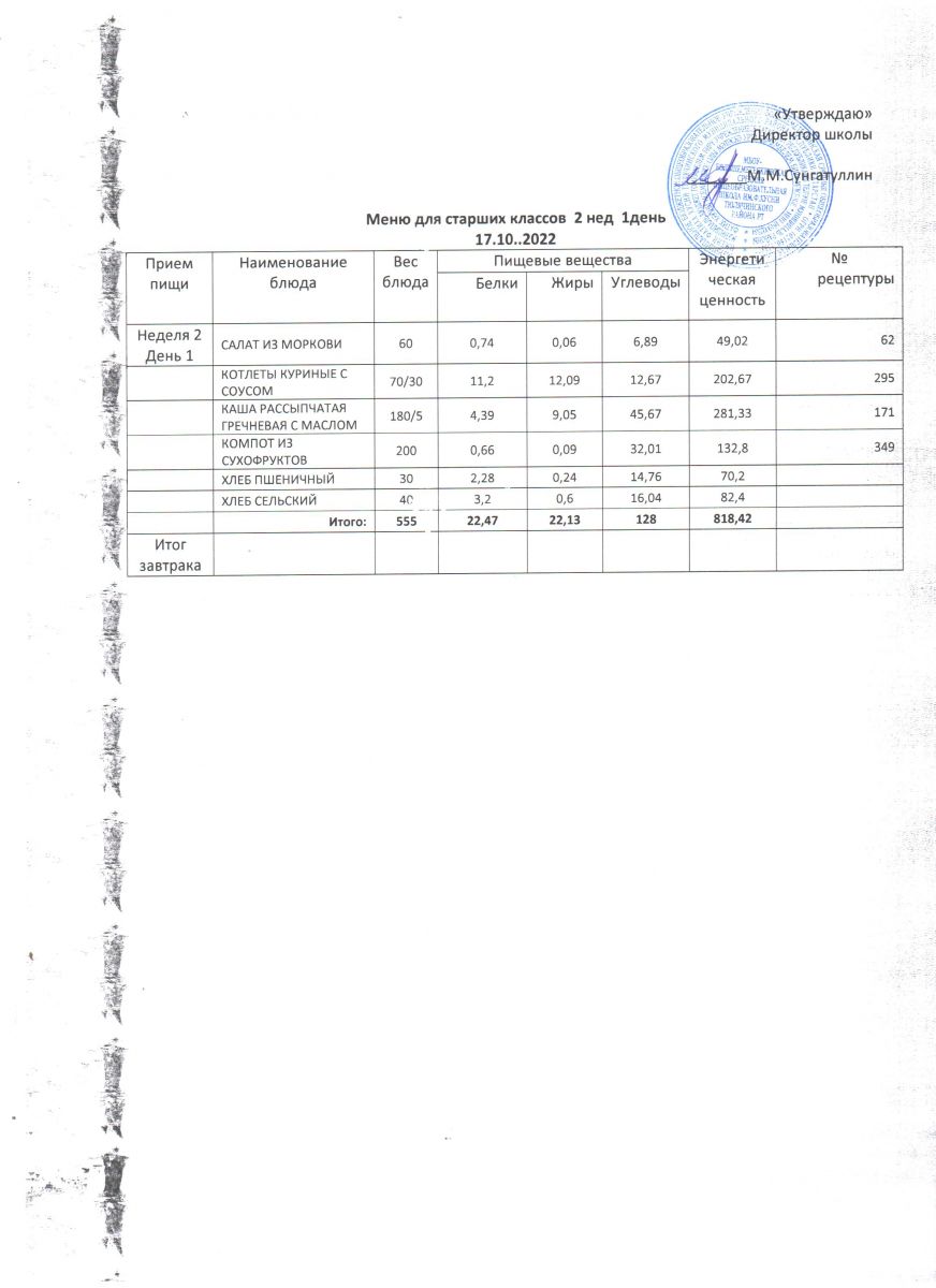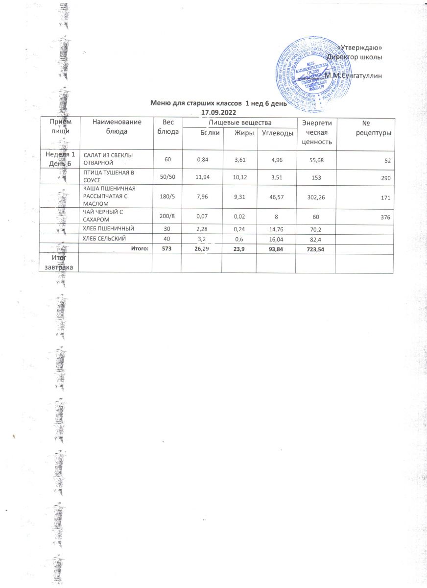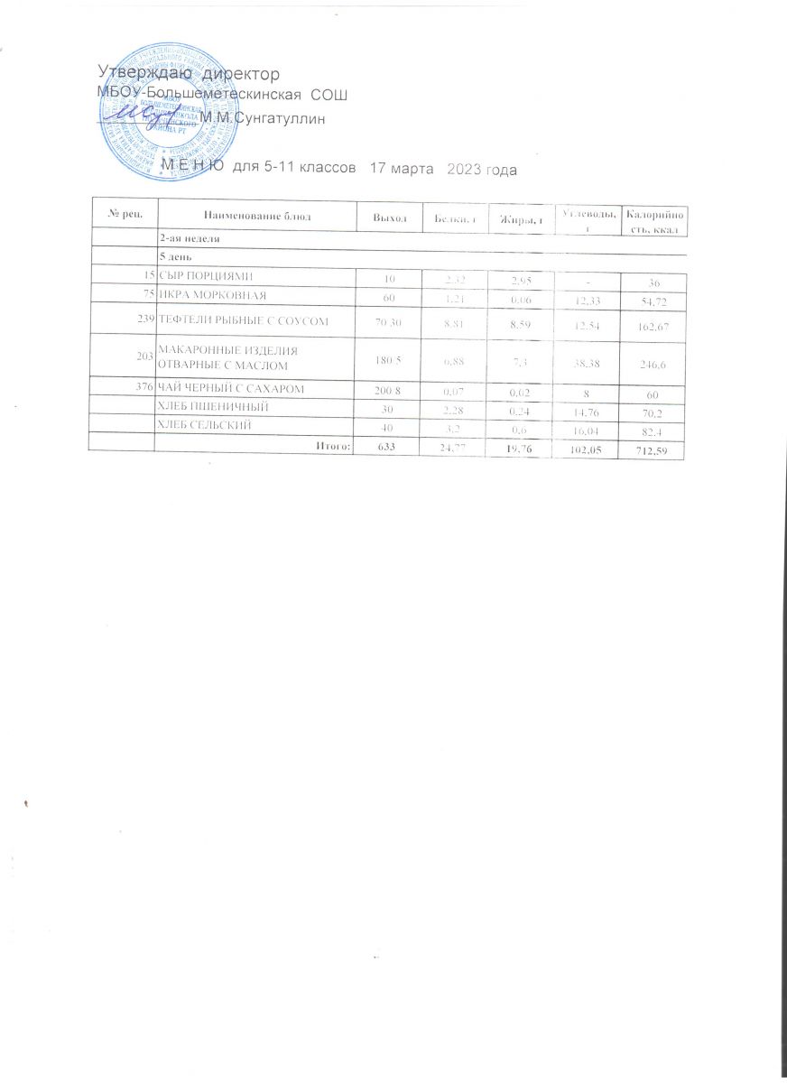 Меню для 5 - 11 классов на 17.05.2022 г.
