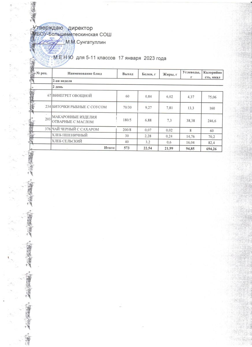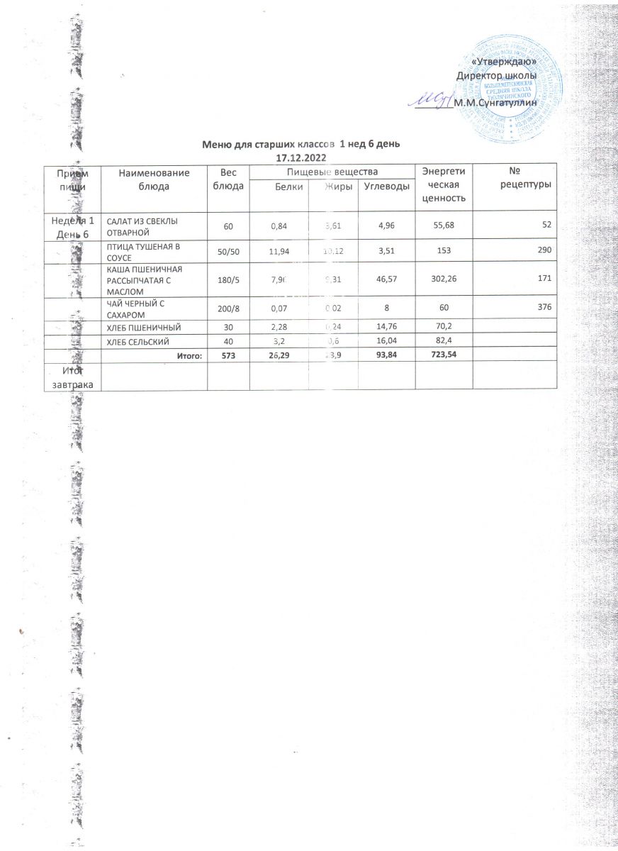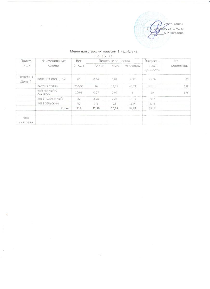 Меню для 5 - 11 классов на 17.05.2022 г.