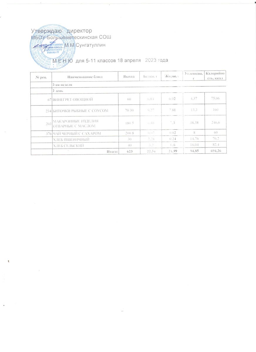 Меню для 5 - 11 классов на 18.04.2022 г.