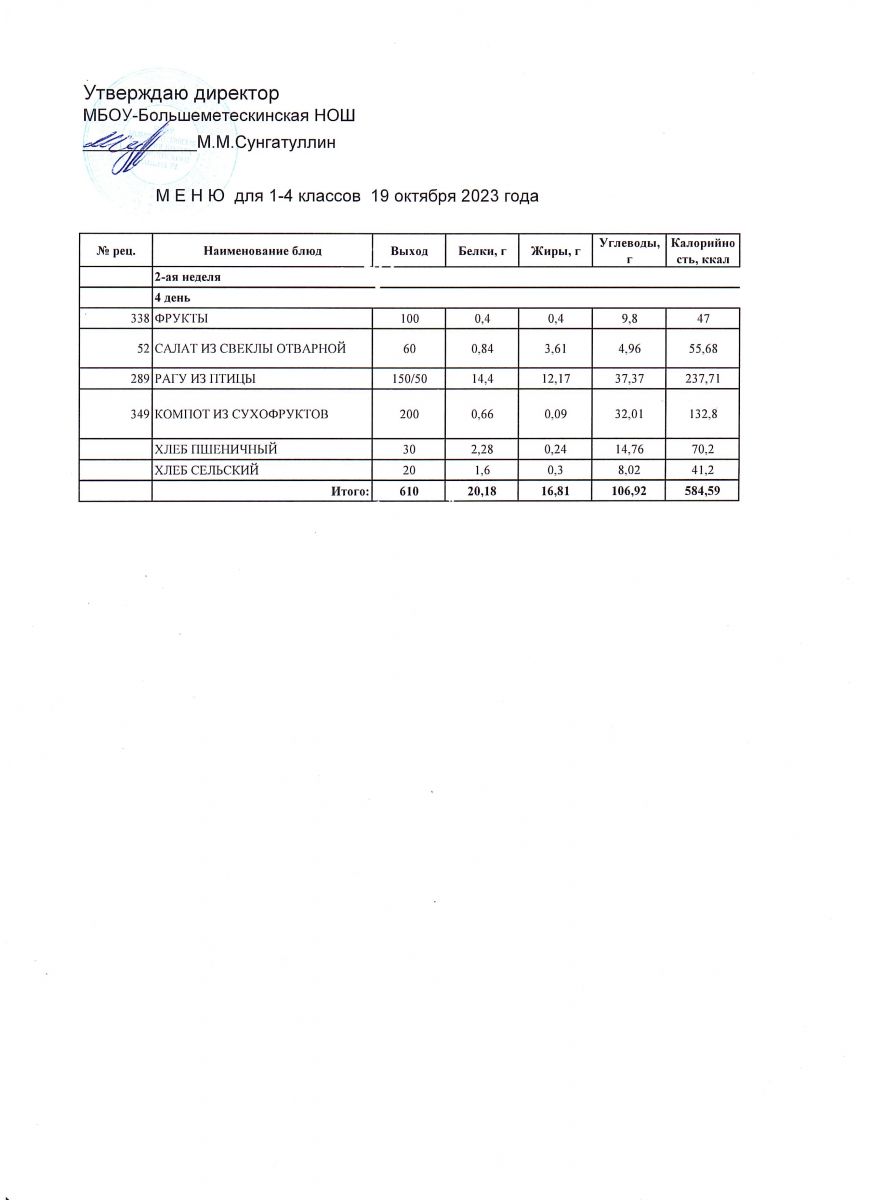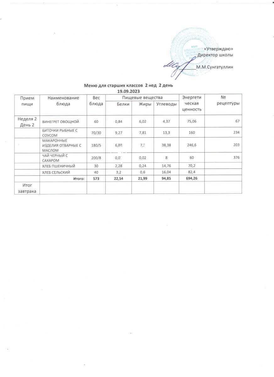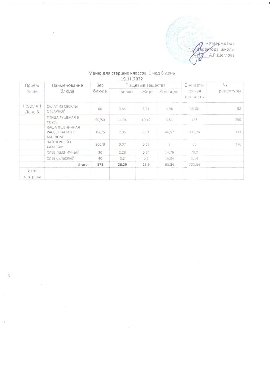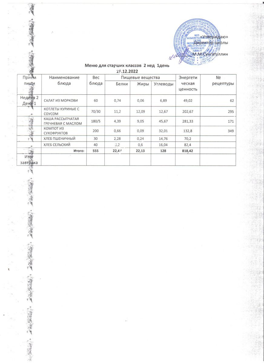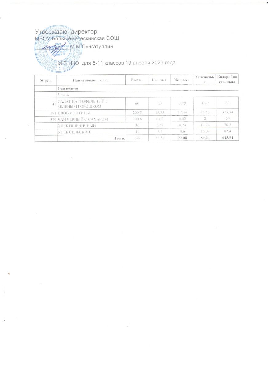 Меню для 5 - 11 классов на 19.04.2022 г.