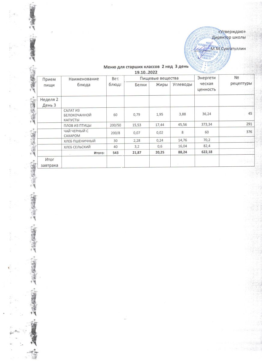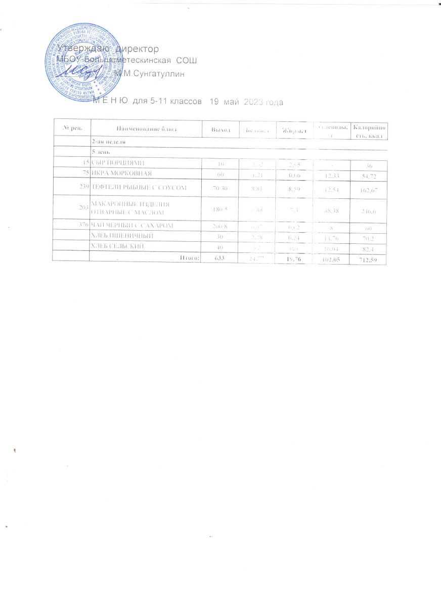 Меню для 5 - 11 классов на 19.05.2022 г.