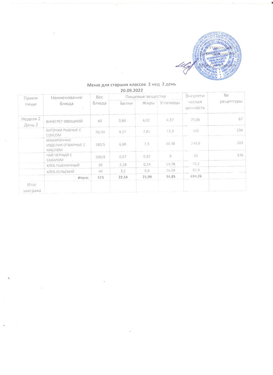 Меню для 5 - 11 классов на 20.04.2022 г.