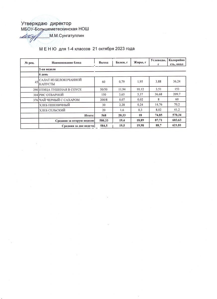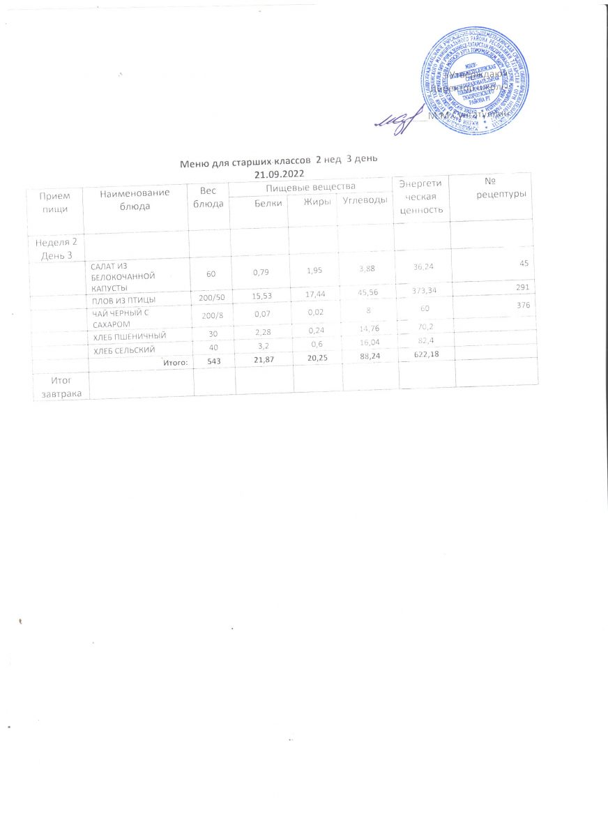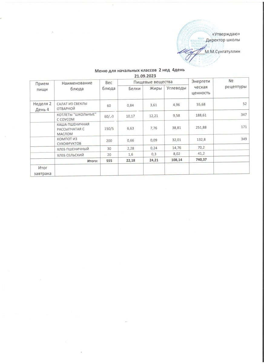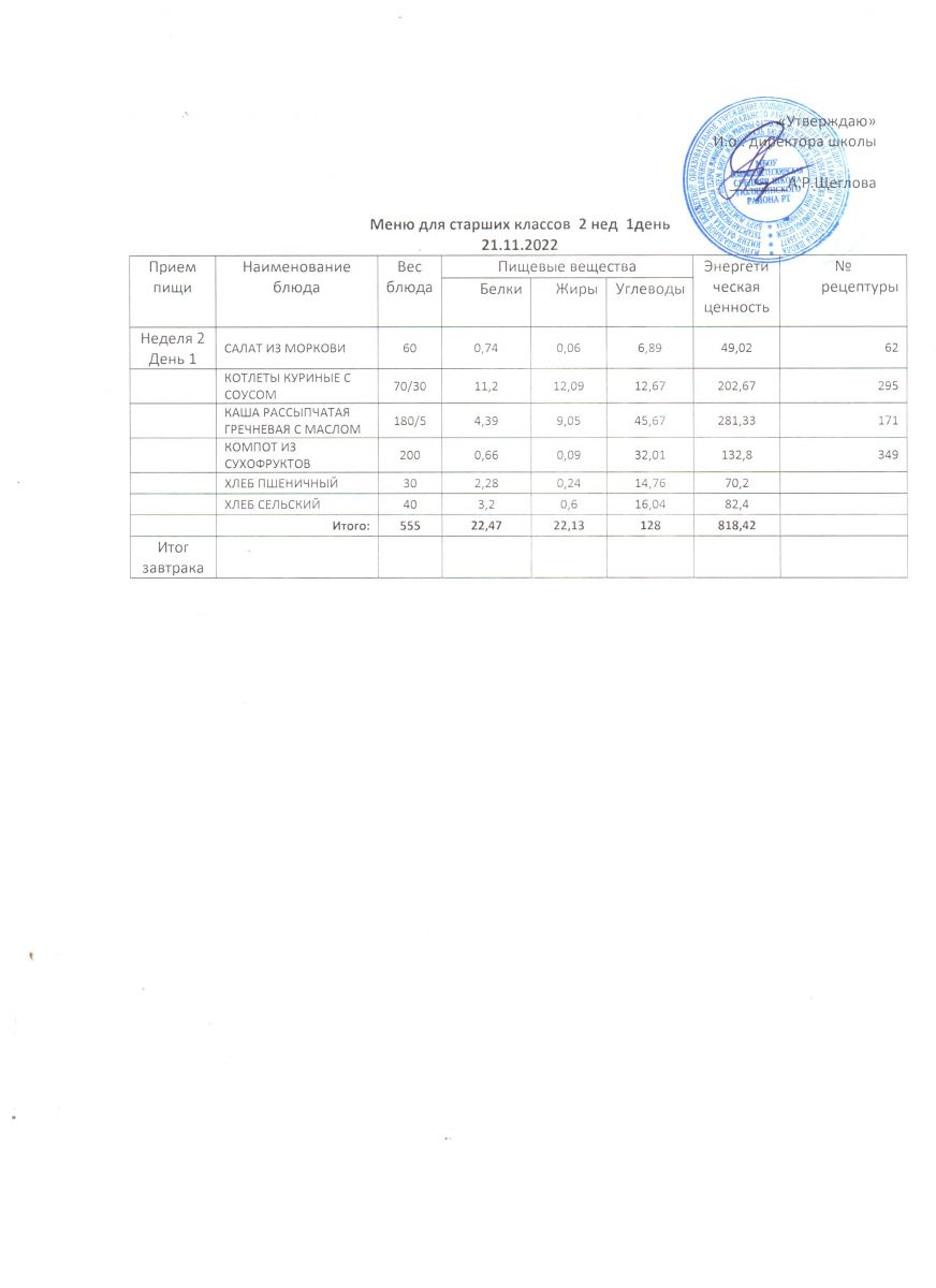 Меню для 5 - 11 классов на 21.04.2022 г.
