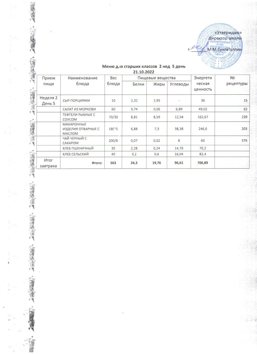 Меню для 5 - 11 классов на 21.05.2022 г.