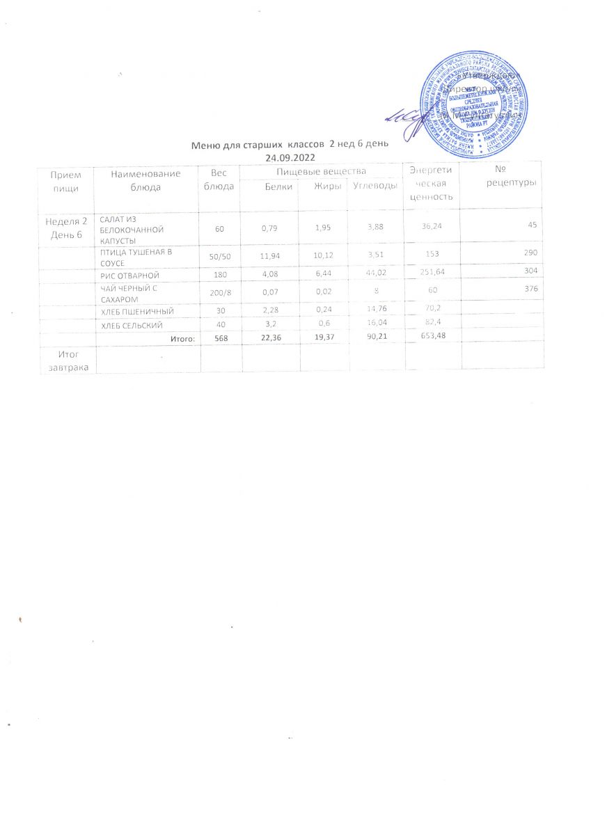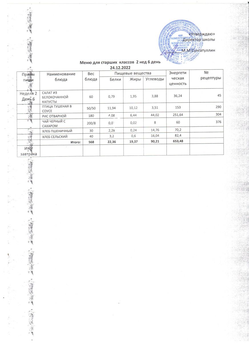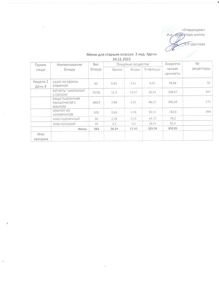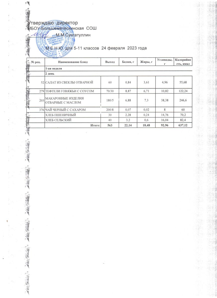 Меню для 5 - 11 классов на 24.05.2022 г.