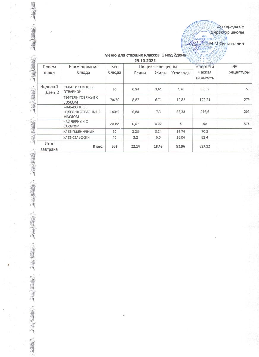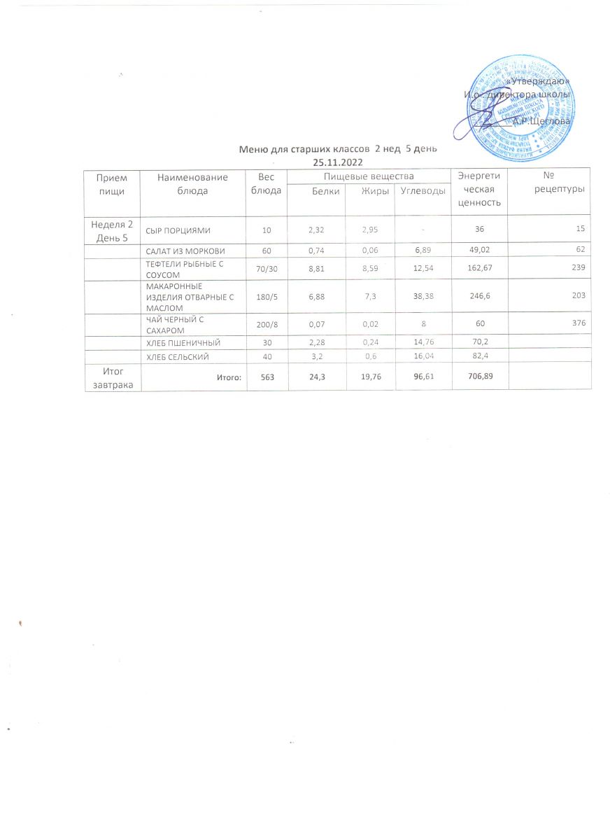 Меню для 5 - 11 классов на 25.05.2022 г.