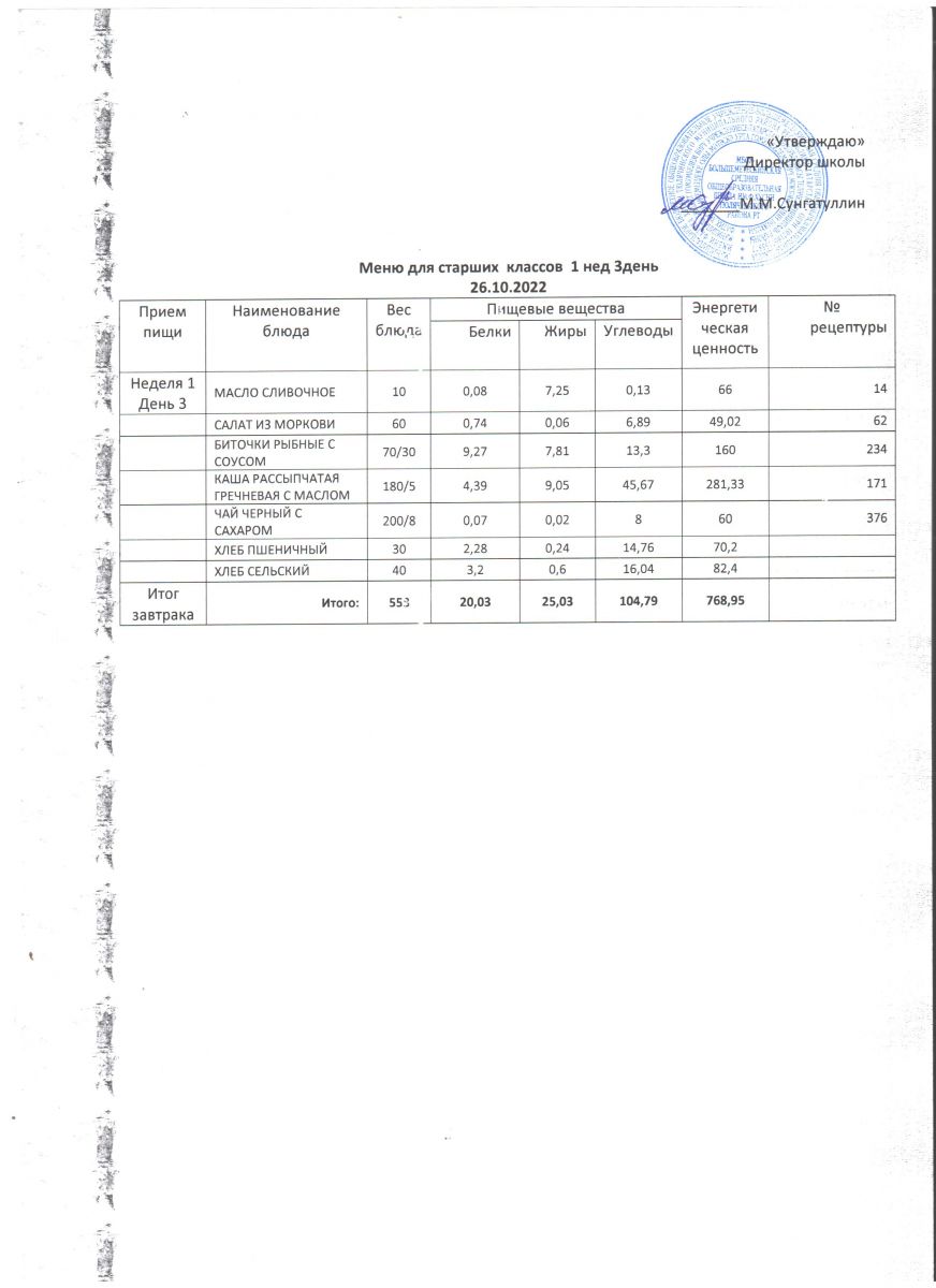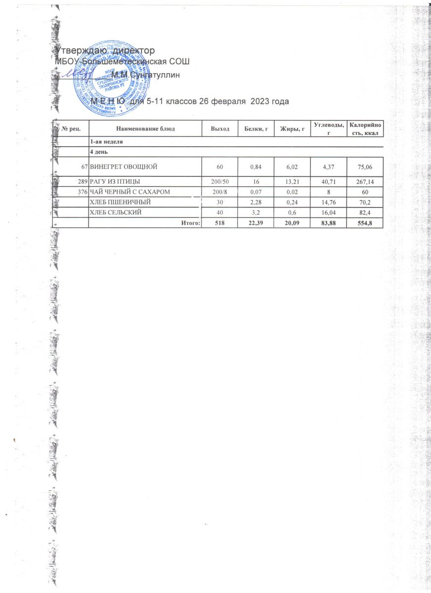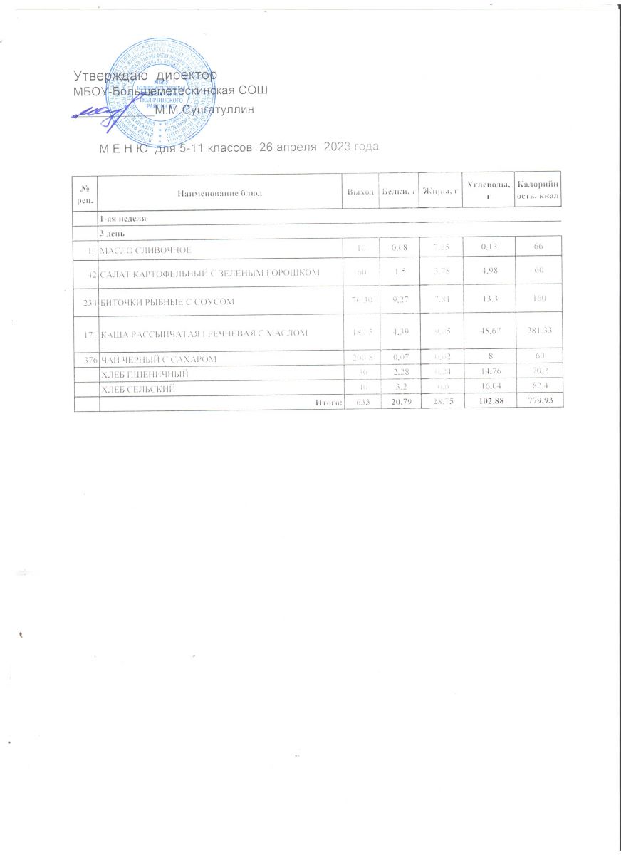 Меню для 5 - 11 классов на 26.04.2022 г.