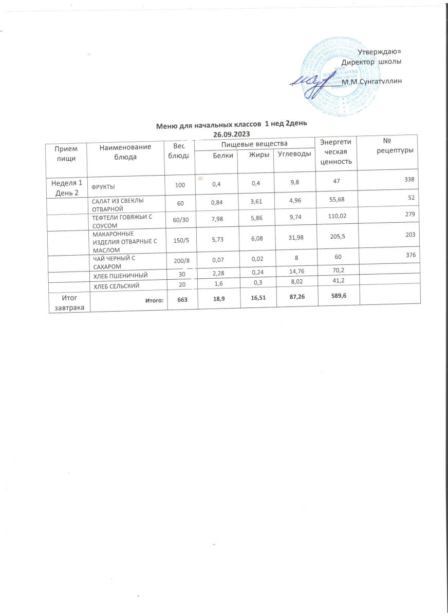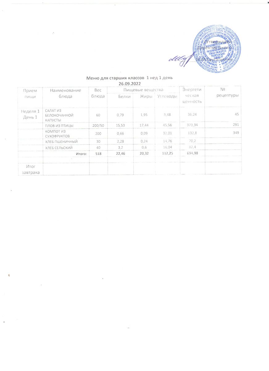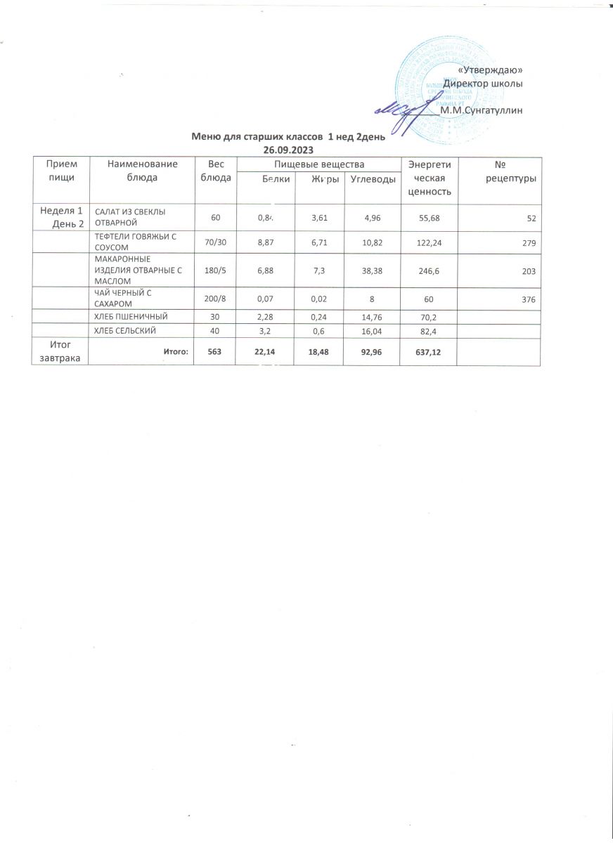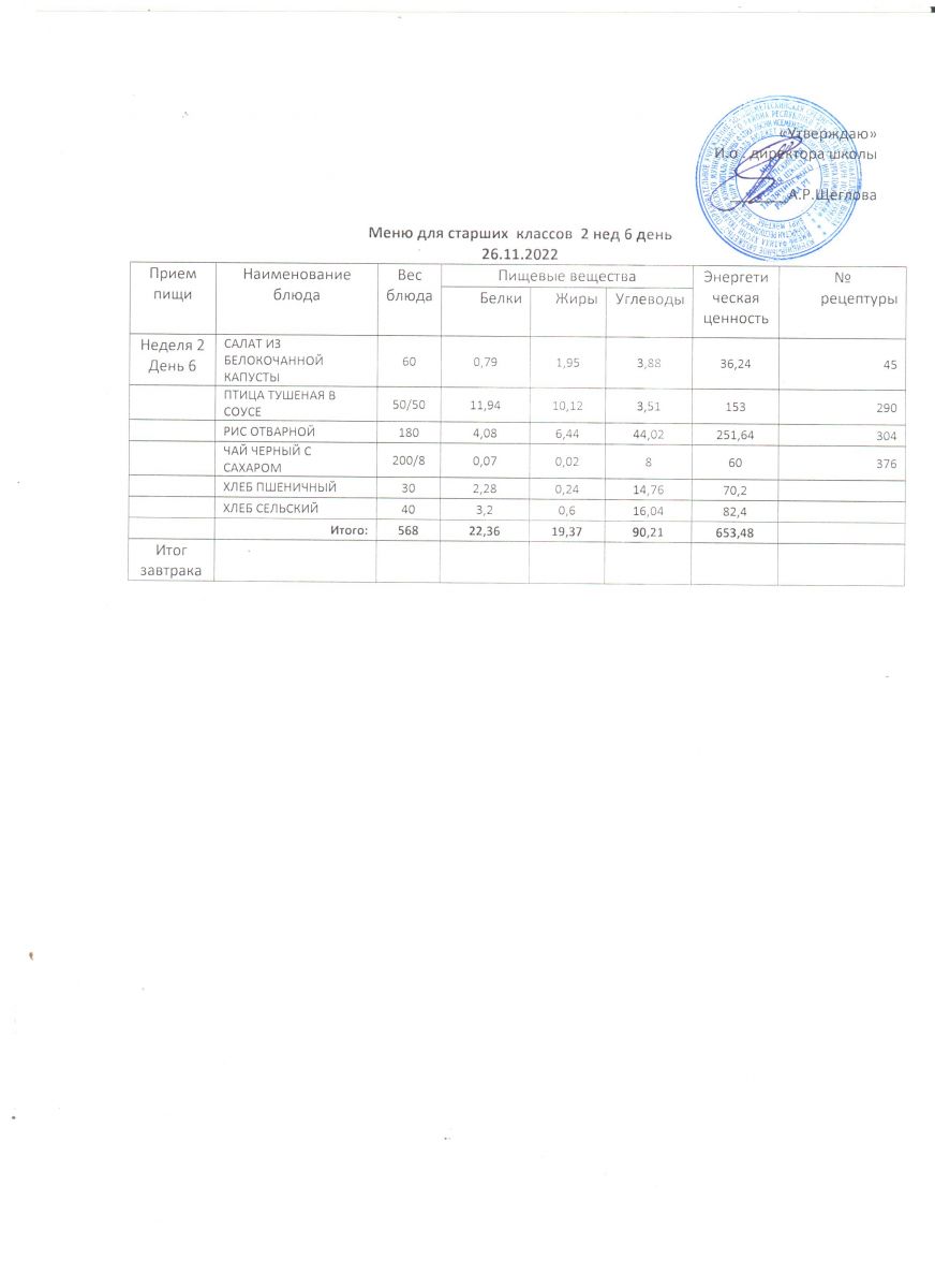 Меню для 5 - 11 классов на 26.04.2022 г.