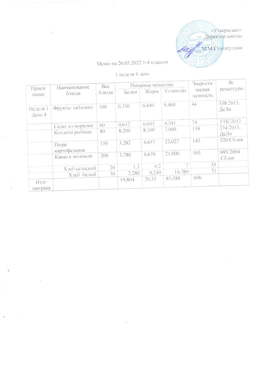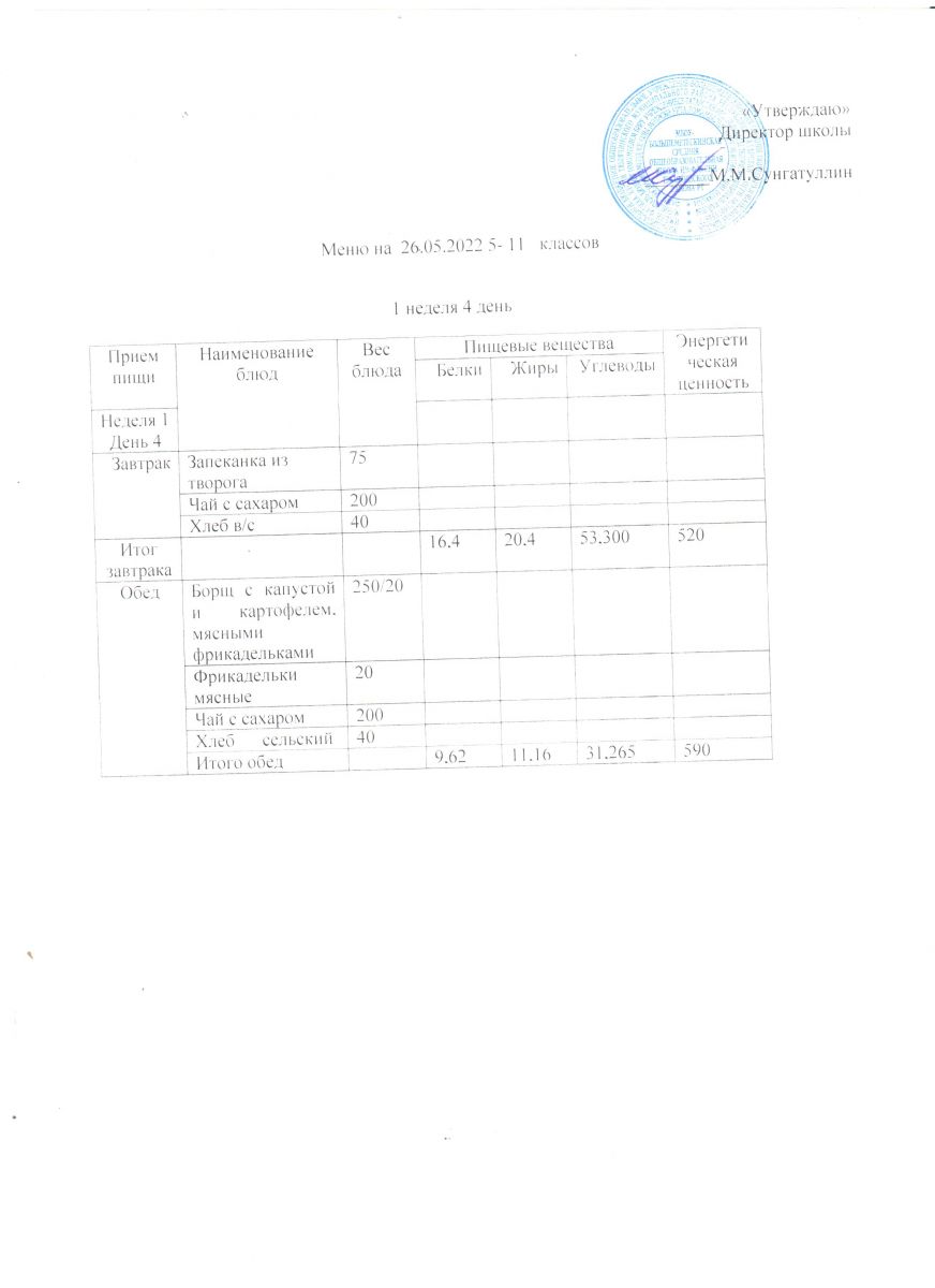 Меню для 5 - 11 классов на 26.05.2022 г.