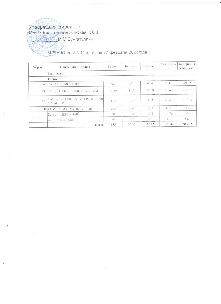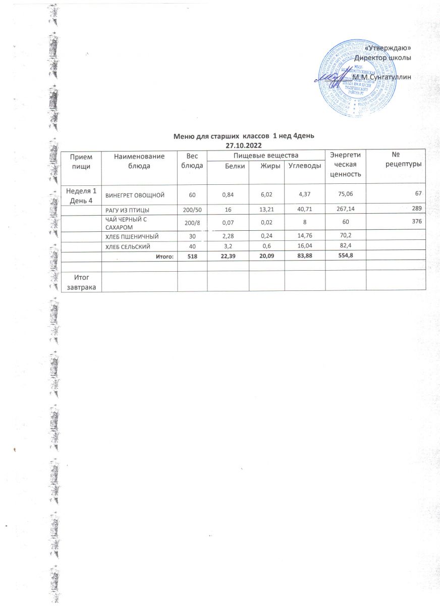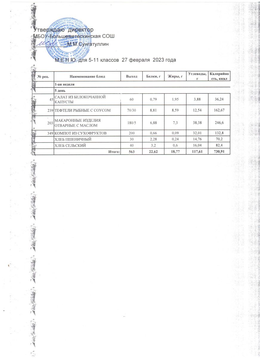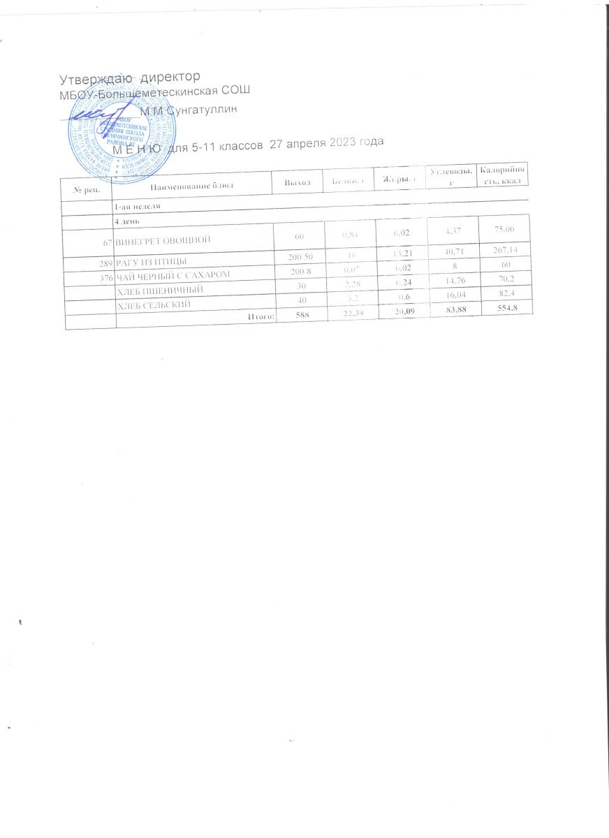 Меню для 5 - 11 классов на 27.04.2022 г.
