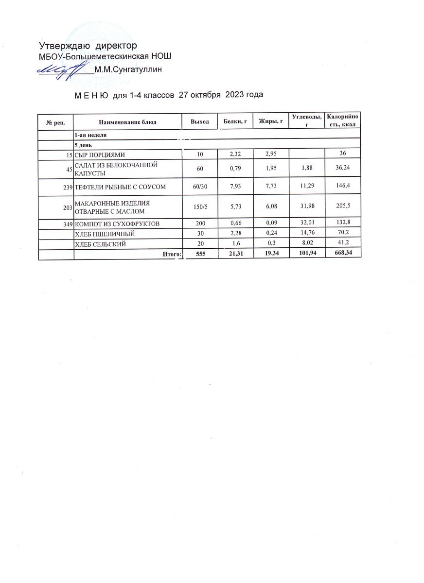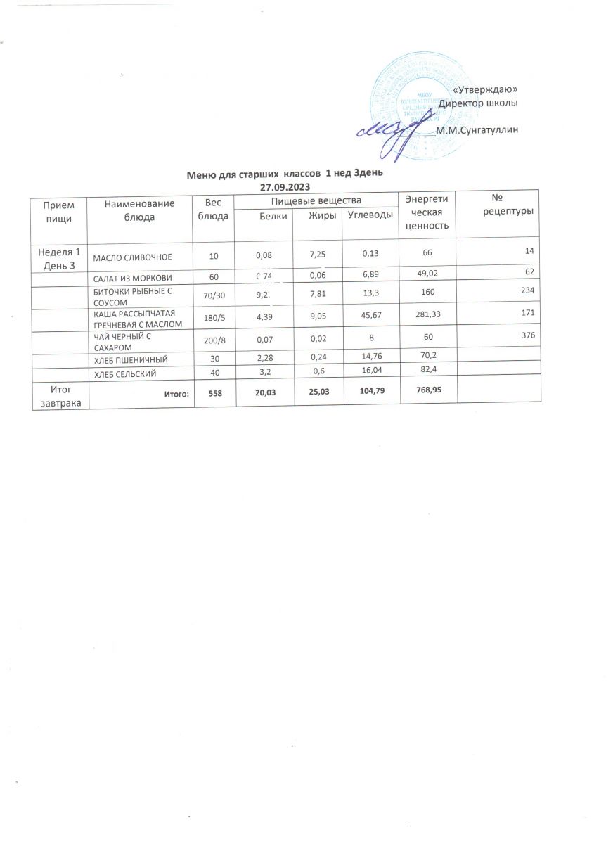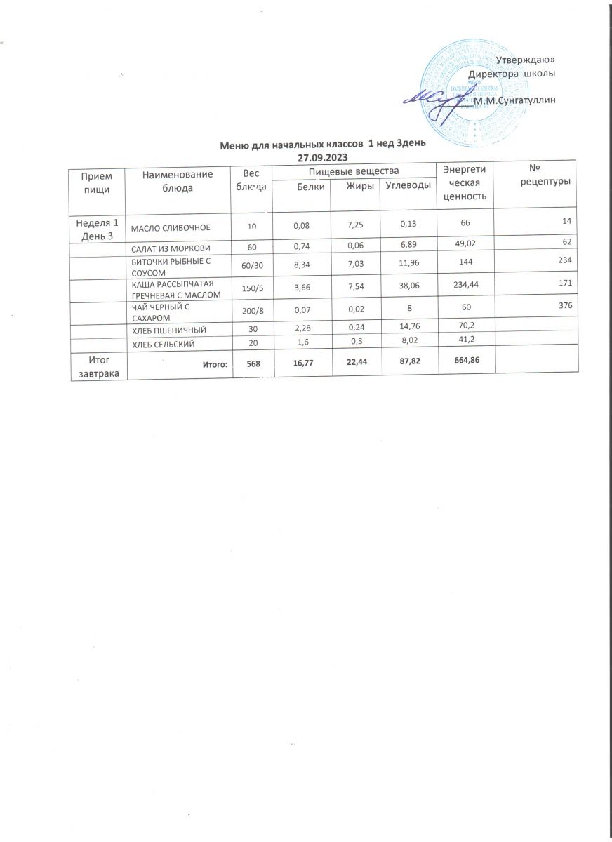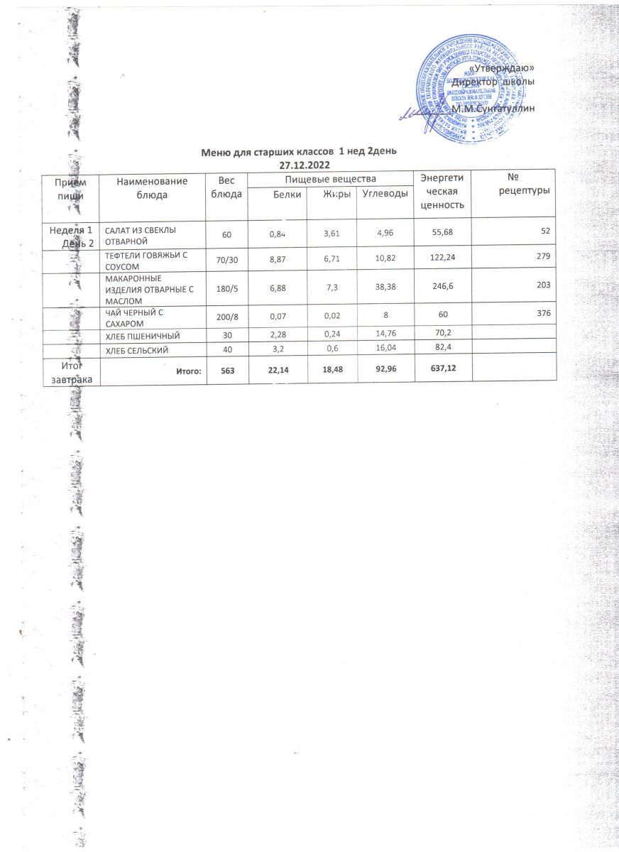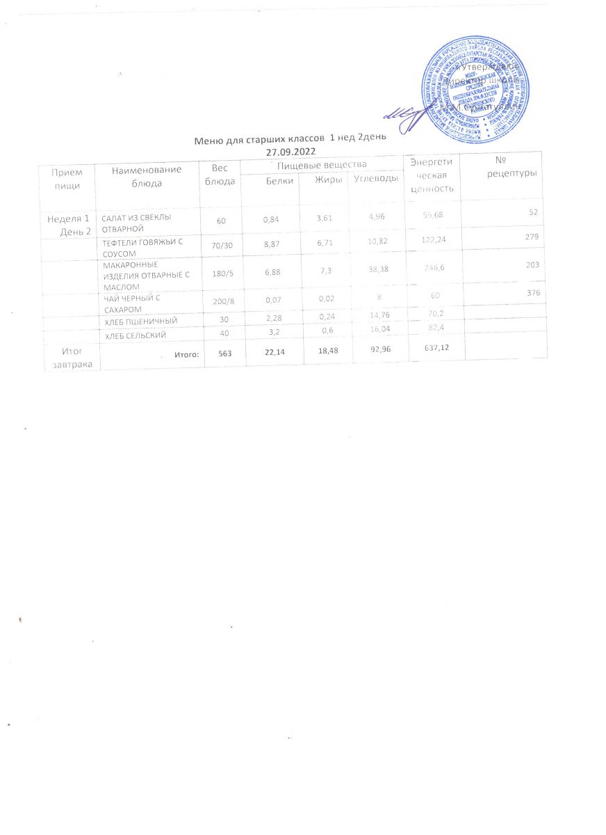 Меню для 5 - 11 классов на 27.04.2022 г.