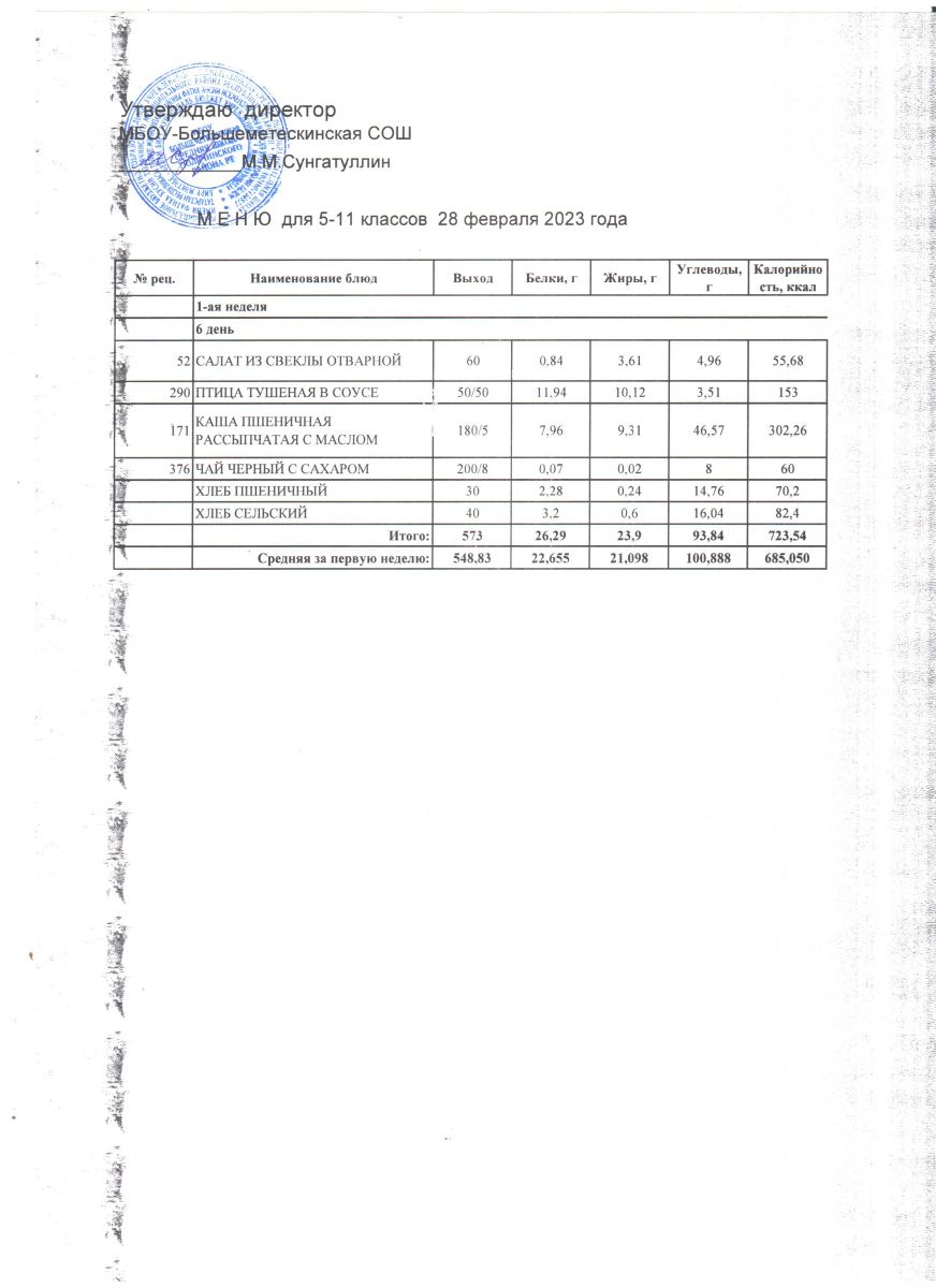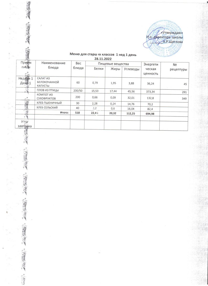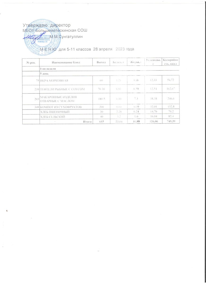 Меню для 5 - 11 классов на 28.04.2022 г.