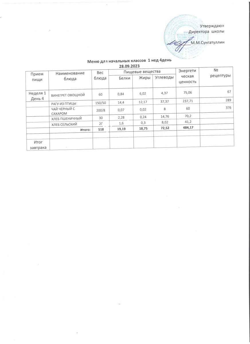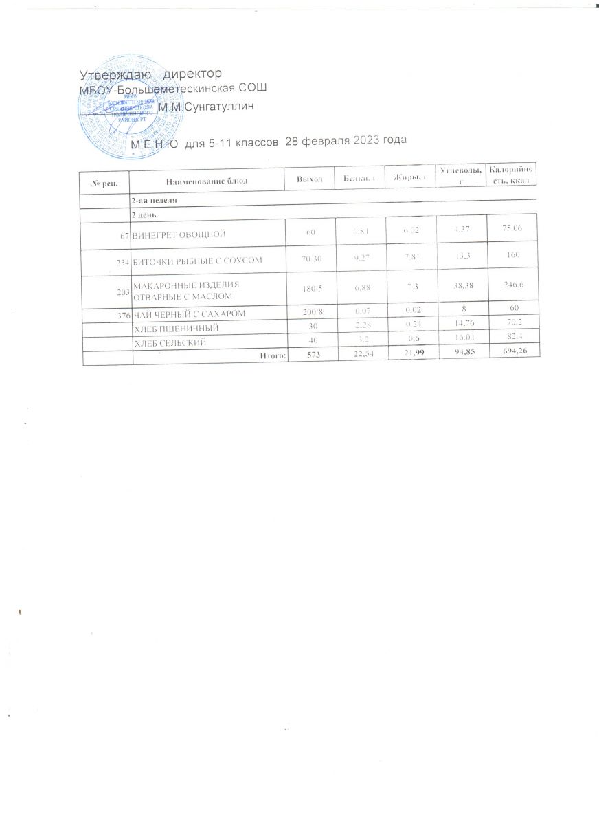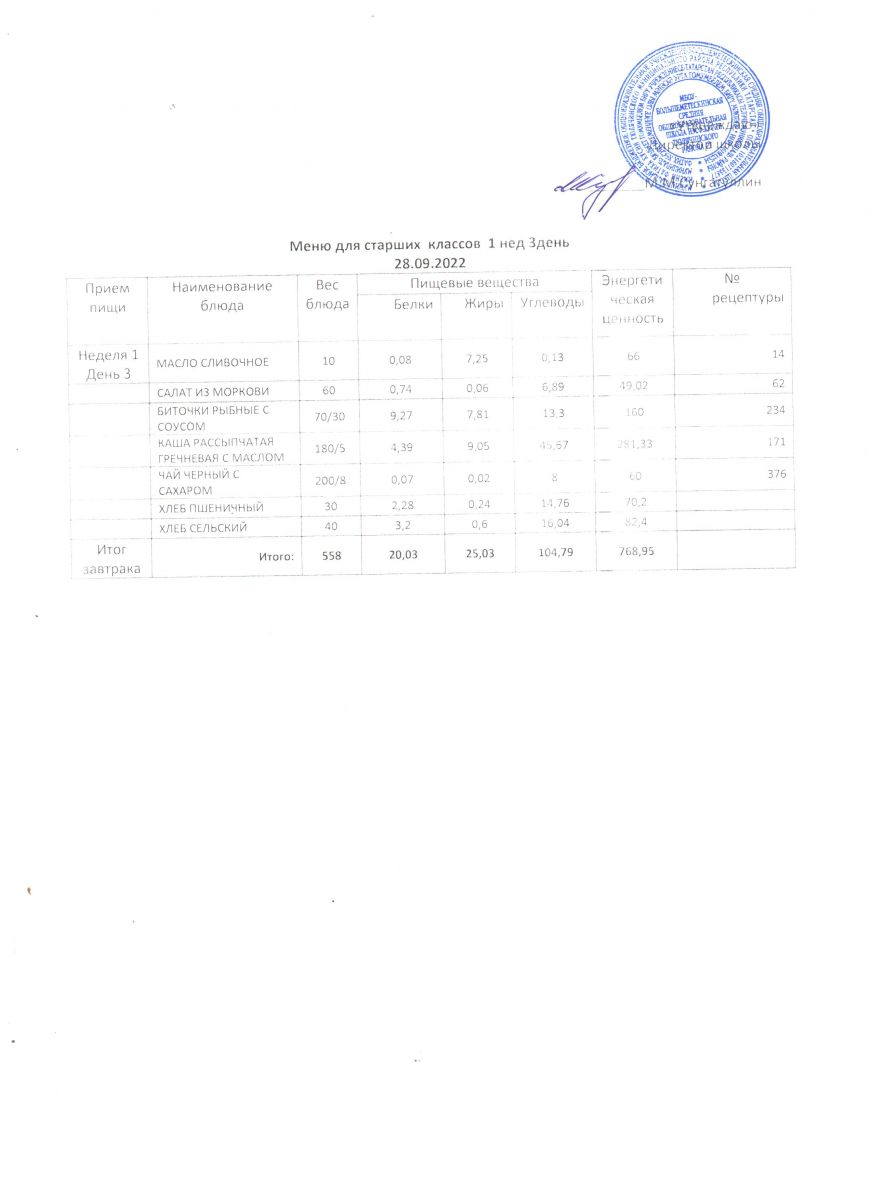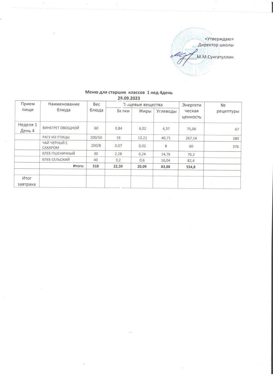 Меню для 5 - 11 классов на 28.04.2022 г.