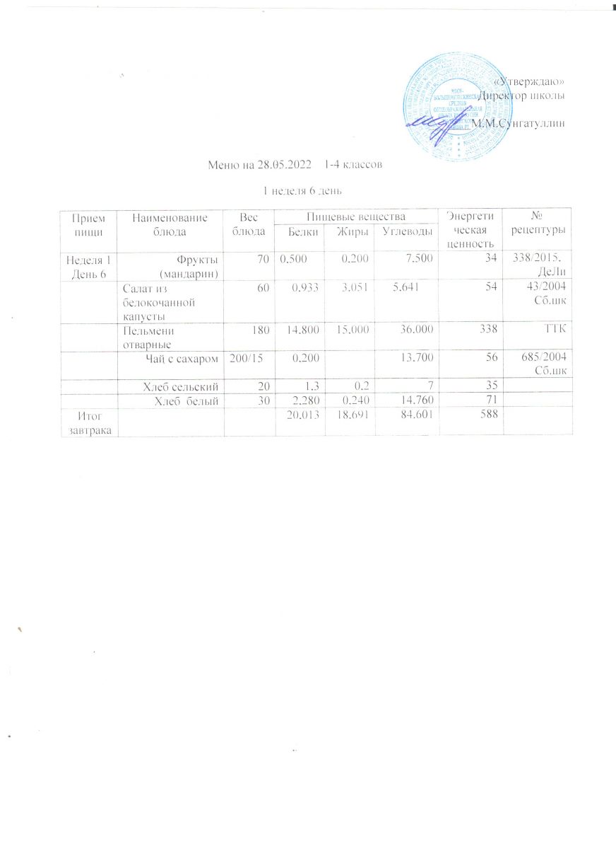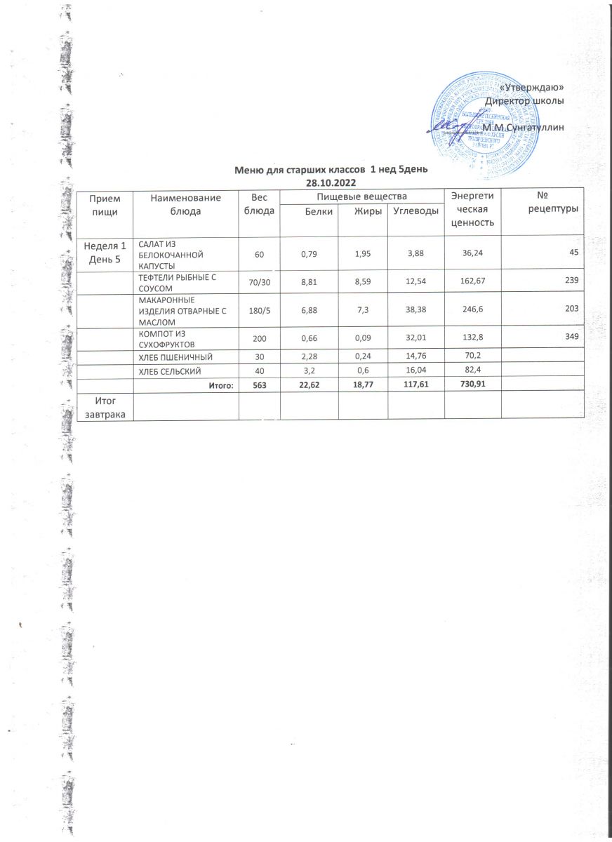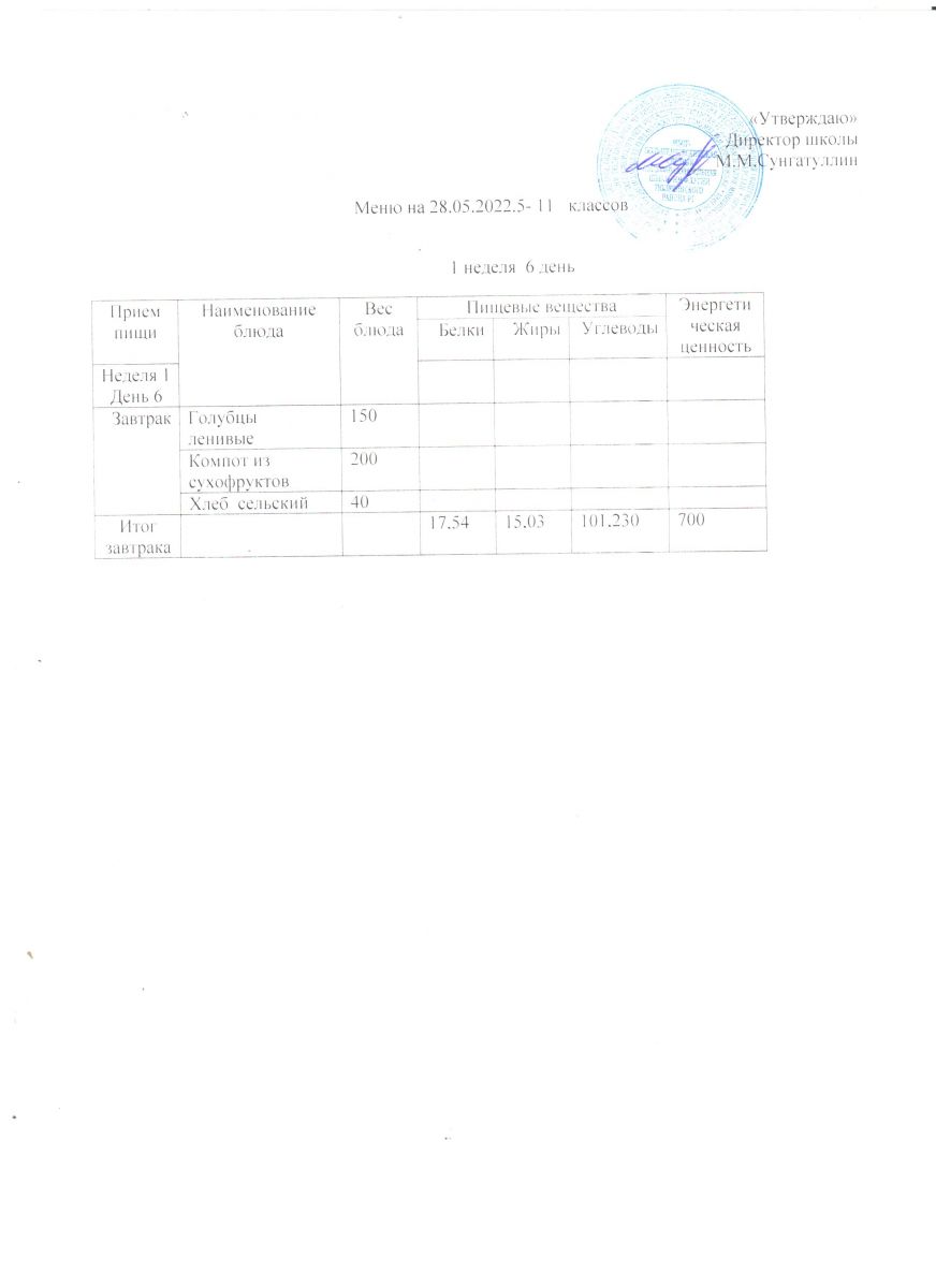 Меню для 5 - 11 классов на 28.05.2022 г.