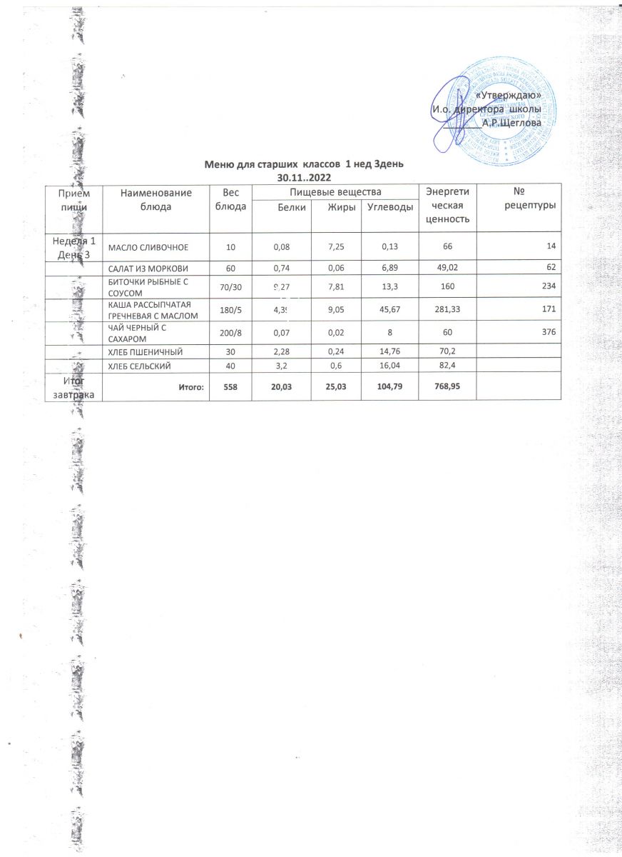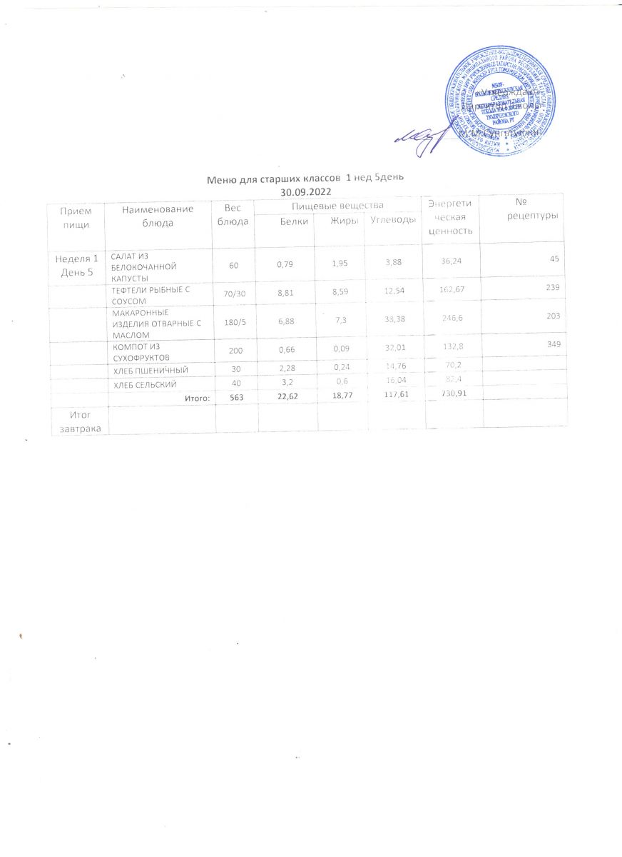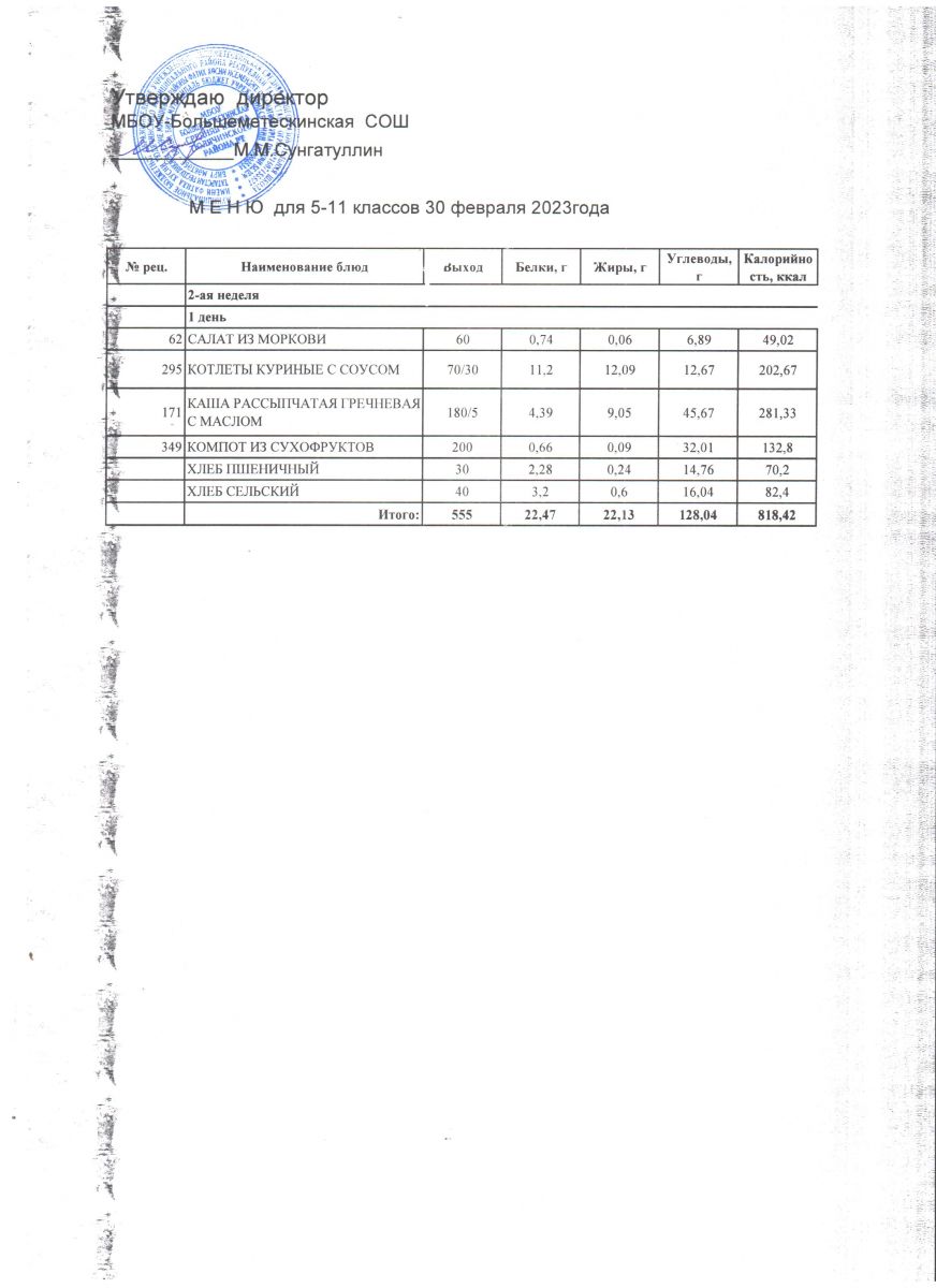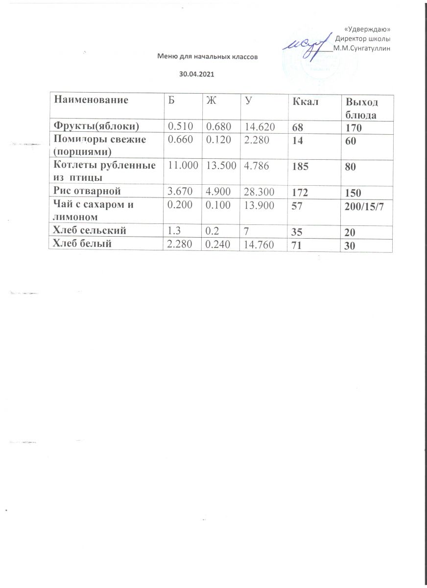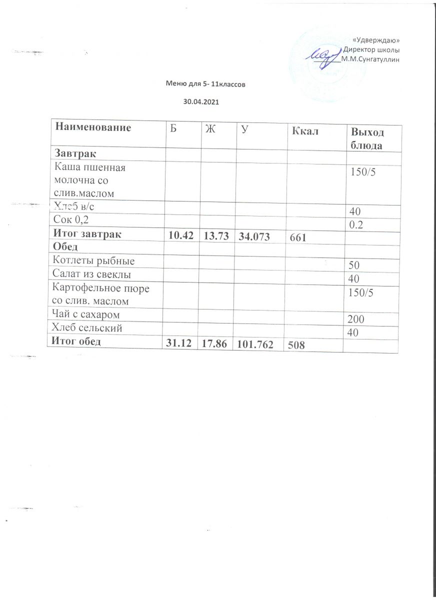 Меню для 5 - 11 классов на 30.04.2022 г.
