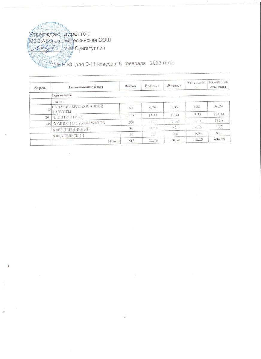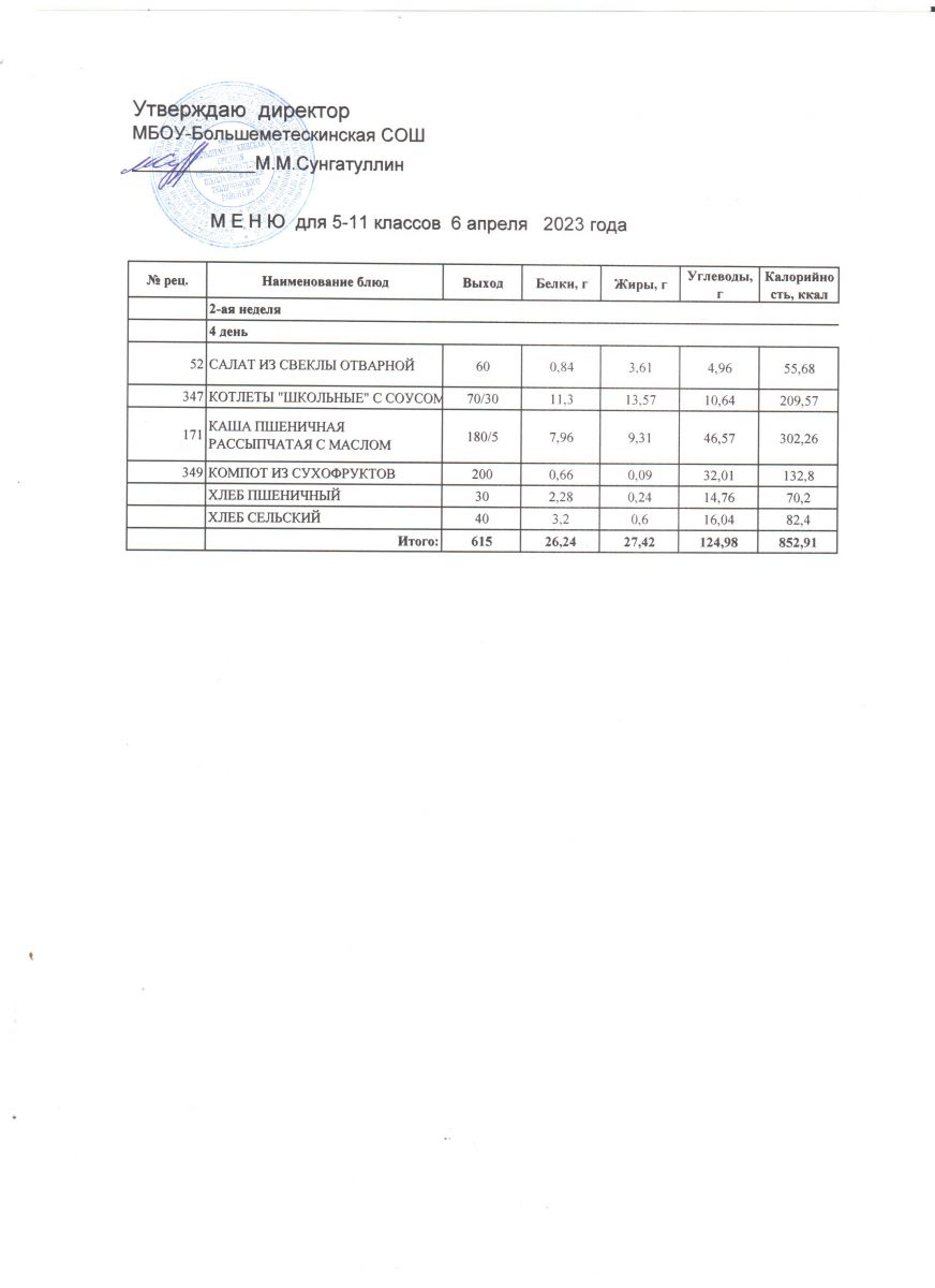 Меню для 5 - 11 классов на 06.04.2022 г.