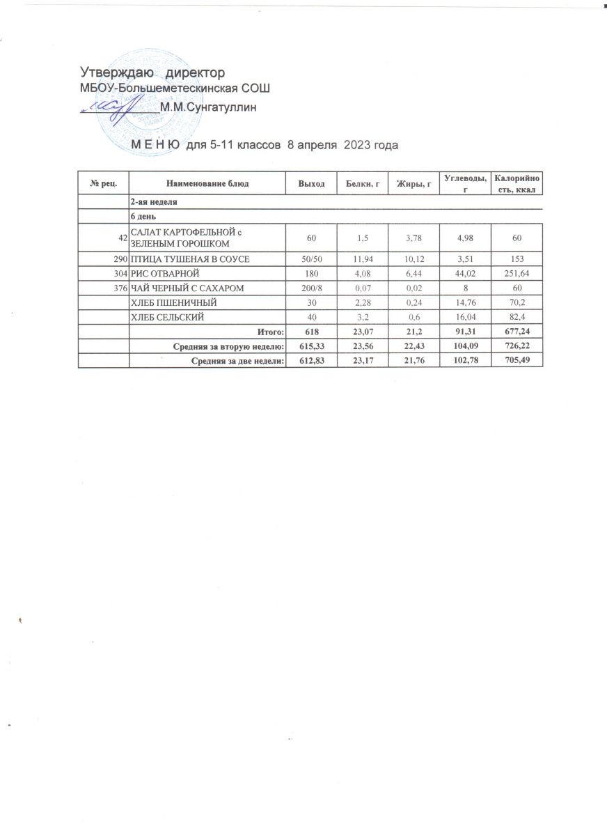Меню для 5 - 11 классов на 08.04.2022 г.