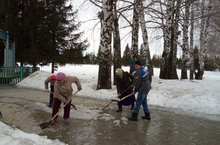 С 1 апреля в Республике Татартан стартовал экологический двухмесячник. В рамках данного месячника в МБОУ-Большенырсинской средней общеобразовательной школе началась работа по очистке территории школы от накопившегося за зиму мусора.