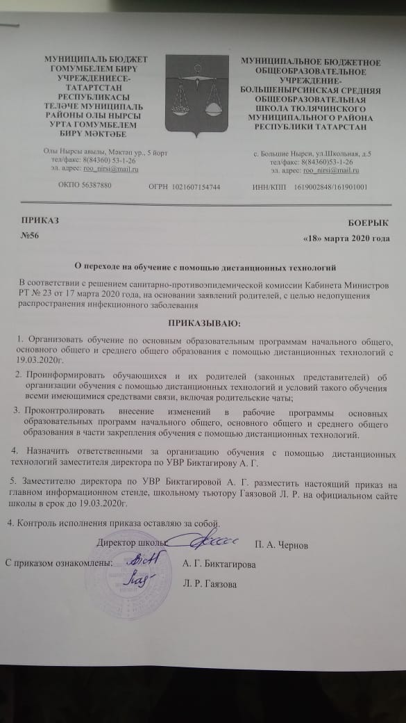 Муниципальное бюджетное общеобразовательное учреждение-Большенырсинская средняя общеобразовательная школа Тюлячинского муниципального района РТ.\Татарстан Республикасы Теләче муниципаль районы муниципаль бюджет гомуми белем бирү учреждениесе -Олы Нырсы урта гомуми белем бирү мәктәбе