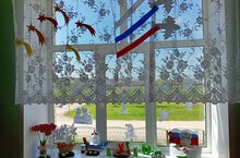 Тюлячинский детский сад №1 принял участие в акции, которая проходит в каждом городе, селе нашей страны, в преддверии Великого праздника. Силами сотрудников ДОУ и детей окна детского сада были оформлены символами Победы. -
